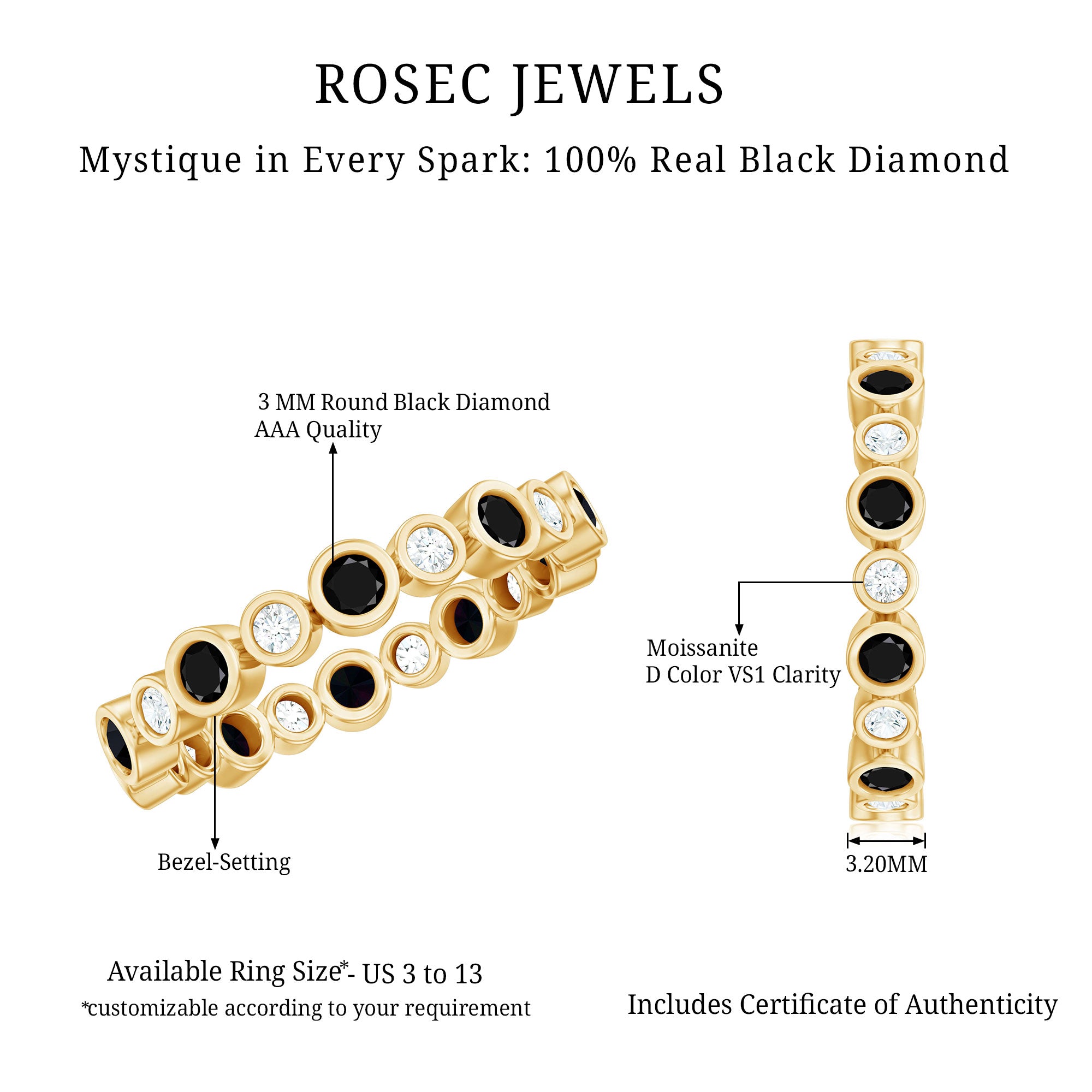 Edgy and sparkly, this ring style incorporates a shimmering row of Diamond/Moissanite all around the Center Stone of the Black Diamond. If you fancy a simple Black Diamond Ring but have a thing for sparkles, you won’t find a better pick. It also visually appeals with its monochromatic combination of black and white.