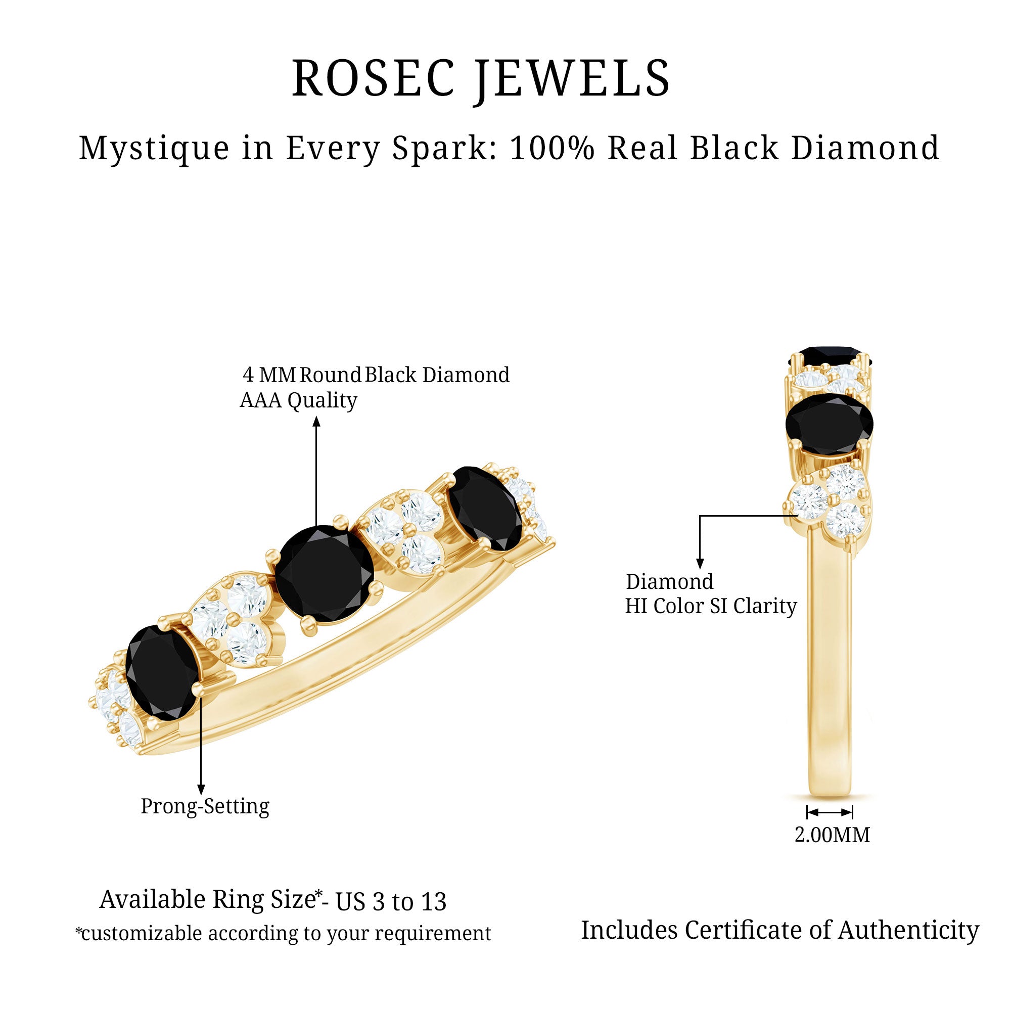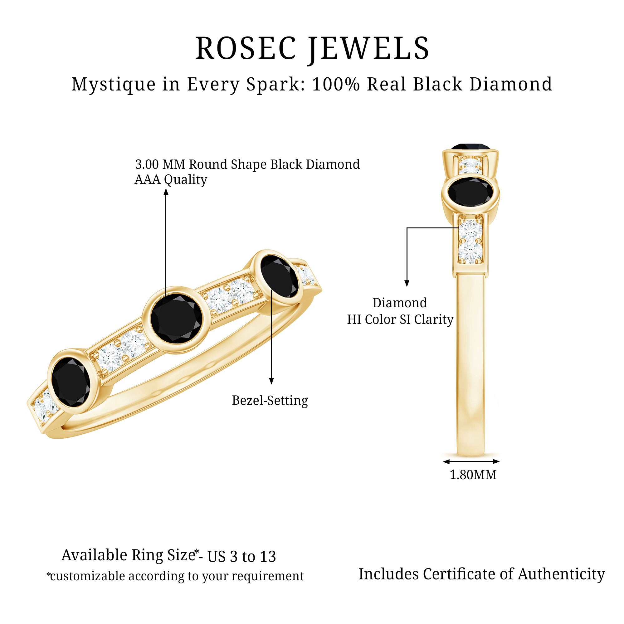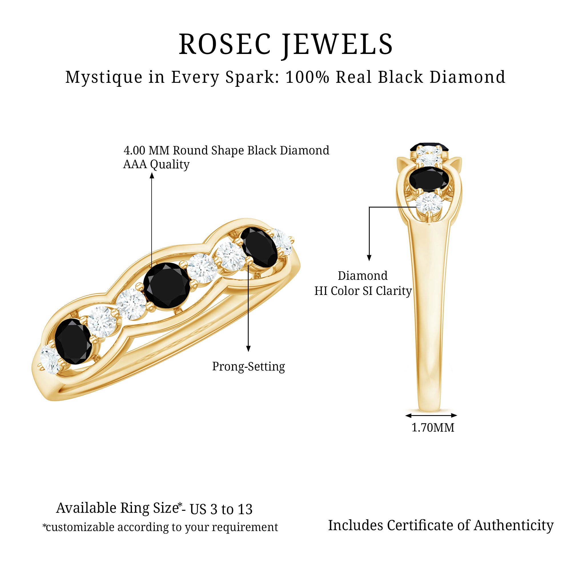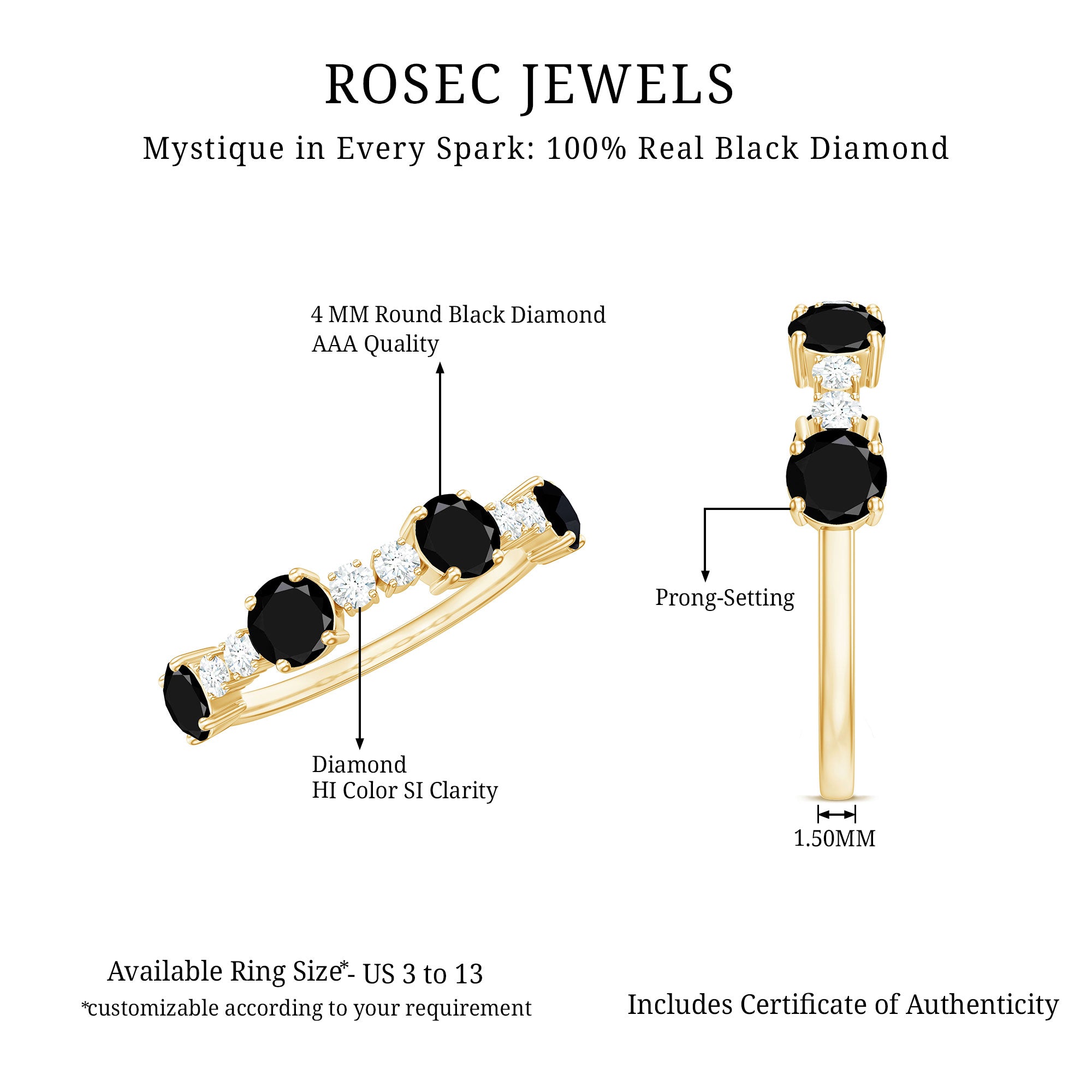 Black diamond wedding rings from Rosec Jewels are an exhilarating beauty for women who are in love with the signature black color diamonds. The exceptional fancy diamonds rings make them a popular choice of wedding rings for women. The black color is a growing popularity and has been the motivation behind crafting exotic wedding ring styles combined with different shades of gold and black diamond shapes. Our gemologists adhere to fine metal detailing while curating ring styles such as black diamond eternity bands, black diamond vintage bands and many more.