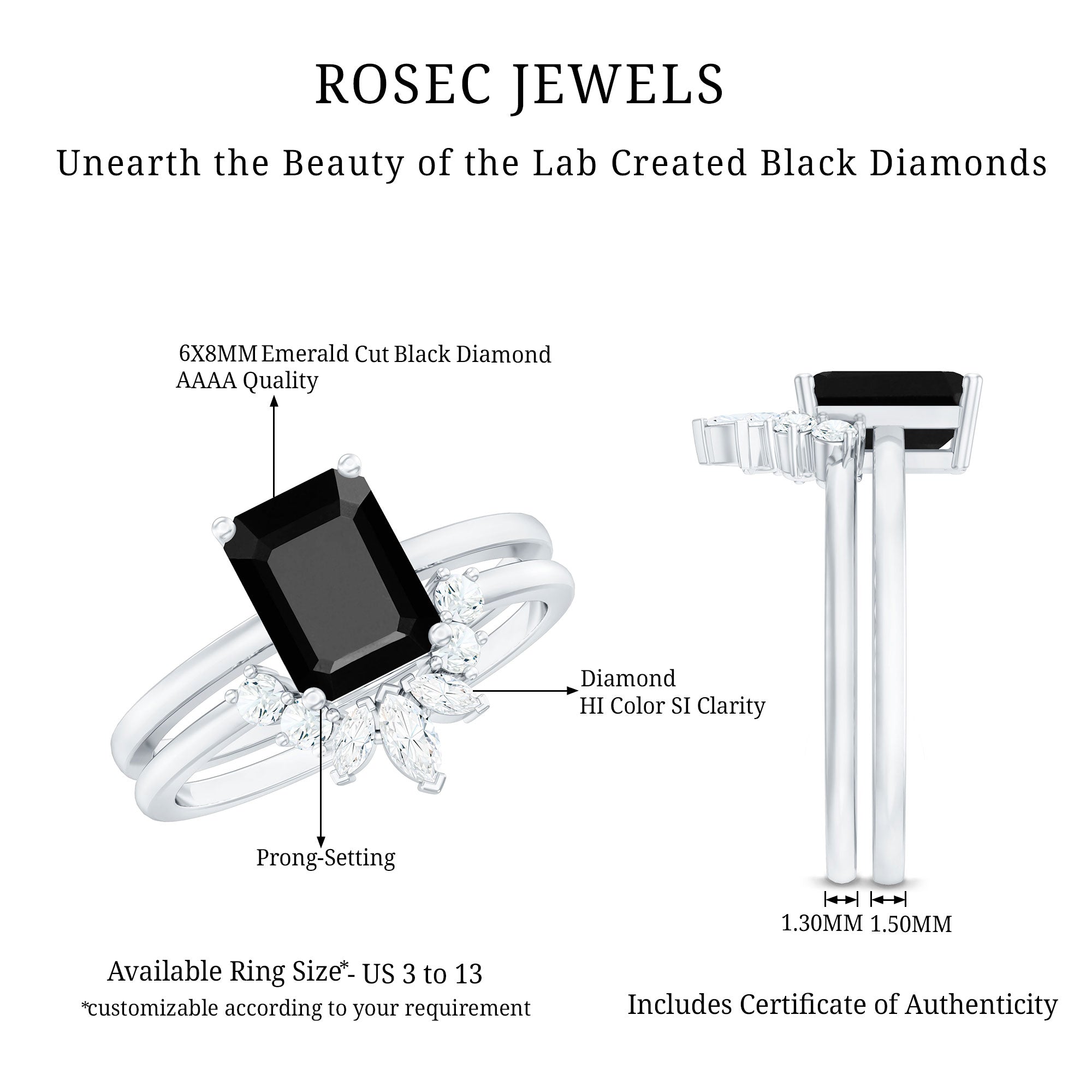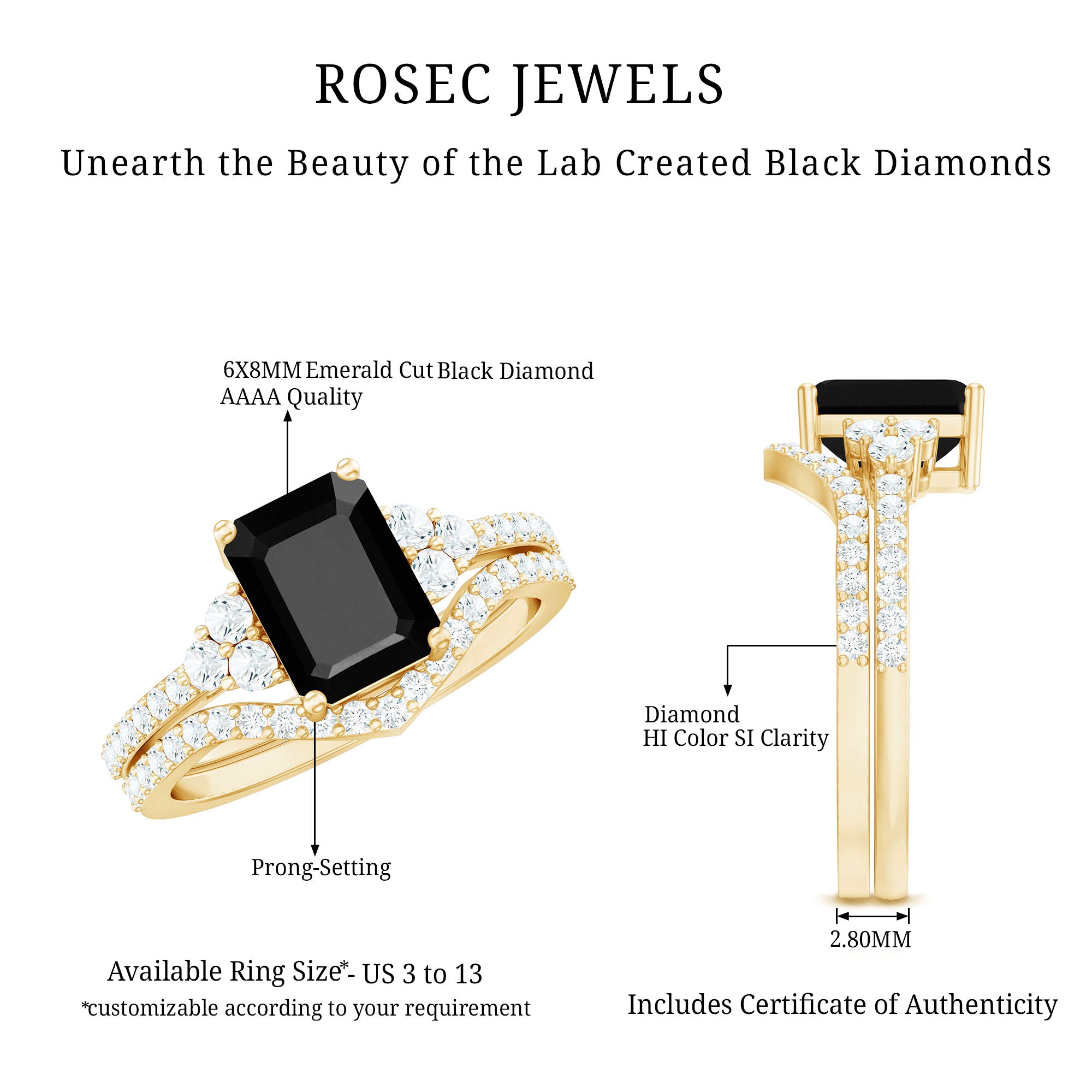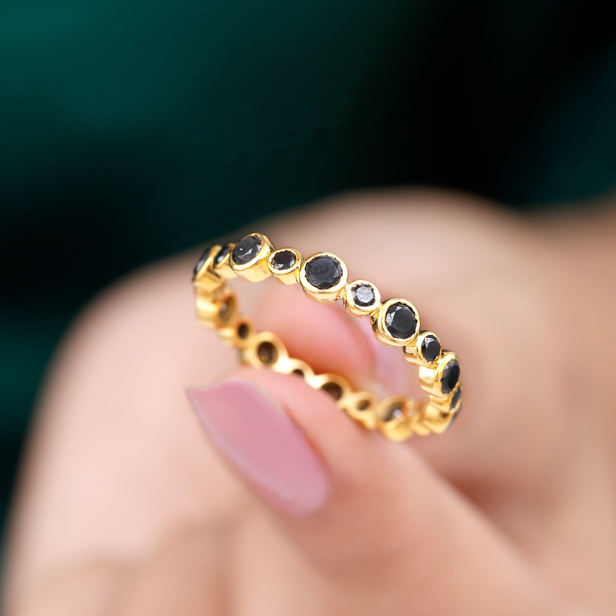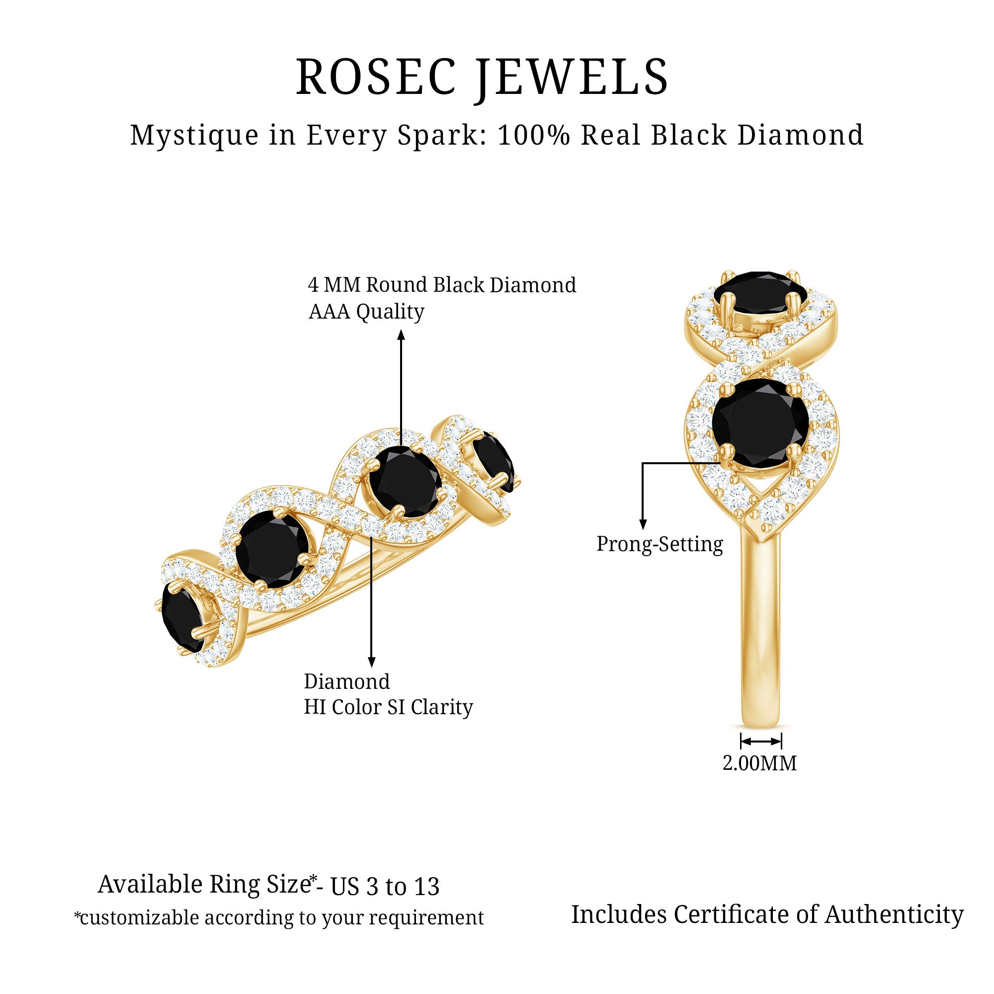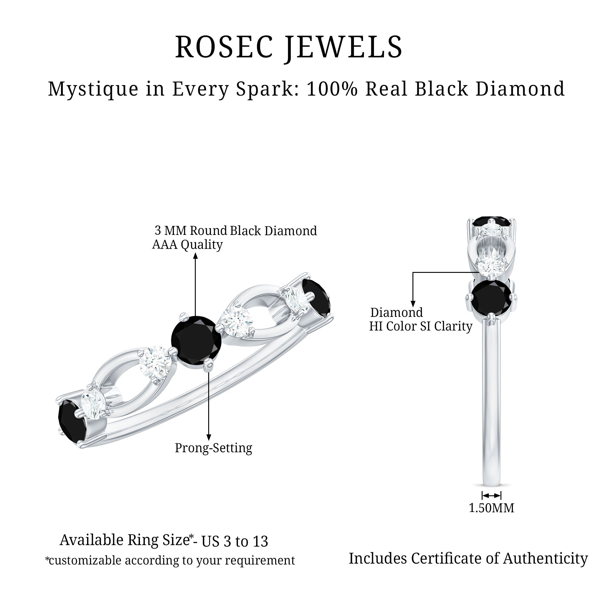 Black diamond wedding rings from Rosec Jewels are an exhilarating beauty for women who are in love with the signature black color diamonds. The exceptional fancy diamonds rings make them a popular choice of wedding rings for women. The black color is a growing popularity and has been the motivation behind crafting exotic wedding ring styles combined with different shades of gold and black diamond shapes. Our gemologists adhere to fine metal detailing while curating ring styles such as black diamond eternity bands, black diamond vintage bands and many more.
