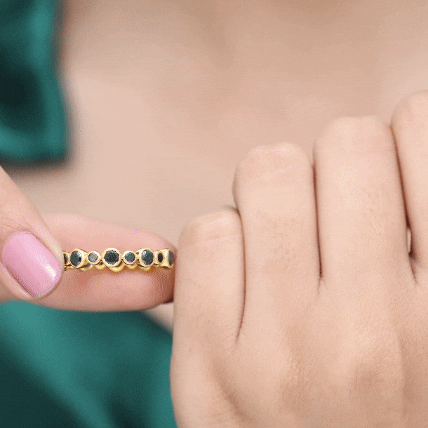 Our jewelers are utmost careful with the fine delicacies and quality of black diamond rings for women. Quality factors like color, clarity, cut and carat helps us to define our black diamond rings in all the characteristics. Besides such factors, we combine different black diamond shapes, gemstone settings and metal embellishments in yellow gold, white gold and rose gold aimed towards diversification while curating intricate black diamond gold rings for women with a taste for ongoing trends in fashion.