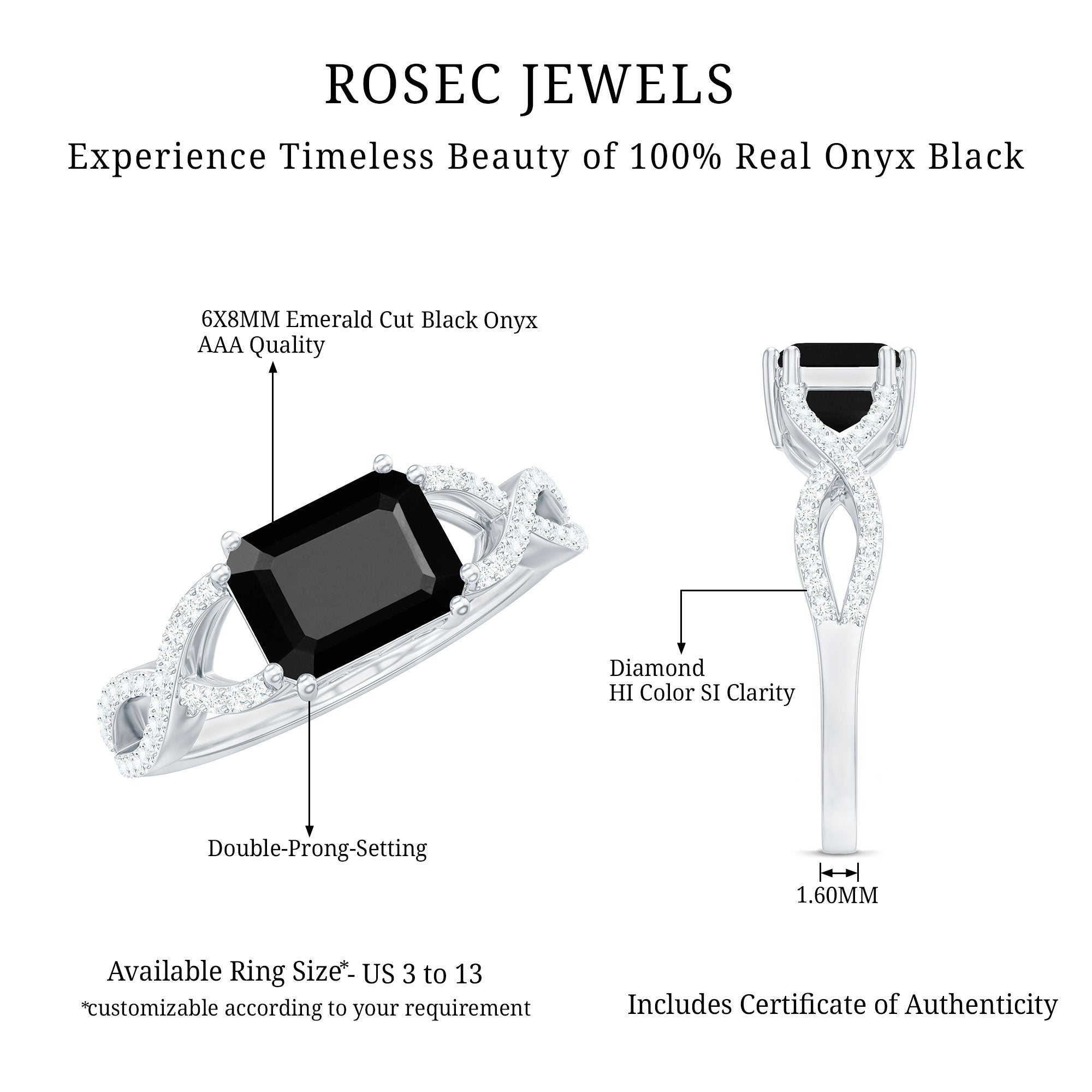 • Carat: Black onyx are cut into different carat weights to facilitate creation of spectacular black onyx engagement rings.
