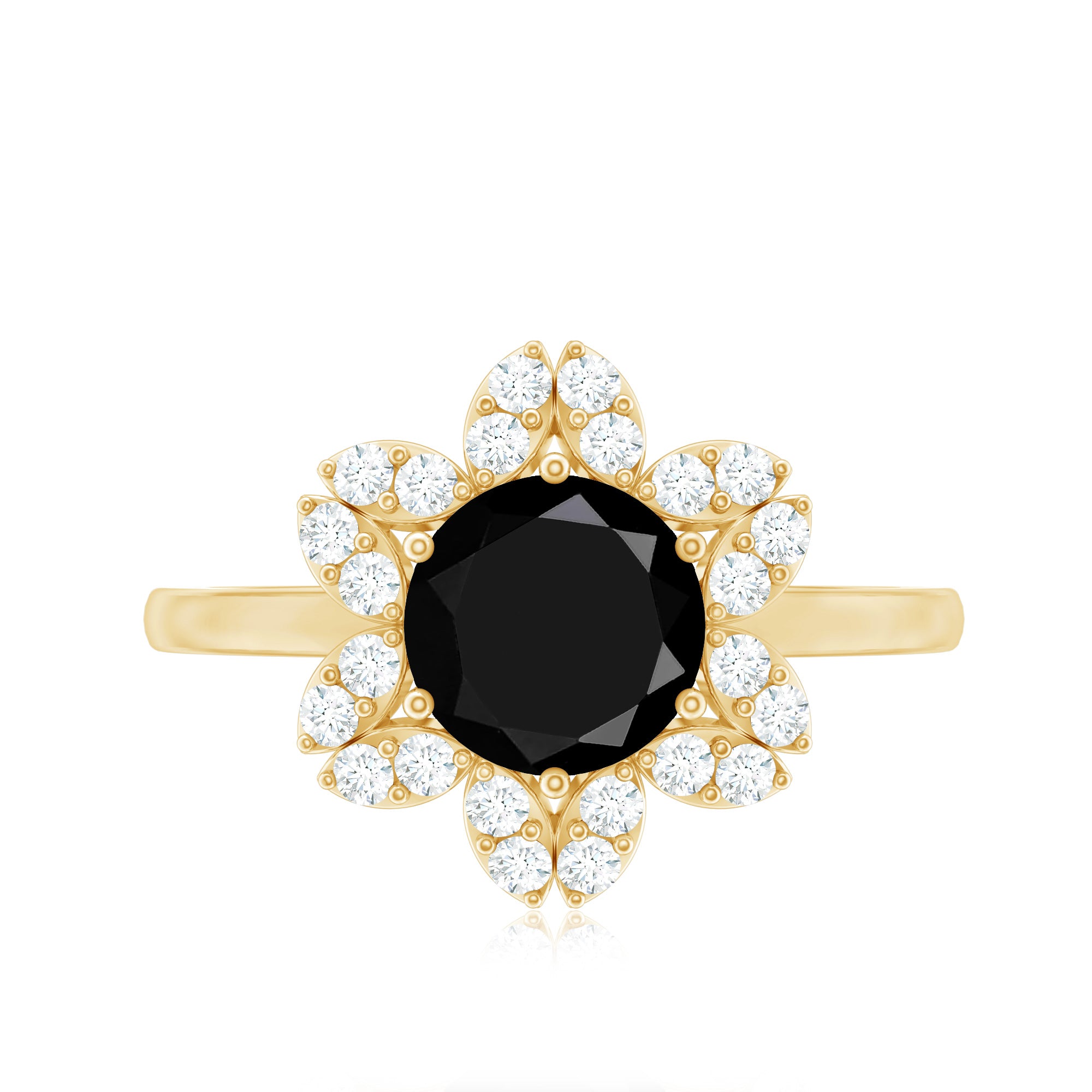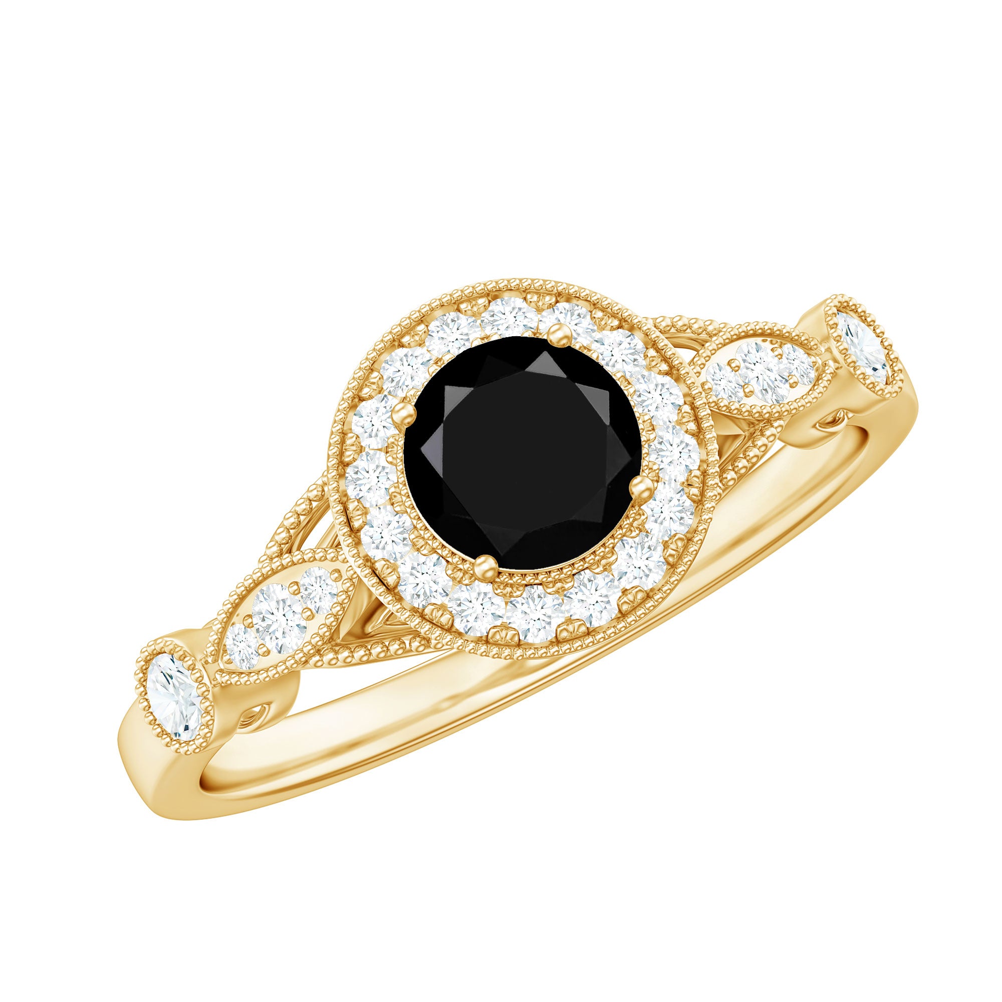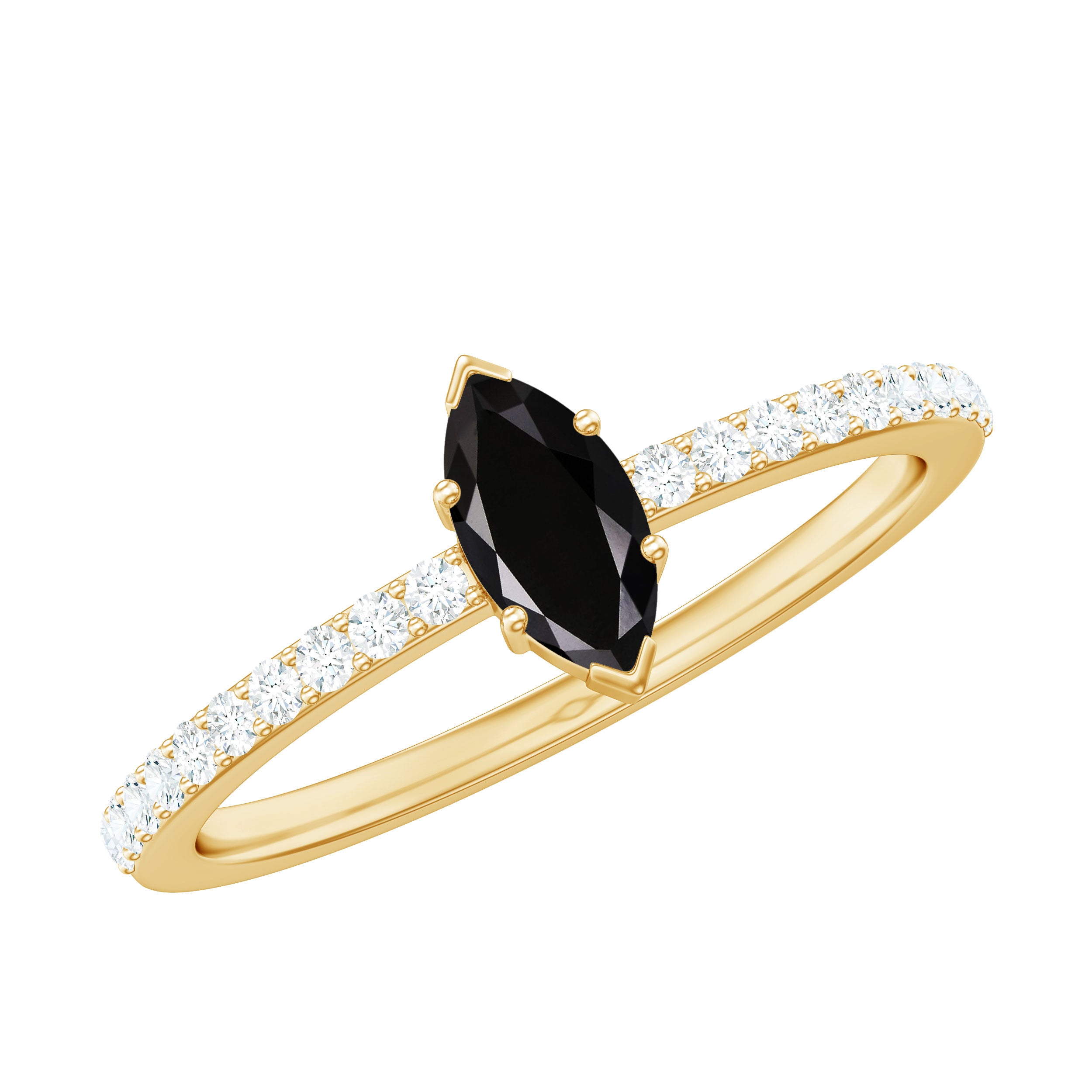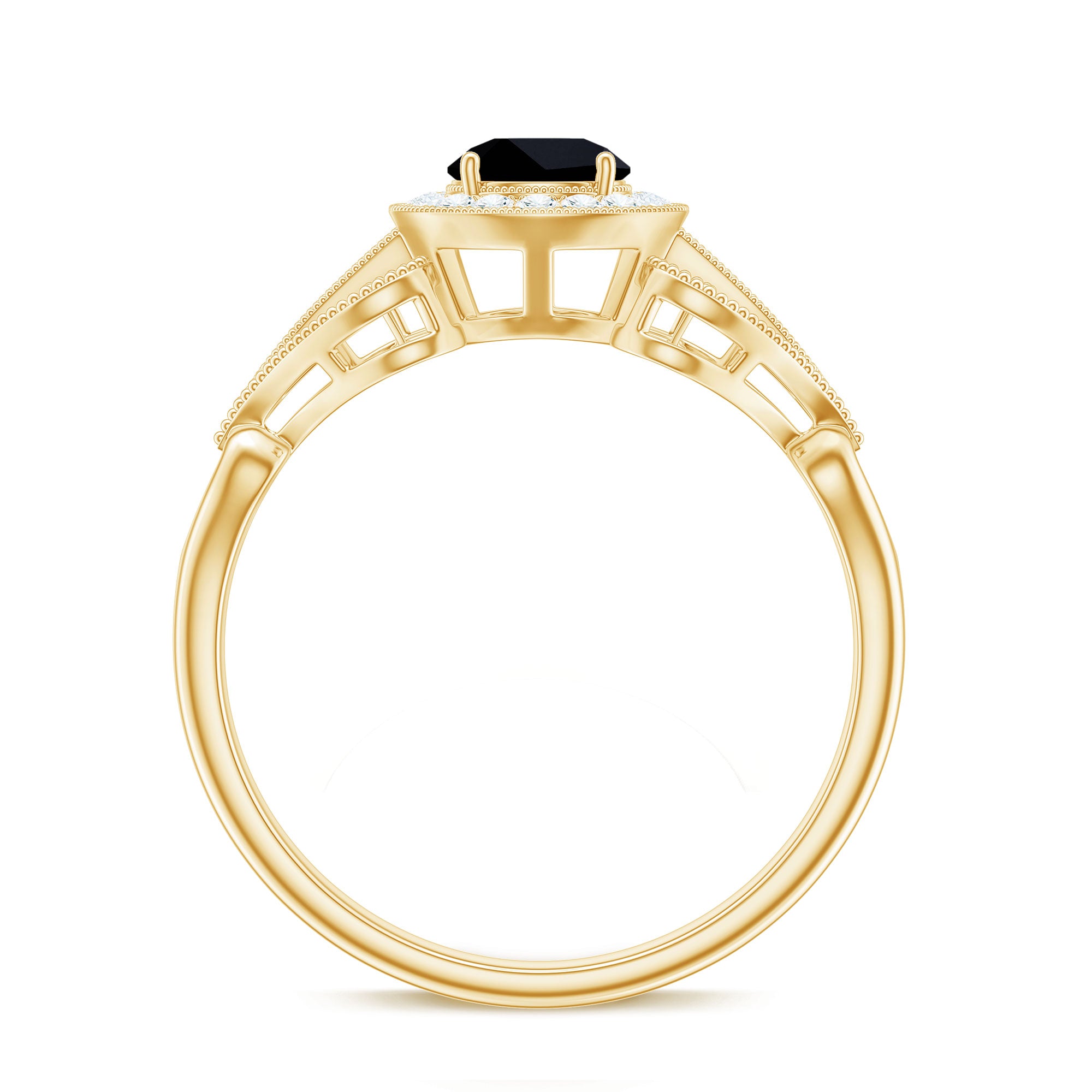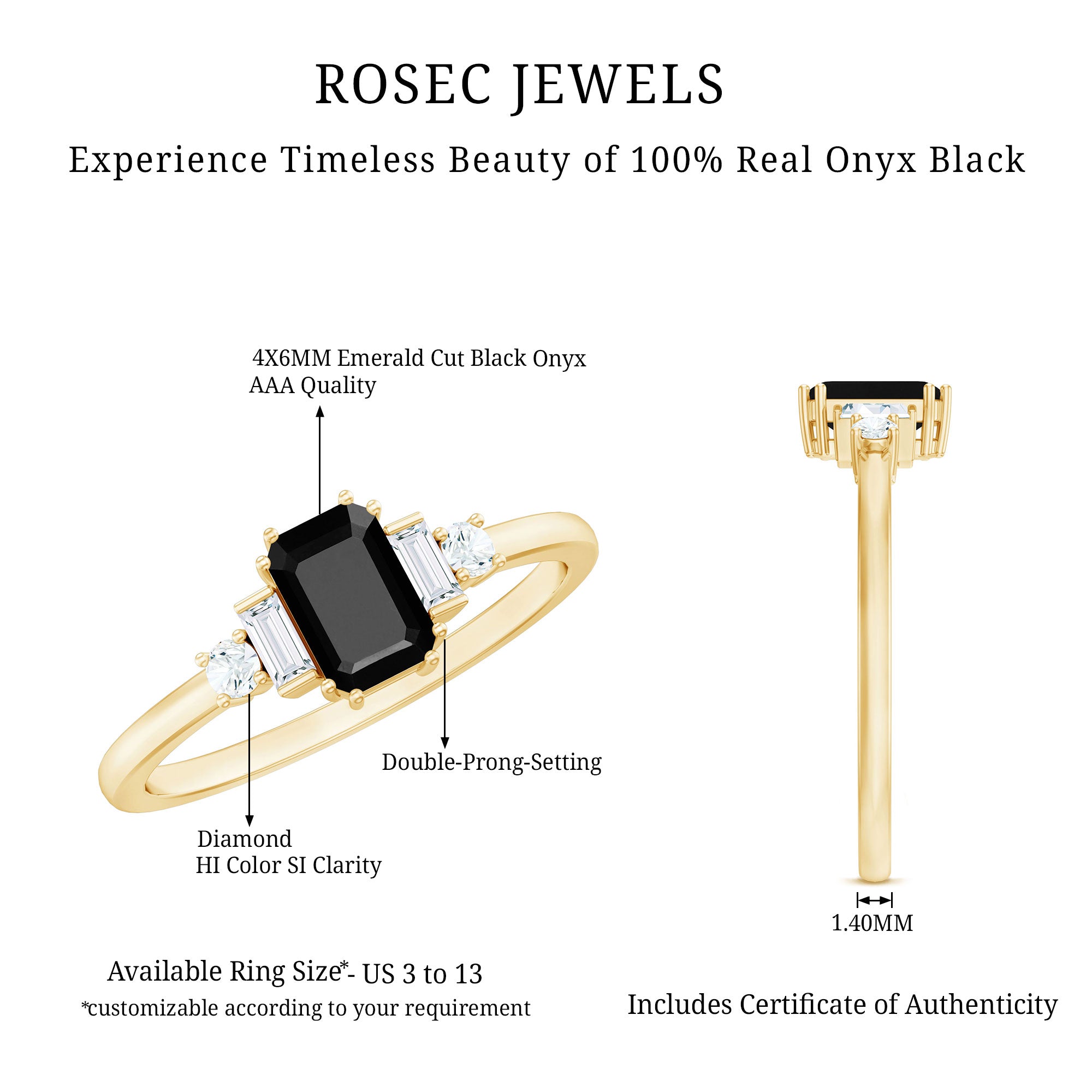 Alluring engagement ring styles are delicately crafted featuring the black onyx in variety of shapes ranging from round, oval, pear, marquise, cushion etc., and combining them with different gold colors. The gold onyx rings are curated only after assuring the 4 C’s of Black Onyx, our lapidarist are responsible for curating black onyx solitaire rings and vintage black onyx rings for engagement. Select from our onyx engagement rings for proposing your beloved and give her a chance to celebrate her happiness.