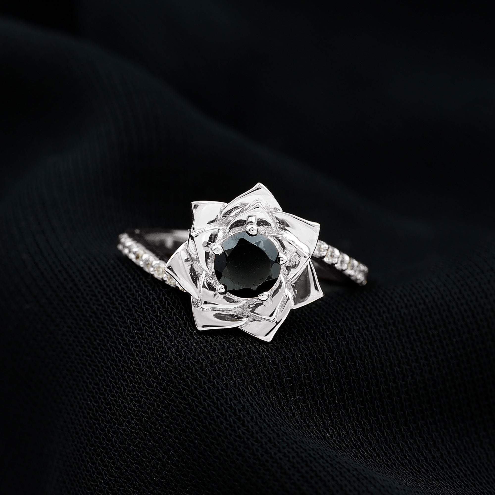 Black Onyx is often associated with strength, promotes concentration and devotion to a cause for the wearer of black onyx engagement rings.