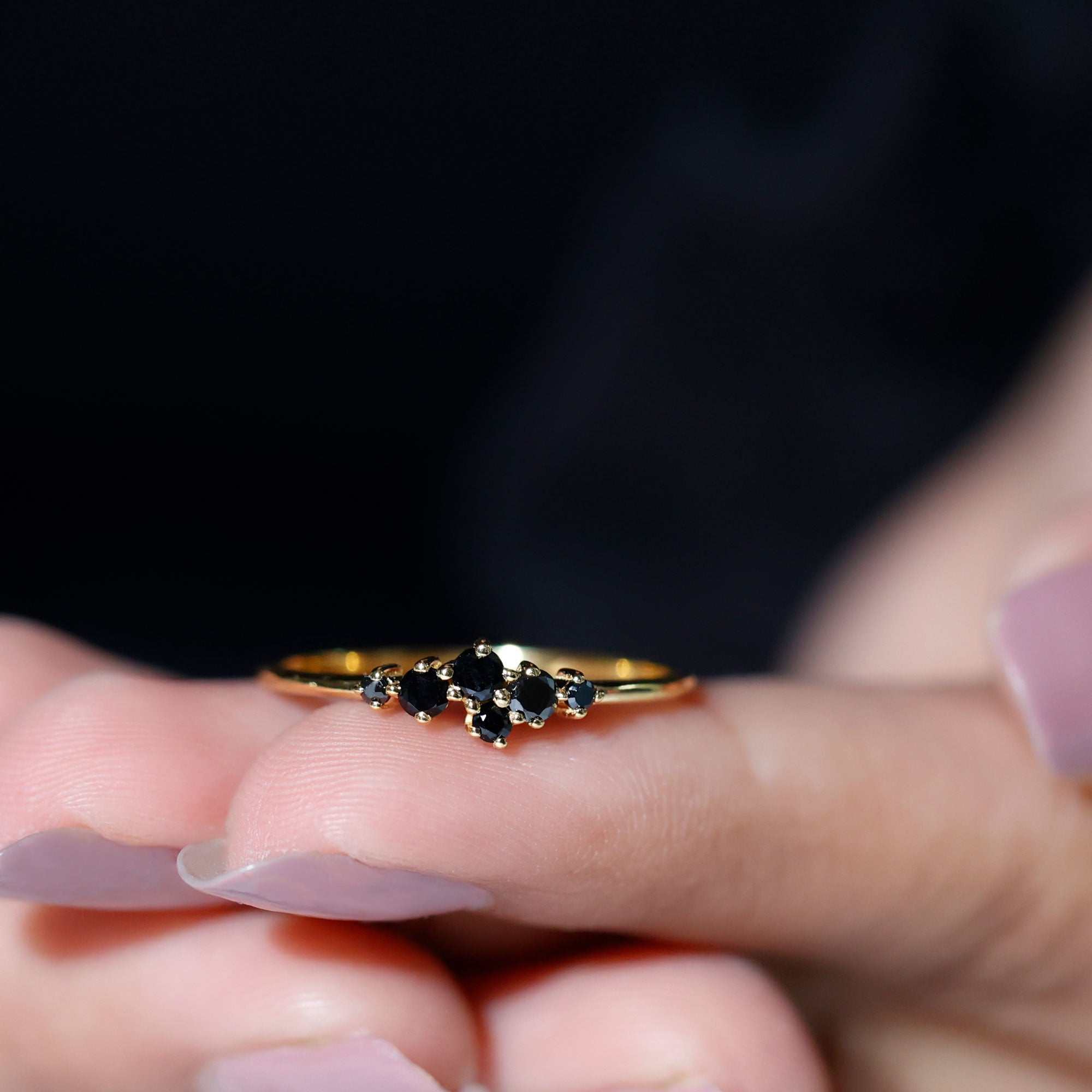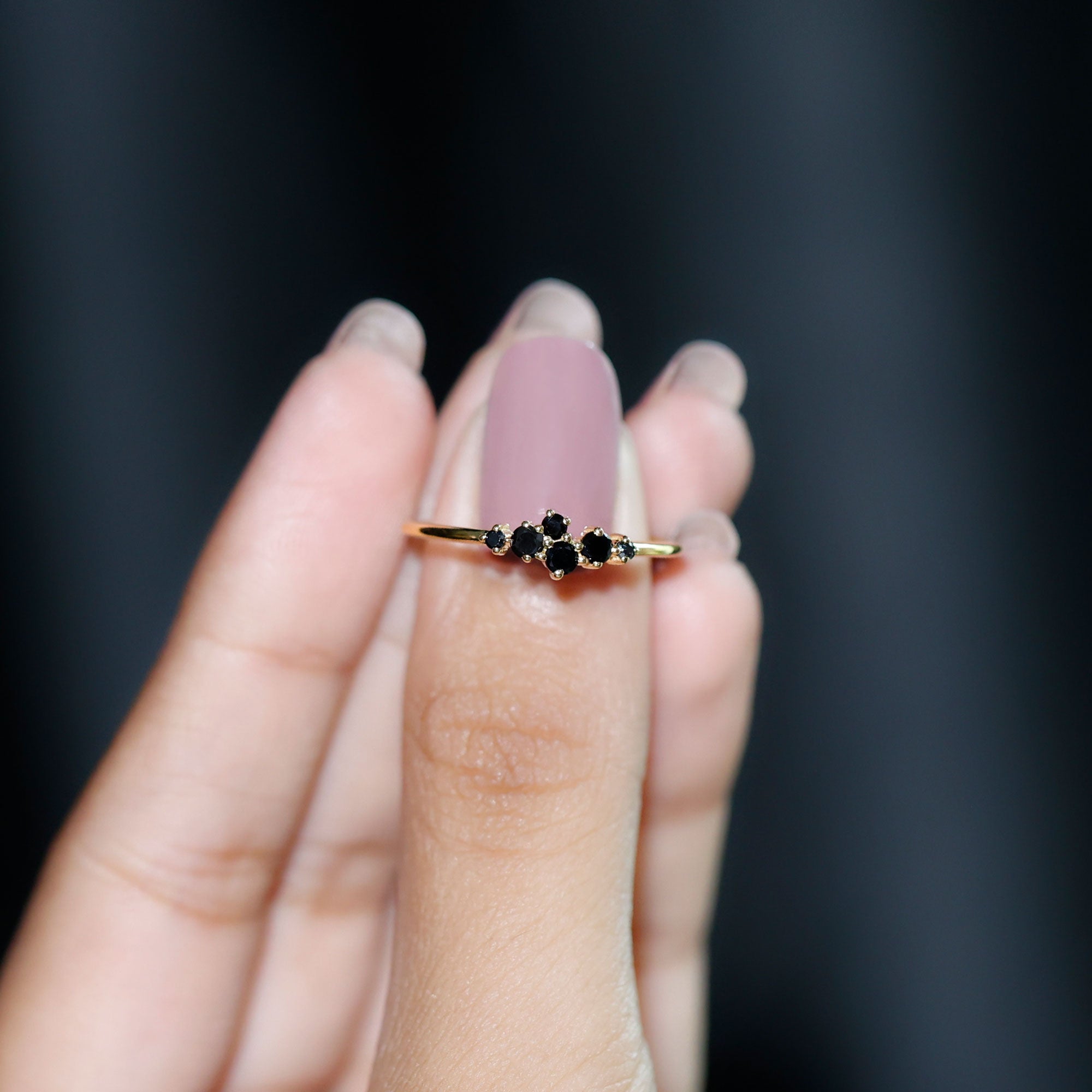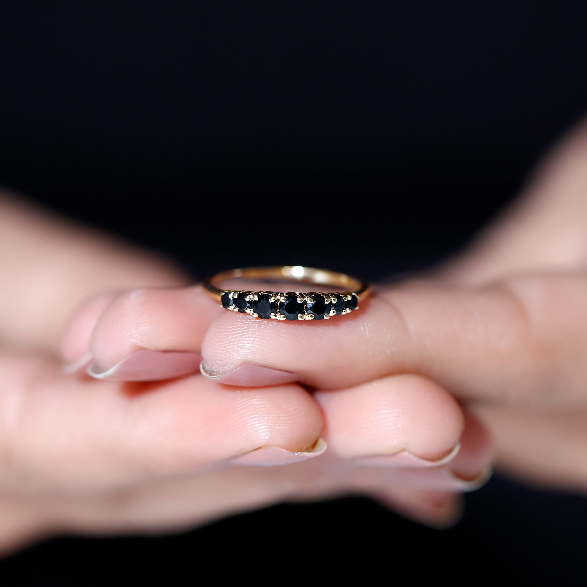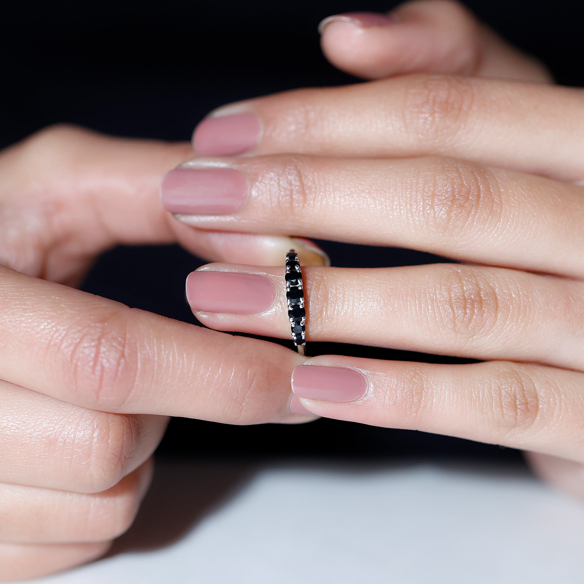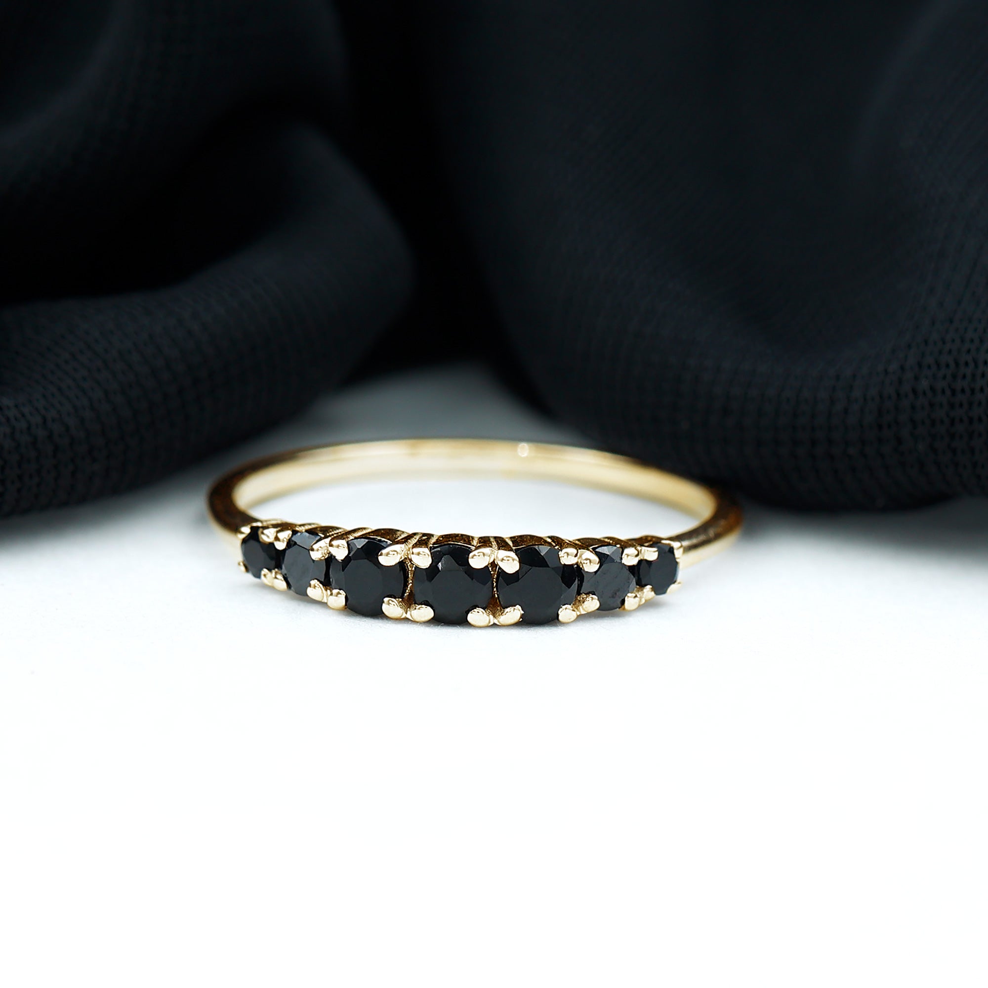 A Modern Classic, this Eternity Ring is paraded by a row of Black Onyx that are typically uniform in size. You’ll find no better style to flaunt your Black Onyx. But don’t take it to mean that it is all aesthetics. This style has been crafted in a way that carries an equally beautiful meaning behind it. The eternity pattern of stones commemorates the kind of love that lasts till the end of time (eternally). That’s why it also makes for an iconic Black Onyx Wedding Ring.
