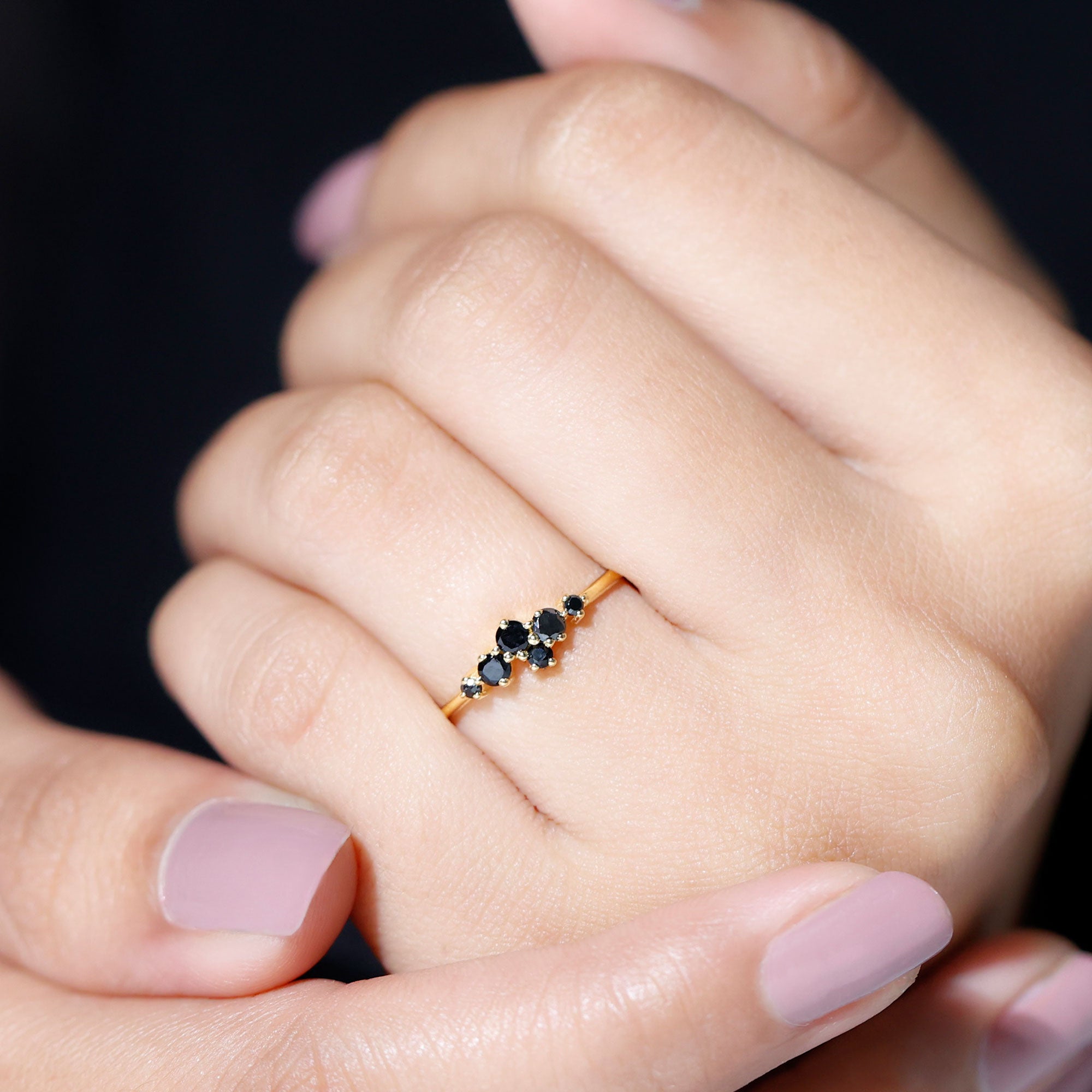 A Promise Ring highlights the Centerpiece of Black Onyx while staying understated. That’s because the size of Black Onyx here is a lot smaller (typically, around 4 mm or less). This ring style could incorporate elegant floral motifs, minimalist nature-inspired details, or accents of Diamond/Moissanite (without overdoing it). When presented, these Black Stone Rings insinuate a promise of togetherness and an intent to take the relationship to the next level.