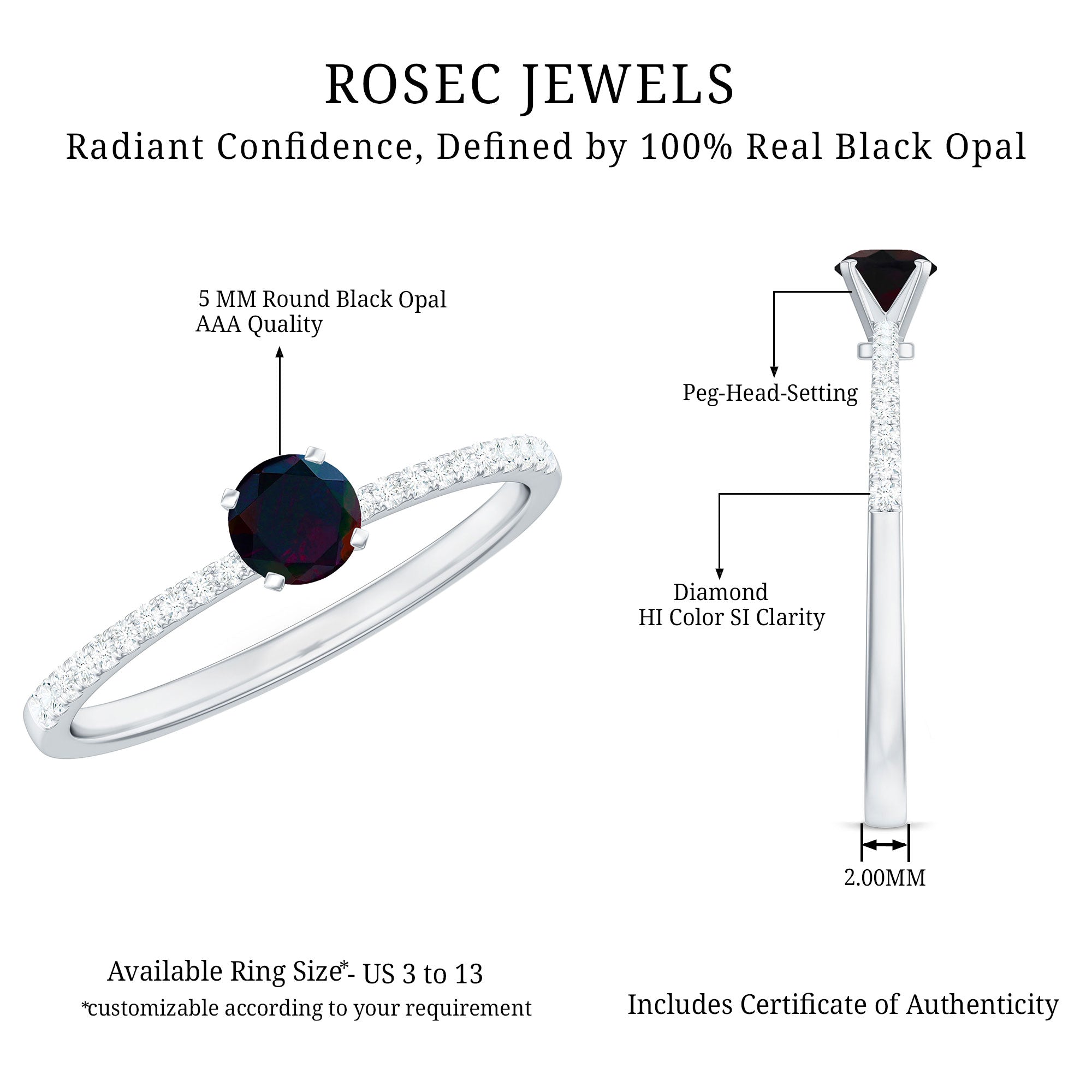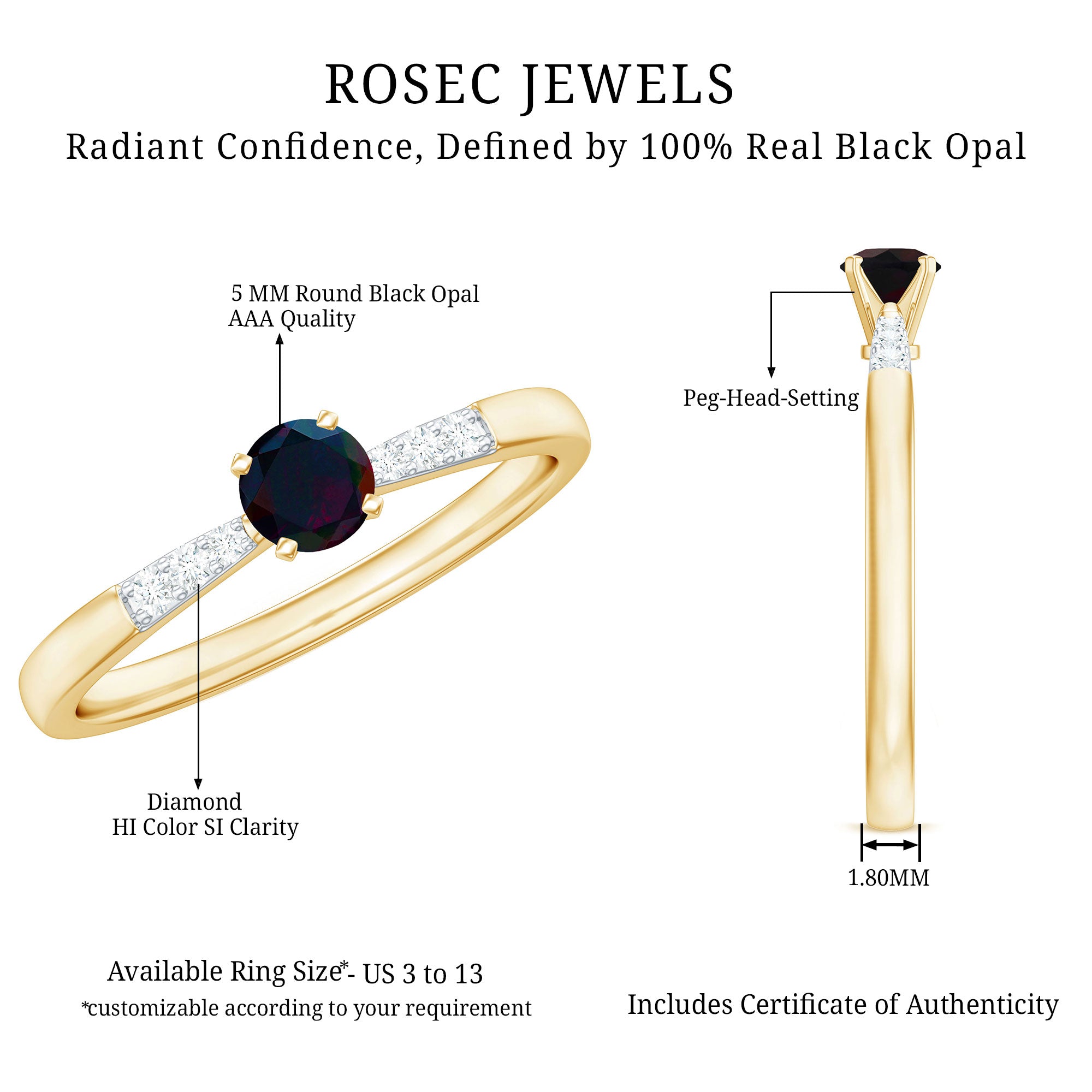 • Black opal rings are visually appealing, due to the striking play of colors of black center stone. The mesmerizing effect created by the diffraction of light on the dark black opal body enhances the brilliance of rainbow colors.