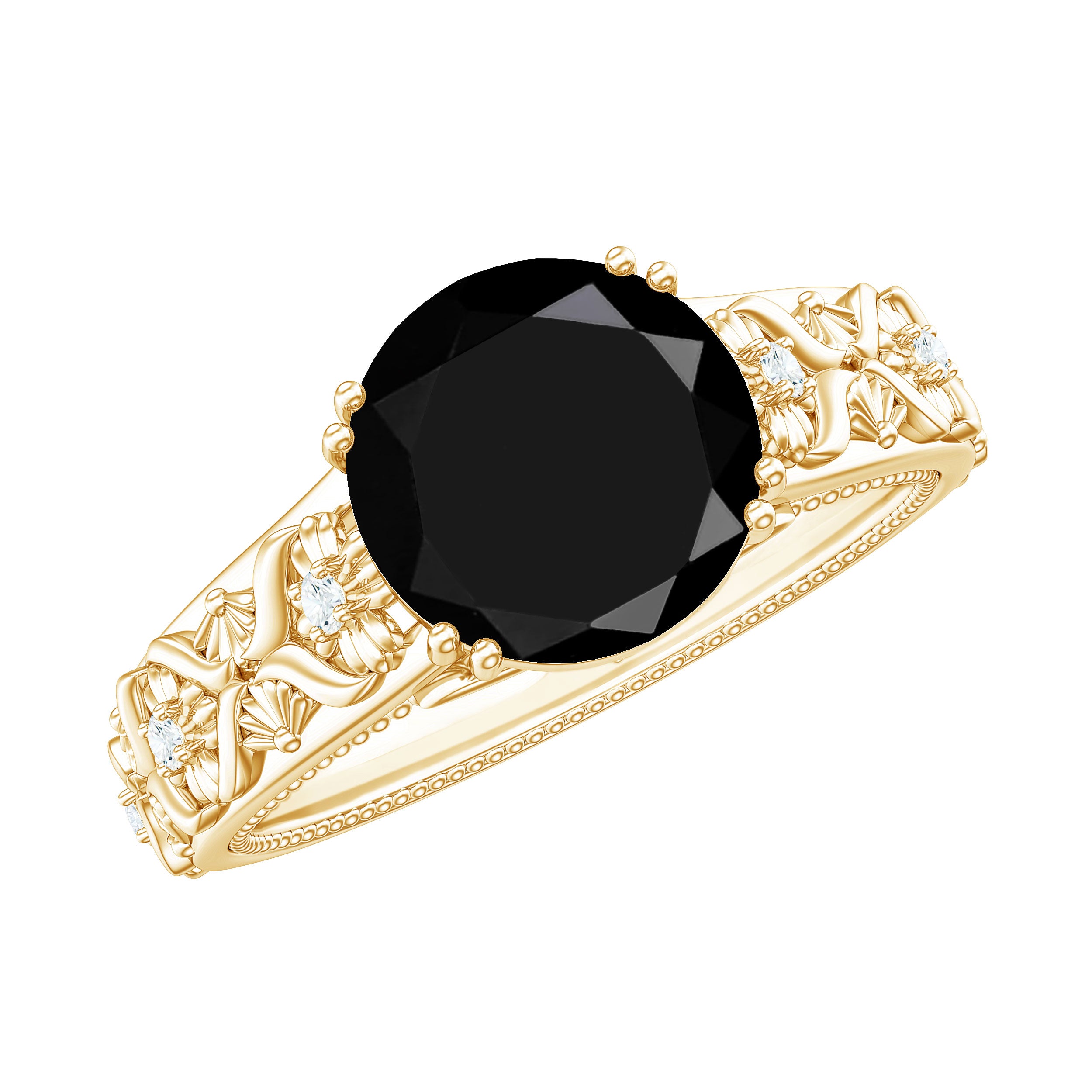 Ornamented with iconic designs from Art Deco, Edwardian, and Victorian Eras, a Vintage-inspired Black Spinel Gold Ring is meant to exude an old-school vibe. It boasts artistic abstract patterns and intricately crafted milgrain, filigree, and other retro engravings. What’s more, it speaks to those who like their ring to carry a historic story.