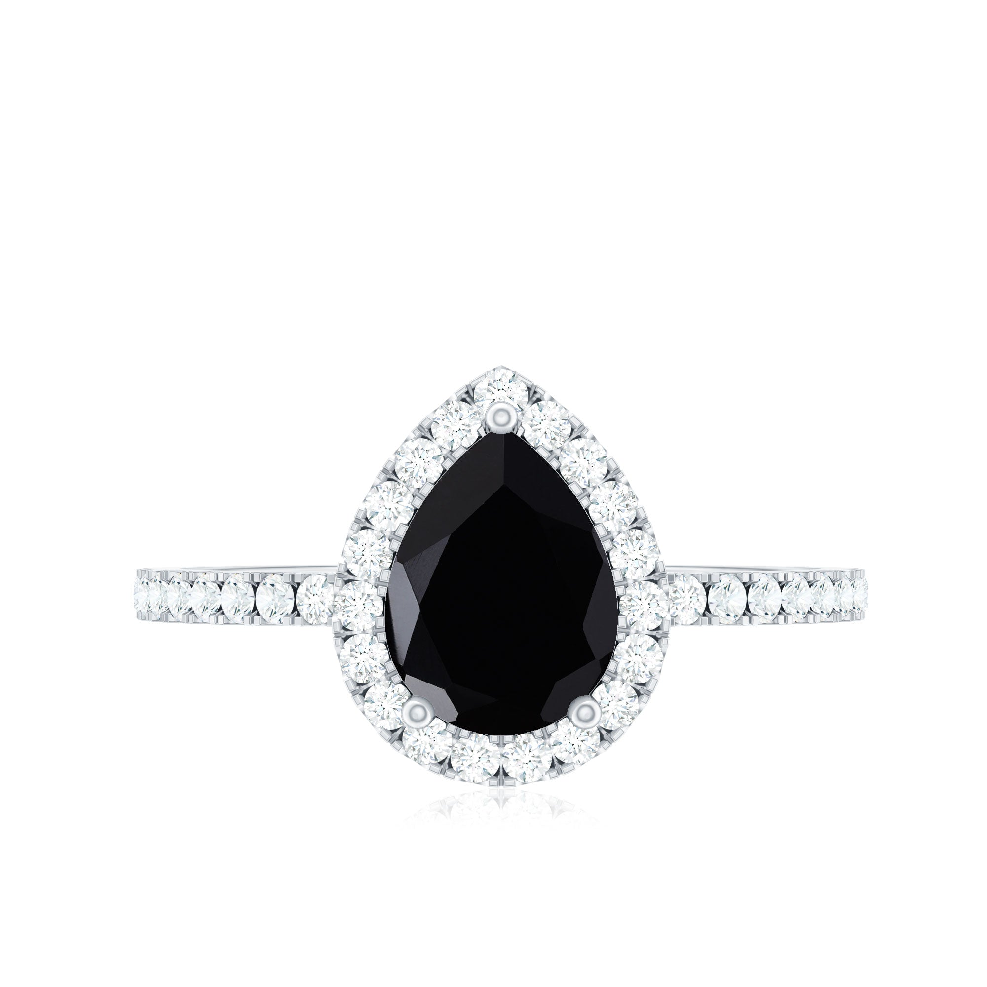 Lending an interesting visual appeal to the Black Spinel Solitaire Ring, a Halo encircles the Black Spinel with a parade of diamond/moissanite. The best part about a Halo is that it rewards more personality as well as an illusion of a larger-looking size to your Black Spinel. So, it is a unique blend of classic and flashy. That makes it another popular choice of the Black Spinel Engagement Ring.