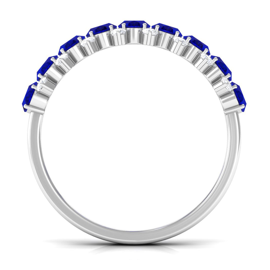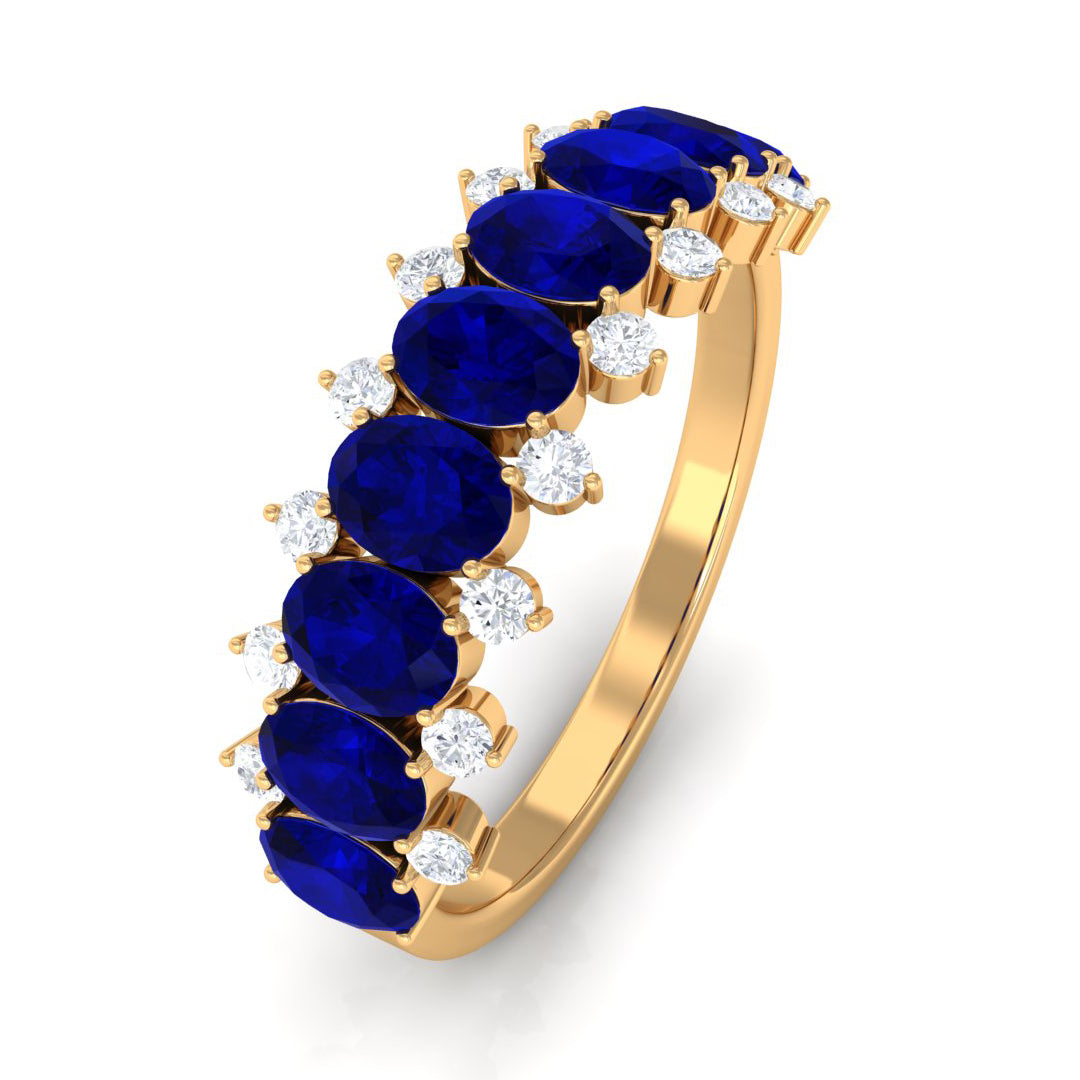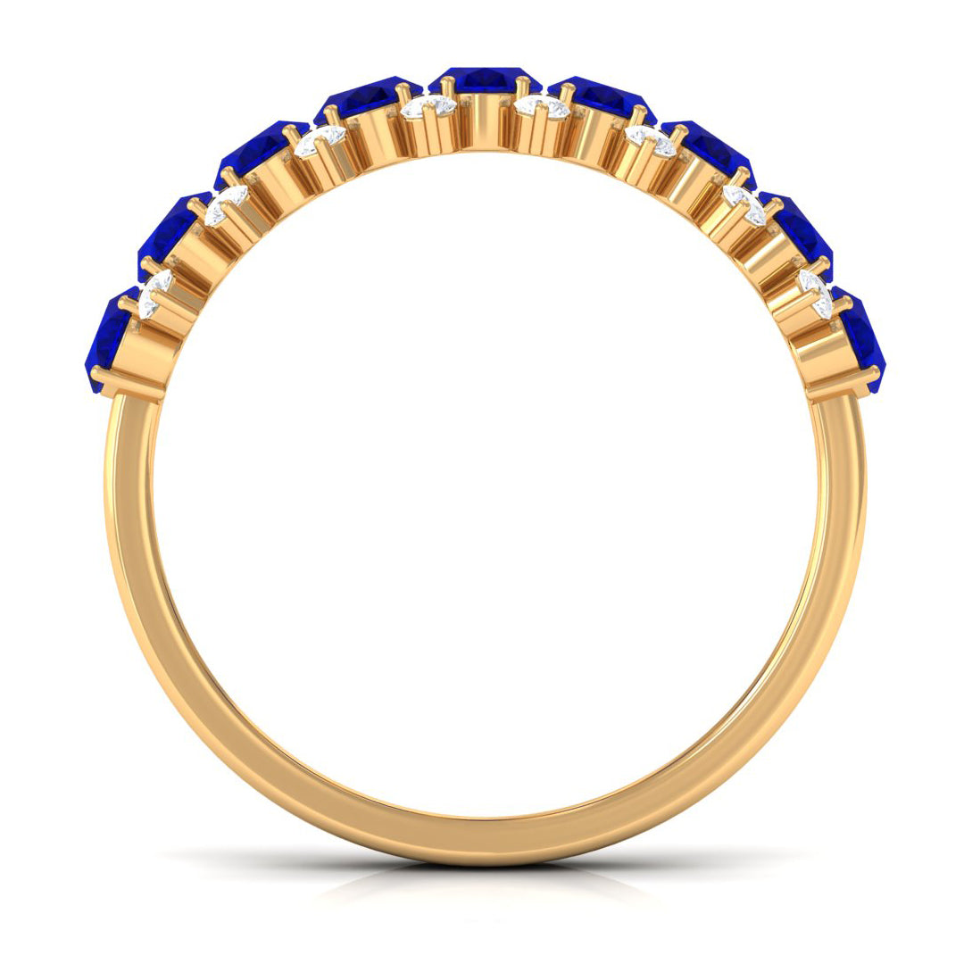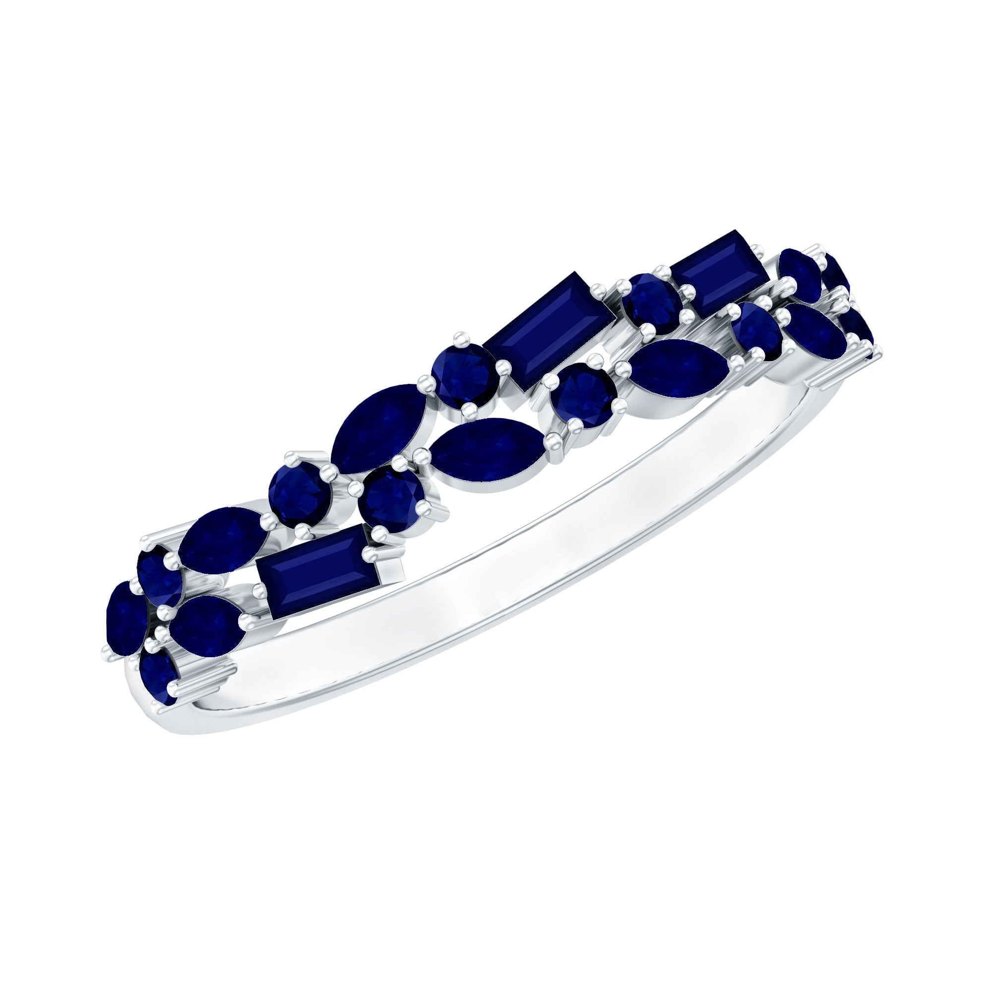 Half Eternity Wedding Bands: - Eternity bands fill one's relationship with lots of love, affection, and warmth. Out of all the eternity wedding bands, our blue sapphire half-eternity bands are the most popular. Each ring is a stunning piece, either secured in a prong or bezel setting to keep the gemstone on place.