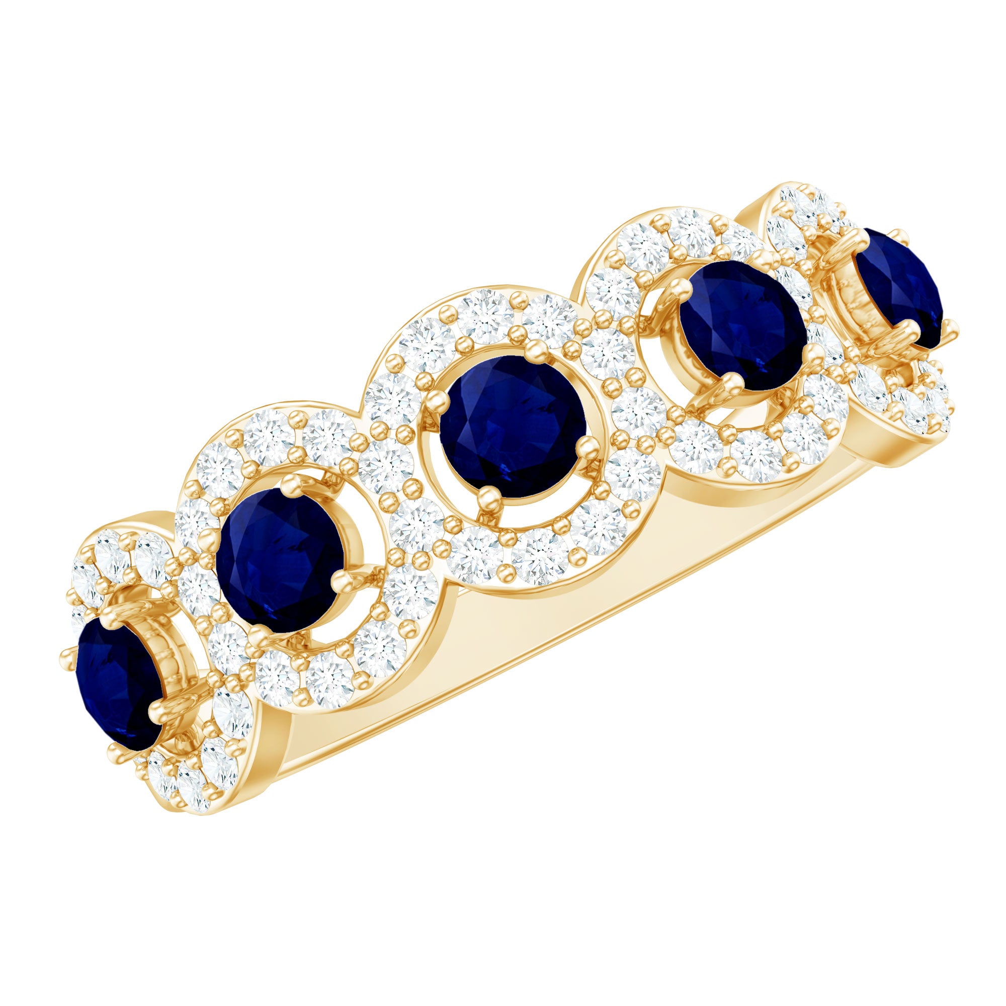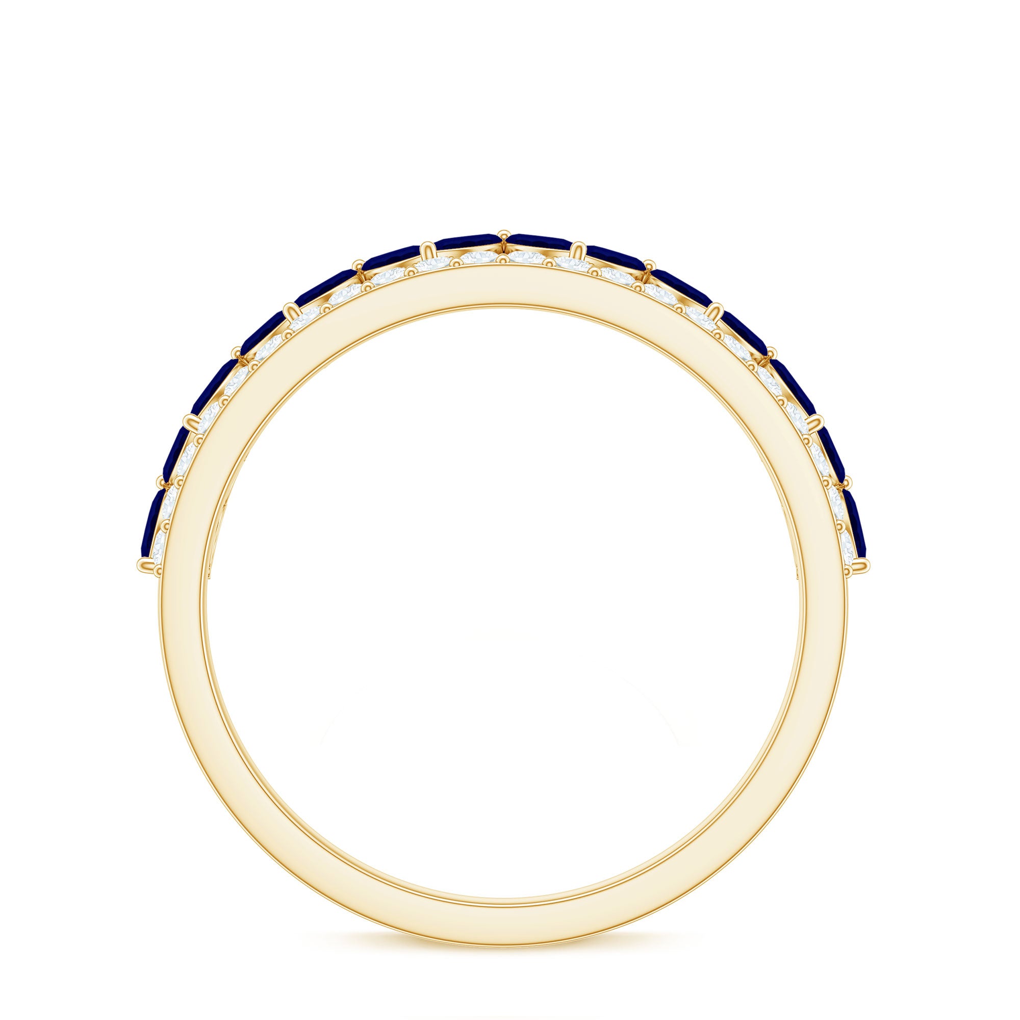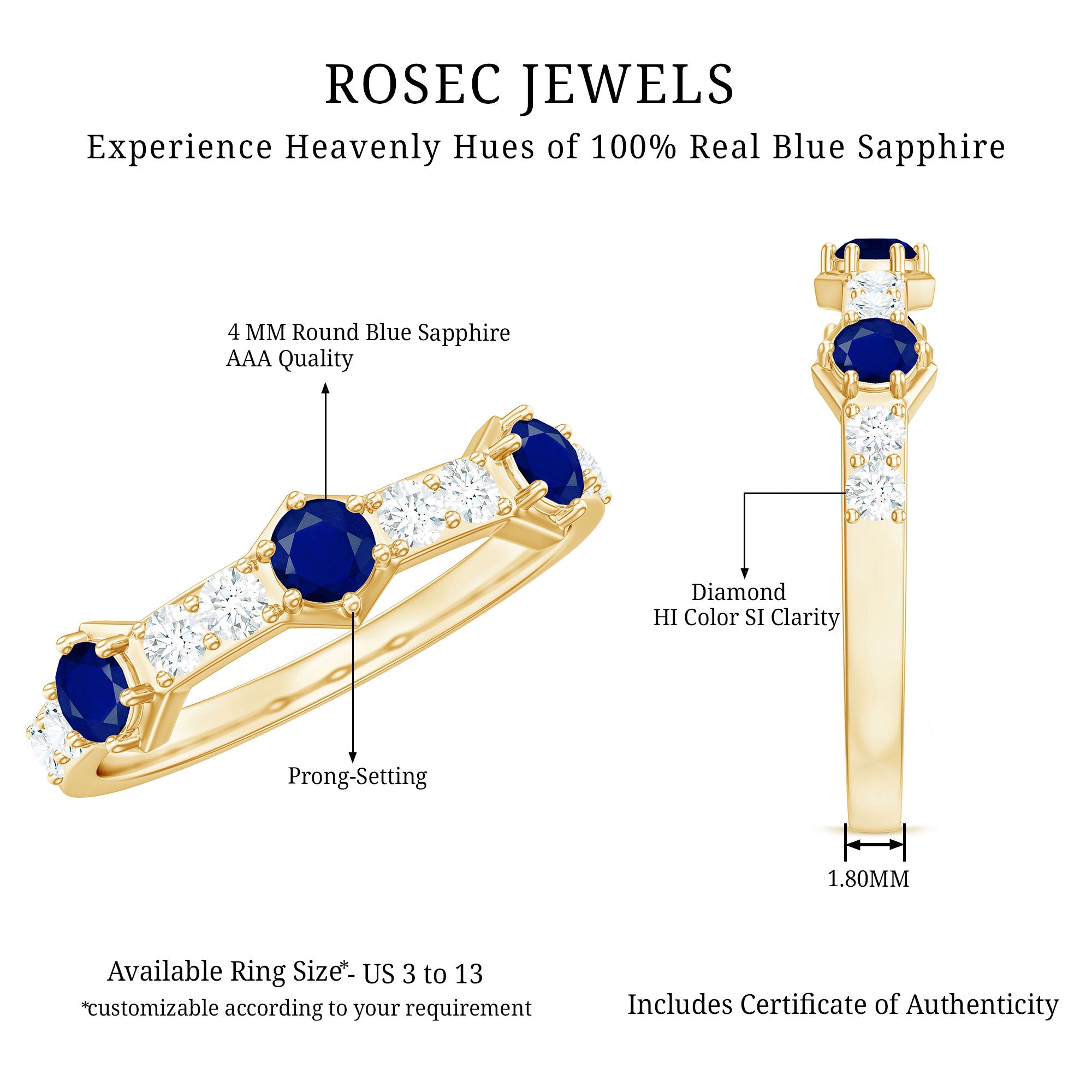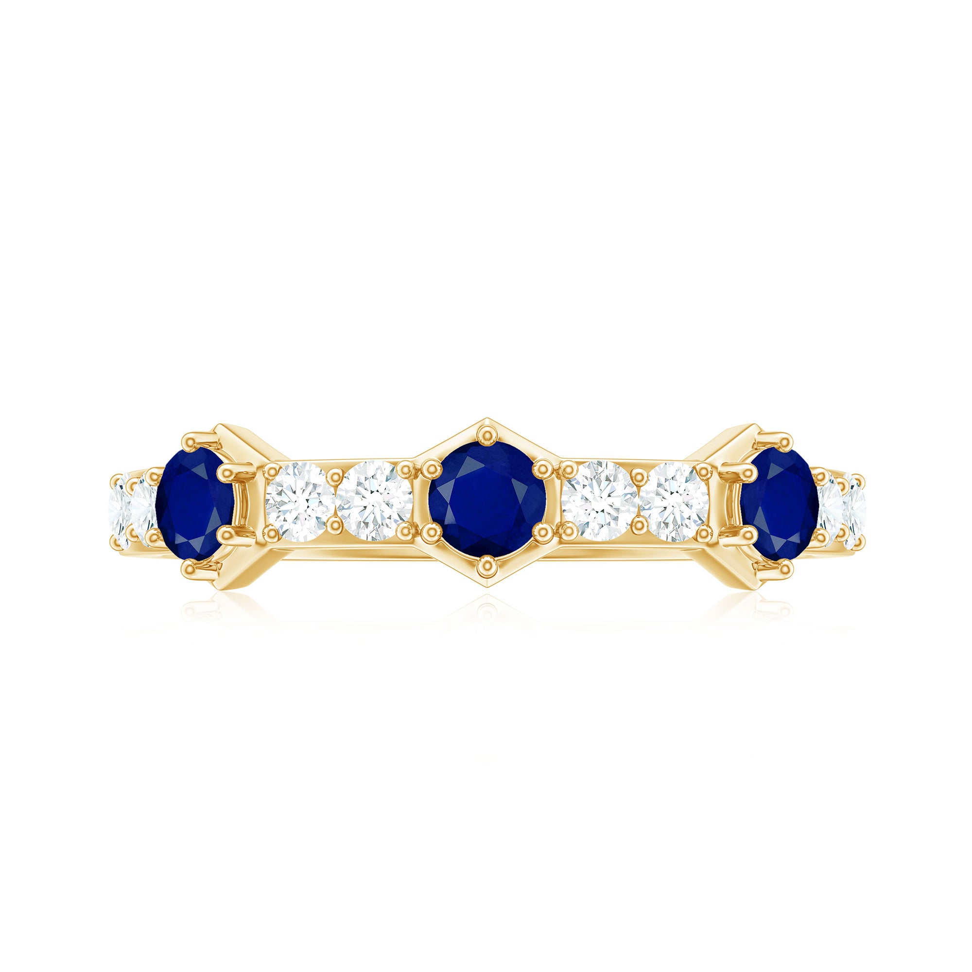 Half Eternity Wedding Bands: - Eternity bands fill one's relationship with lots of love, affection, and warmth. Out of all the eternity wedding bands, our blue sapphire half-eternity bands are the most popular. Each ring is a stunning piece, either secured in a prong or bezel setting to keep the gemstone on place.