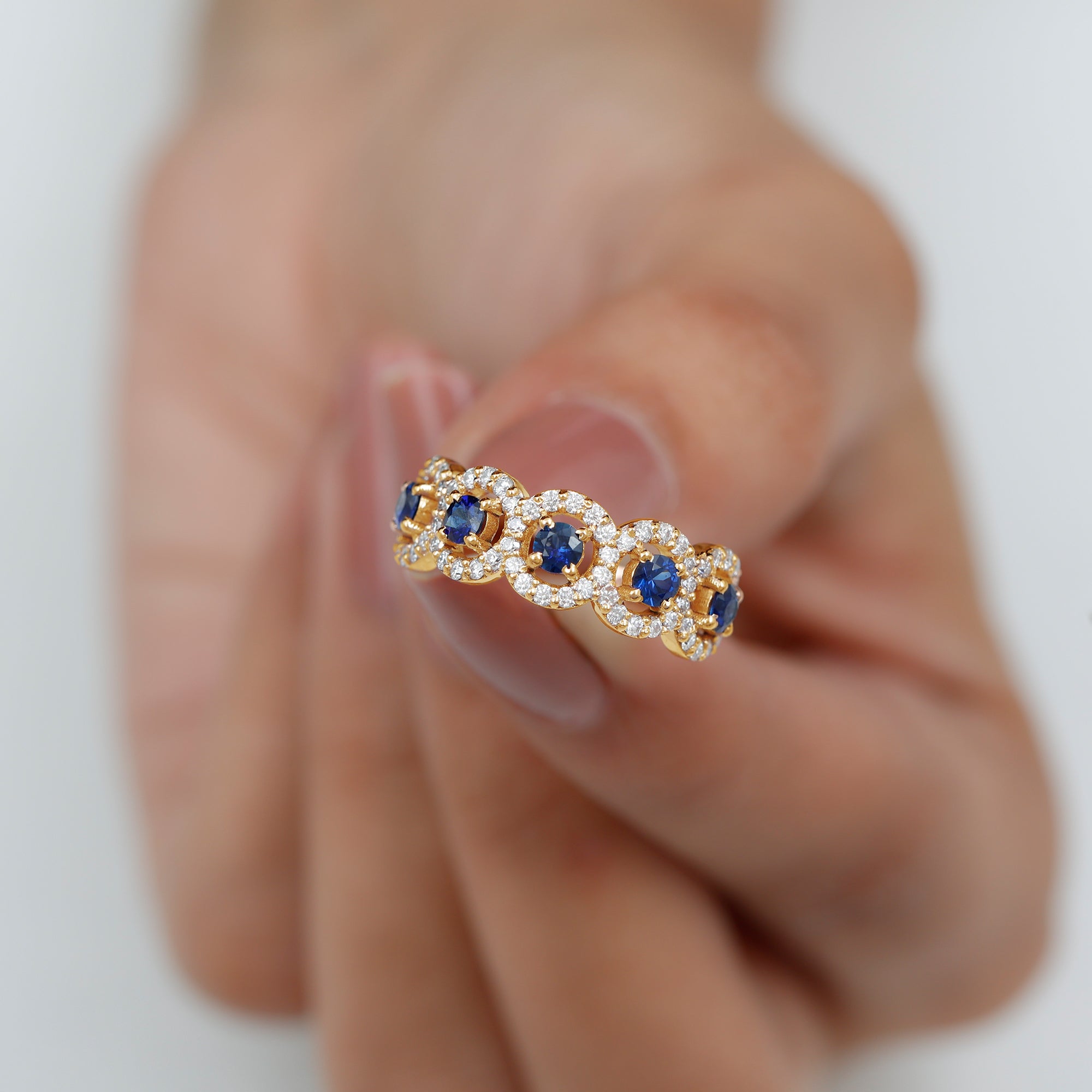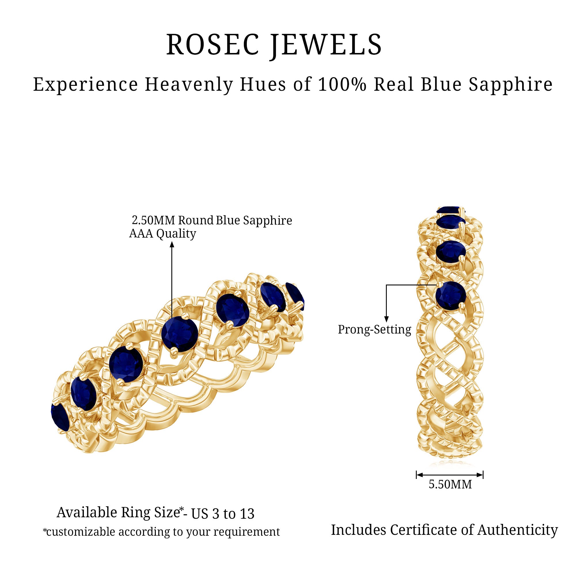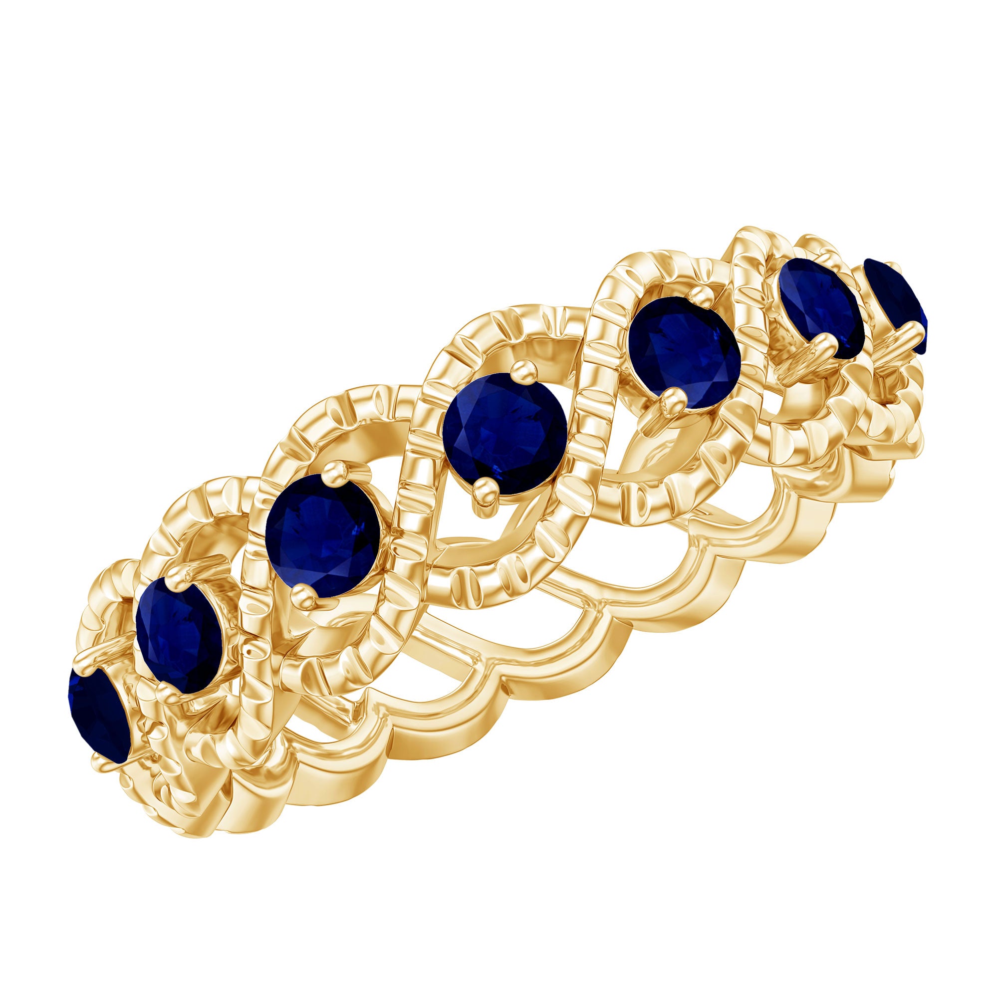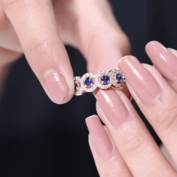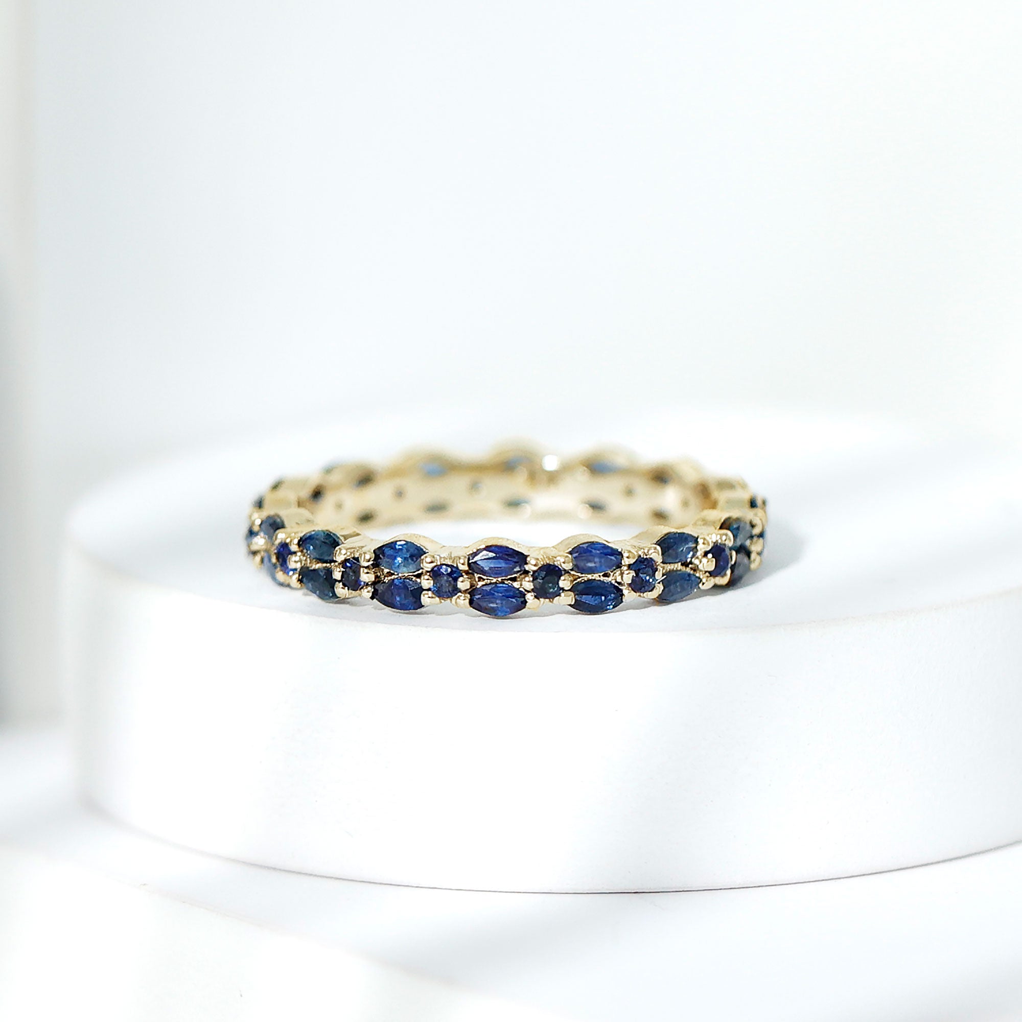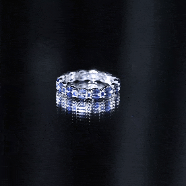 Full Eternity Wedding Bands: - Adorn with a continuous loop of blue gemstone, that serves as a gesture of love and long-lasting commitment. The wedding bands are graced by the mesmerizing shade of blue sapphire which is set all around the band. Our full eternity bands not only hold essential significance but also carry deep emotions that make them the perfect choice for a wedding ring.