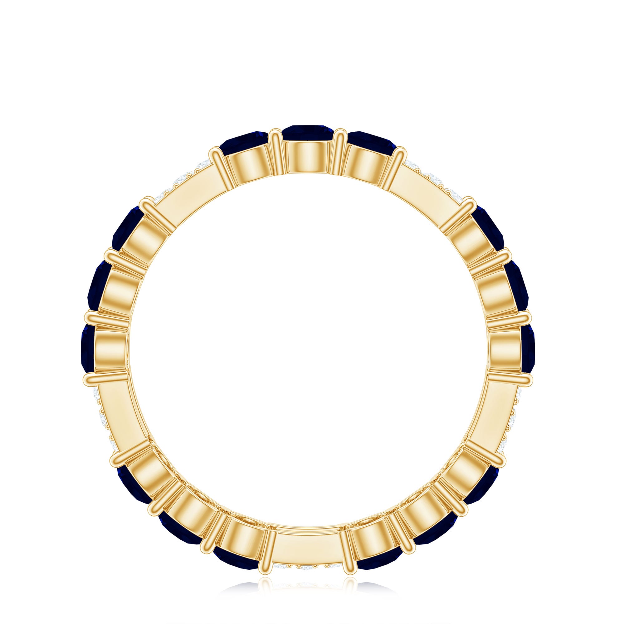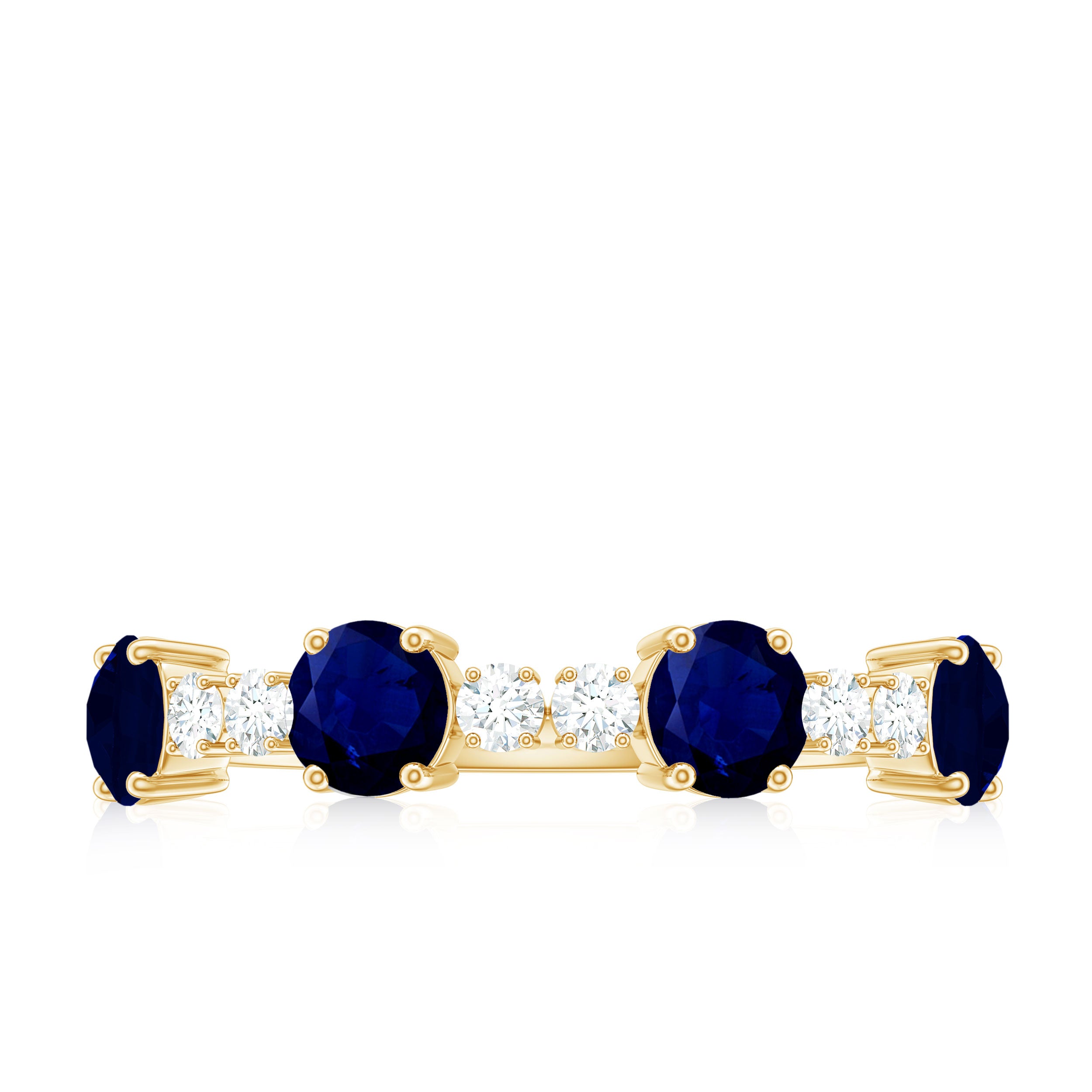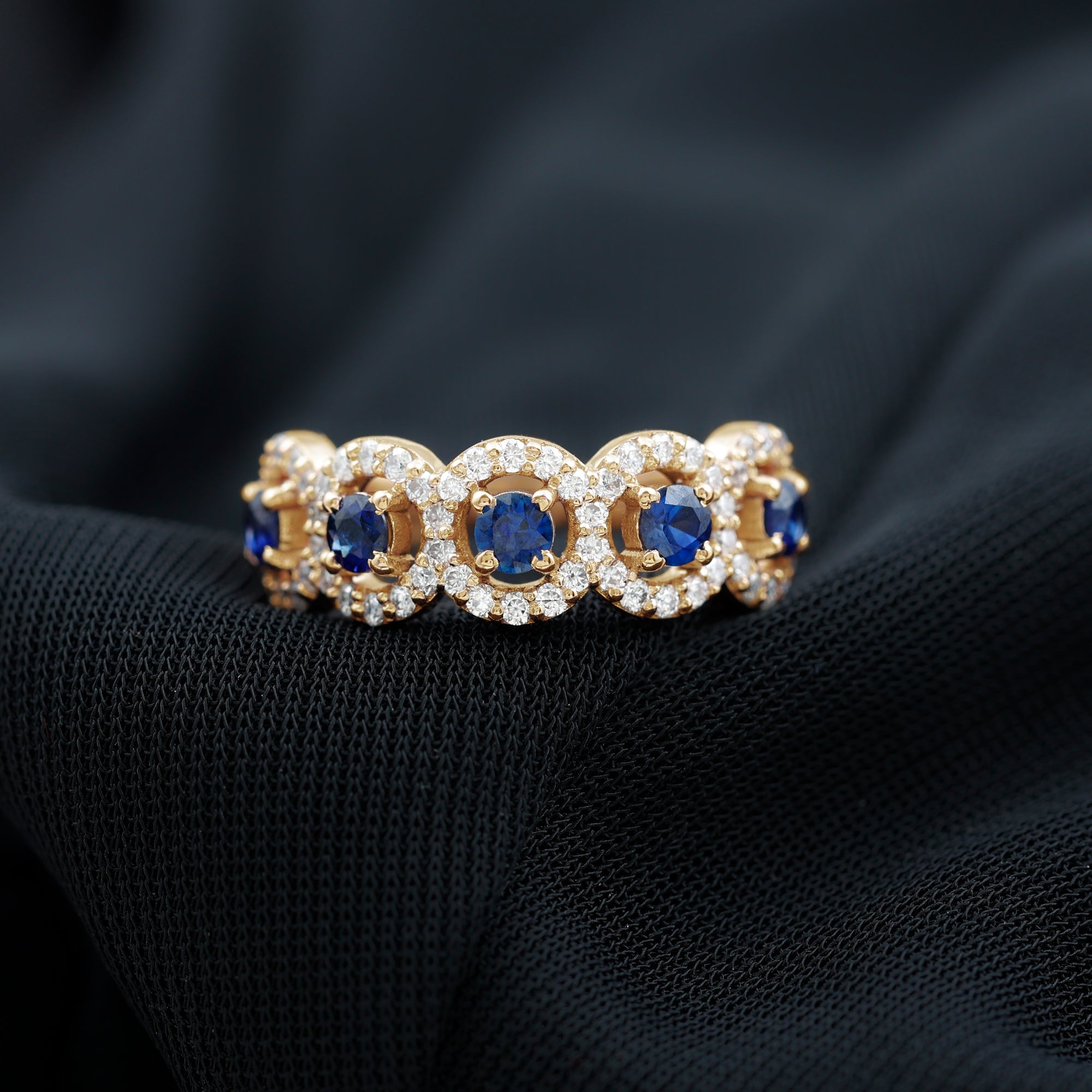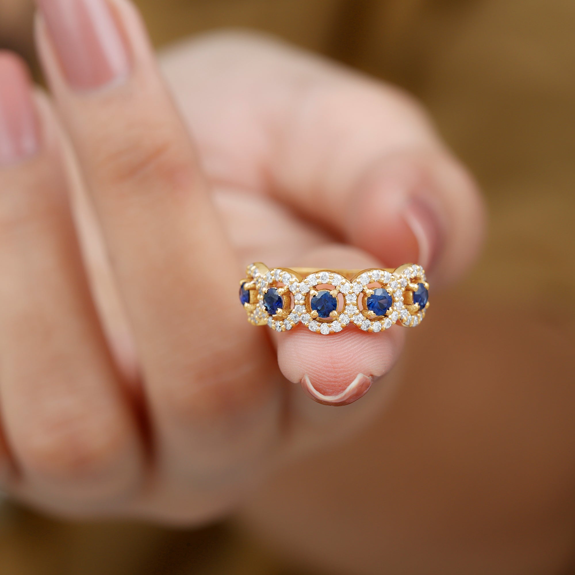 Full Eternity Wedding Bands: - Adorn with a continuous loop of blue gemstone, that serves as a gesture of love and long-lasting commitment. The wedding bands are graced by the mesmerizing shade of blue sapphire which is set all around the band. Our full eternity bands not only hold essential significance but also carry deep emotions that make them the perfect choice for a wedding ring.