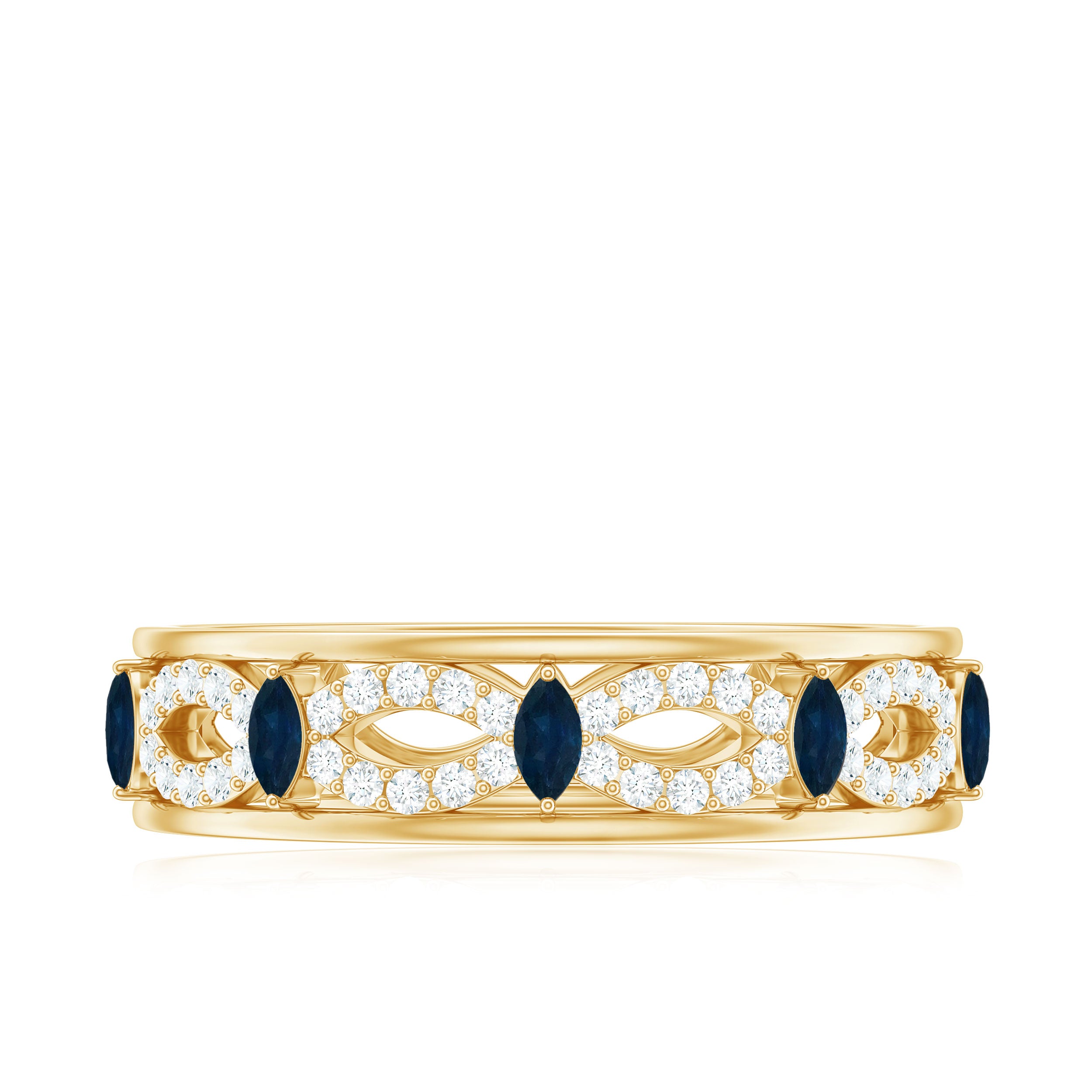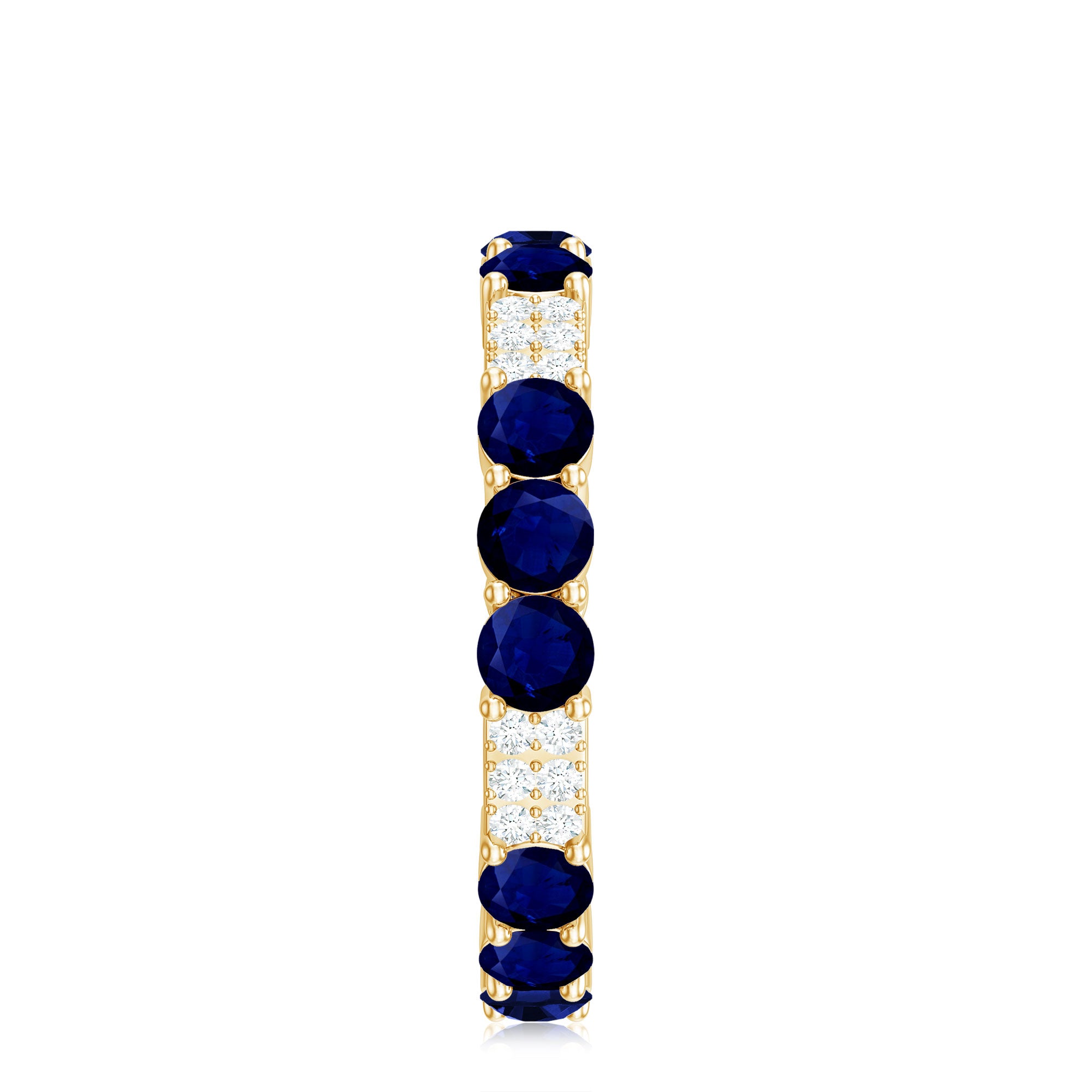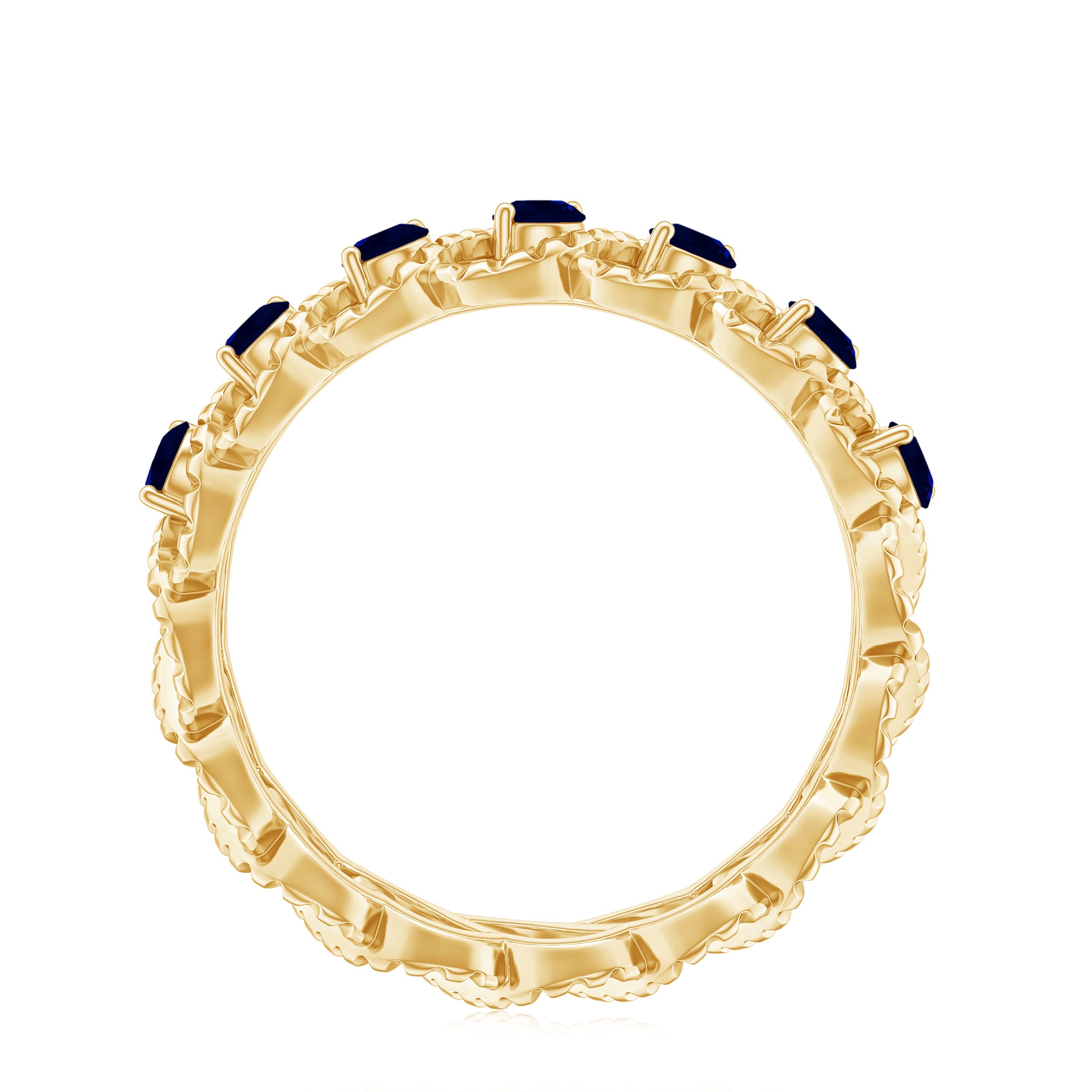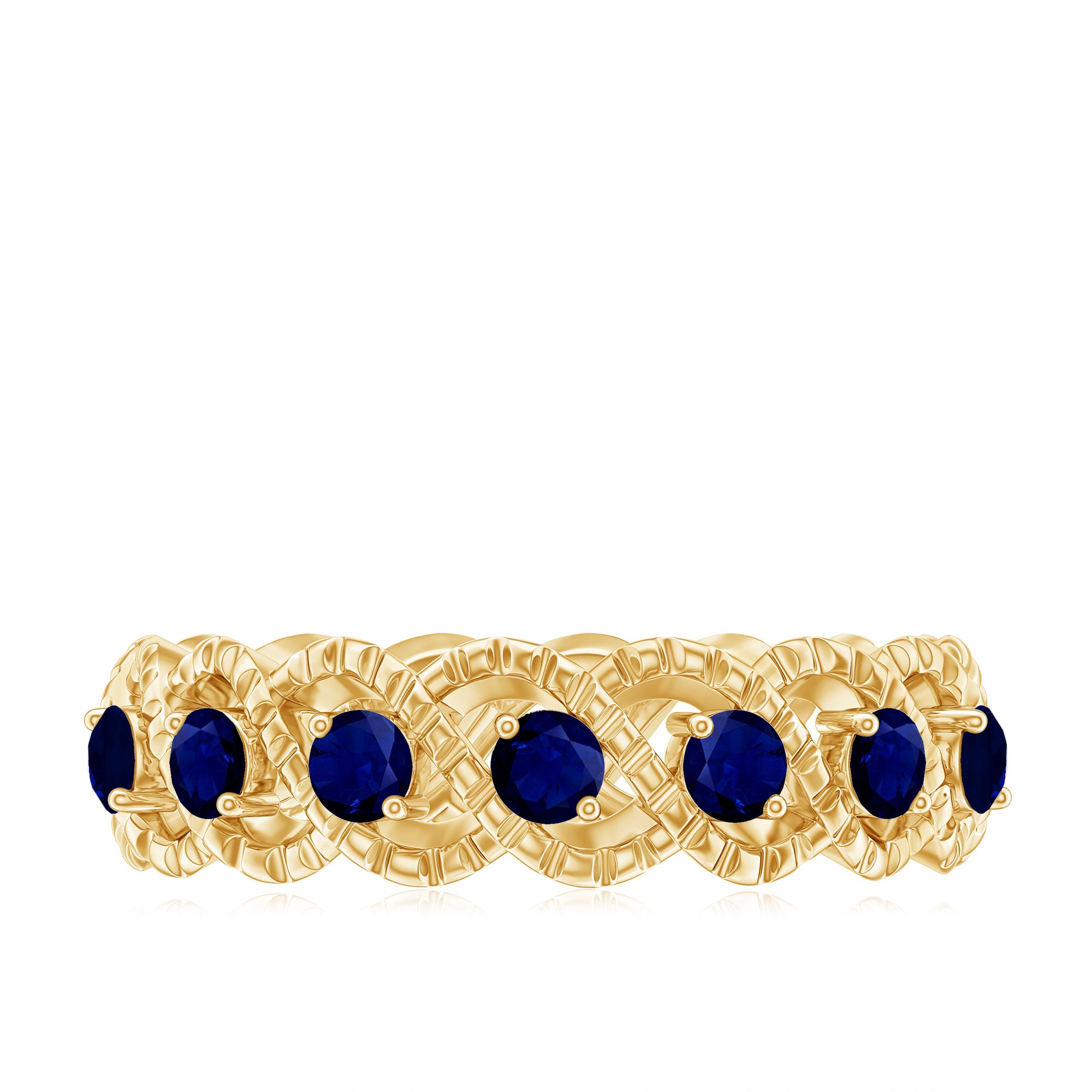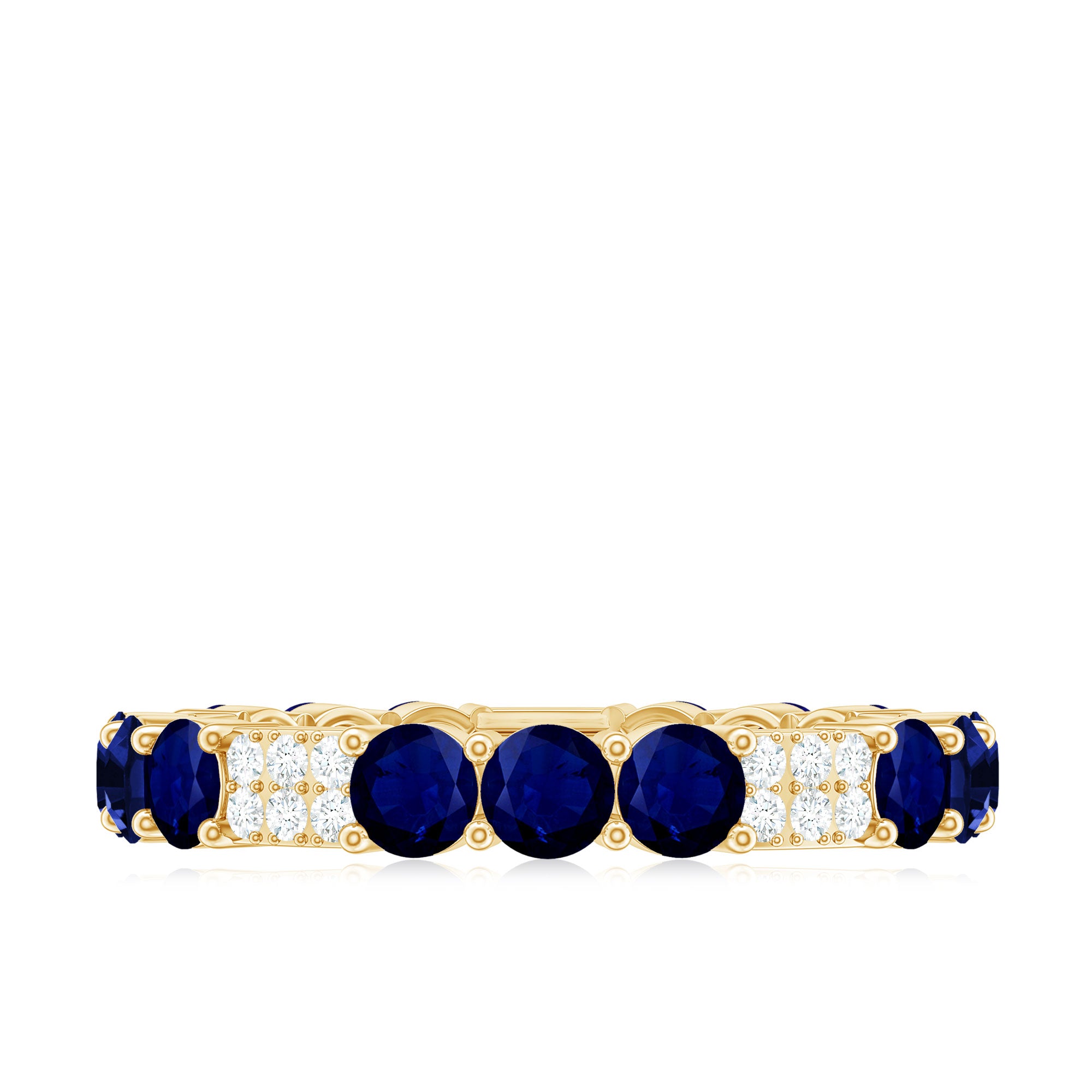 Full Eternity Wedding Bands: - Adorn with a continuous loop of blue gemstone, that serves as a gesture of love and long-lasting commitment. The wedding bands are graced by the mesmerizing shade of blue sapphire which is set all around the band. Our full eternity bands not only hold essential significance but also carry deep emotions that make them the perfect choice for a wedding ring.