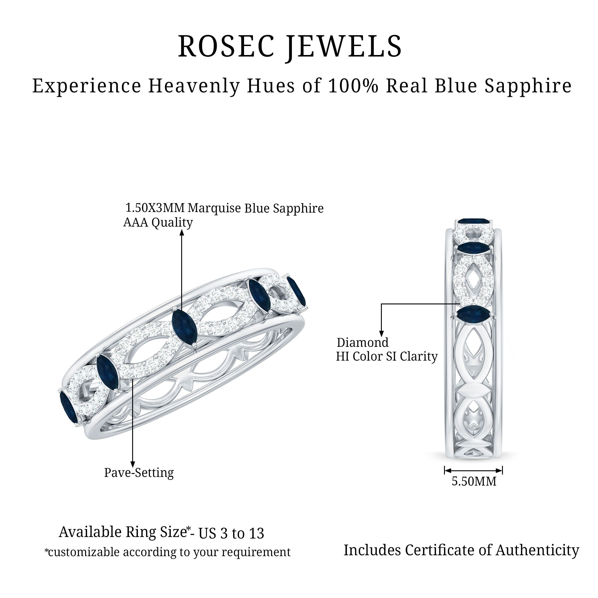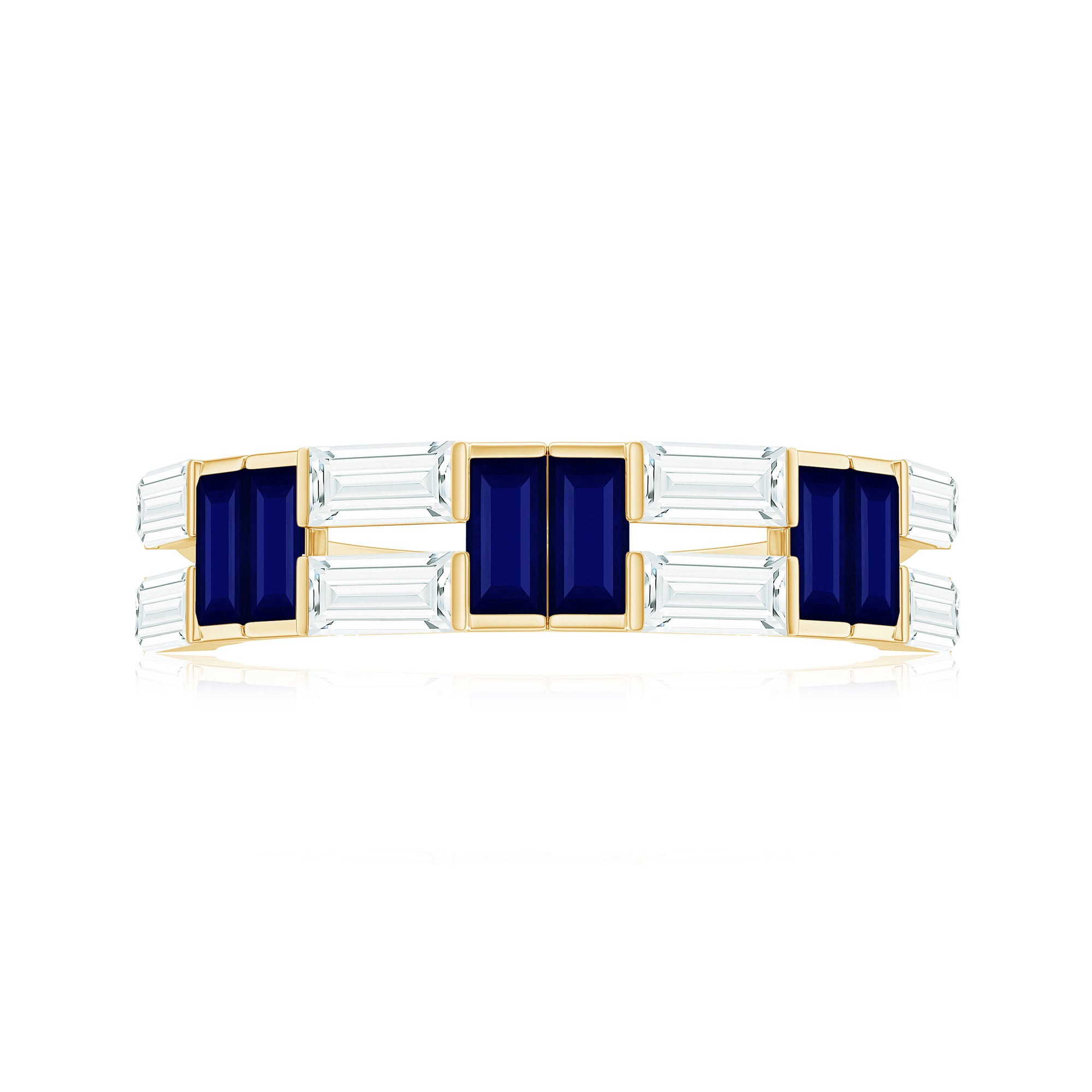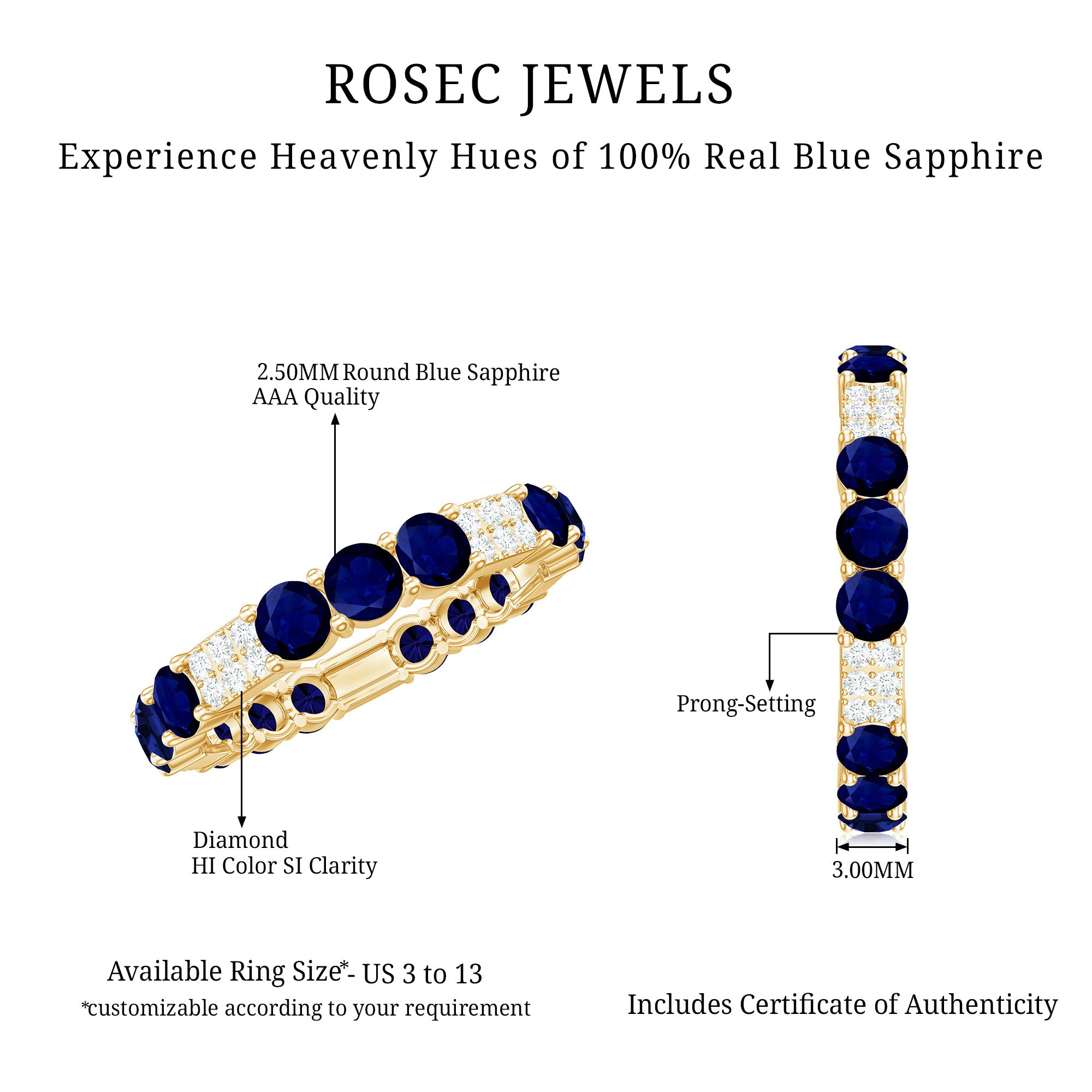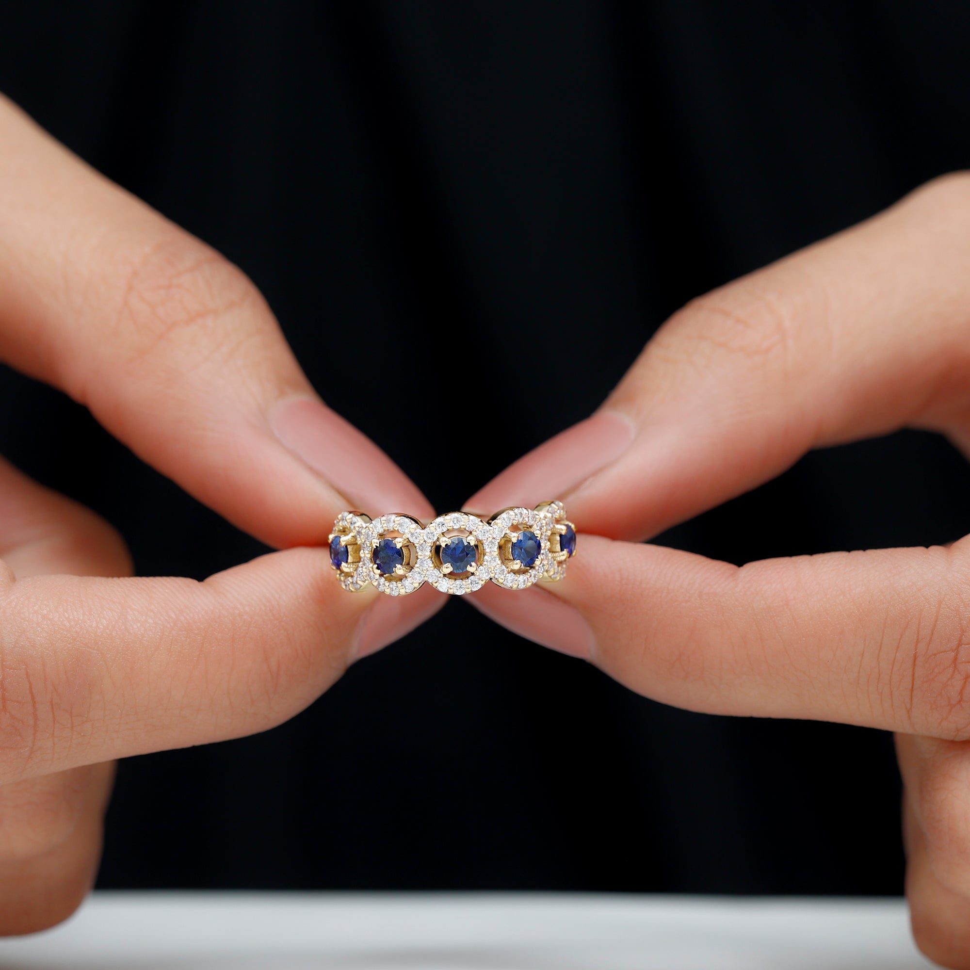 Full Eternity Wedding Bands: - Adorn with a continuous loop of blue gemstone, that serves as a gesture of love and long-lasting commitment. The wedding bands are graced by the mesmerizing shade of blue sapphire which is set all around the band. Our full eternity bands not only hold essential significance but also carry deep emotions that make them the perfect choice for a wedding ring.
