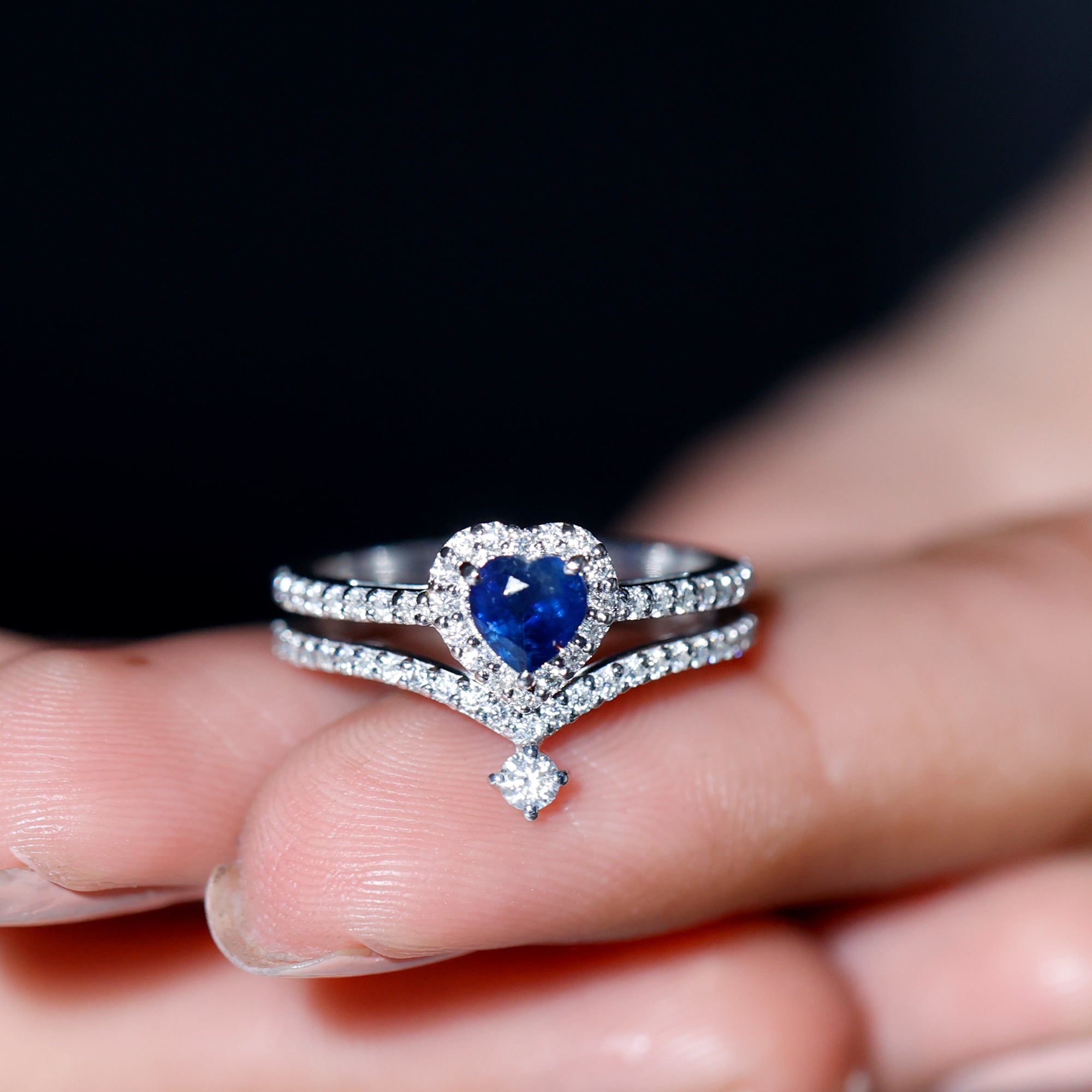 Wedding Ring Set: - Usually this includes an engagement ring and matching wedding band, both embellished with vibrant blue sapphires. the engagement ring features a blue sapphire as a focal point, some rings are flanked by shimmery diamonds or small sapphires, representing love, purity, and commitment.