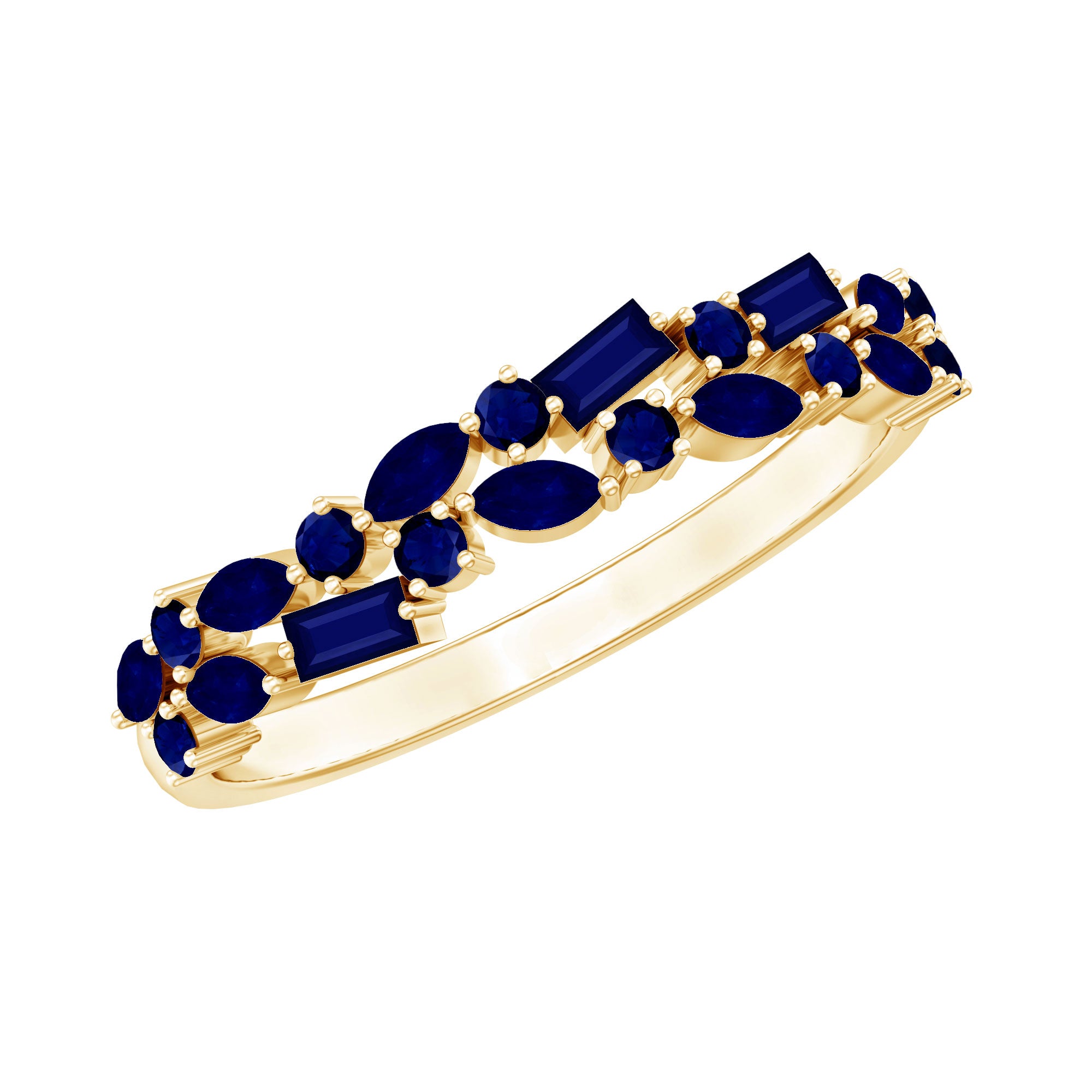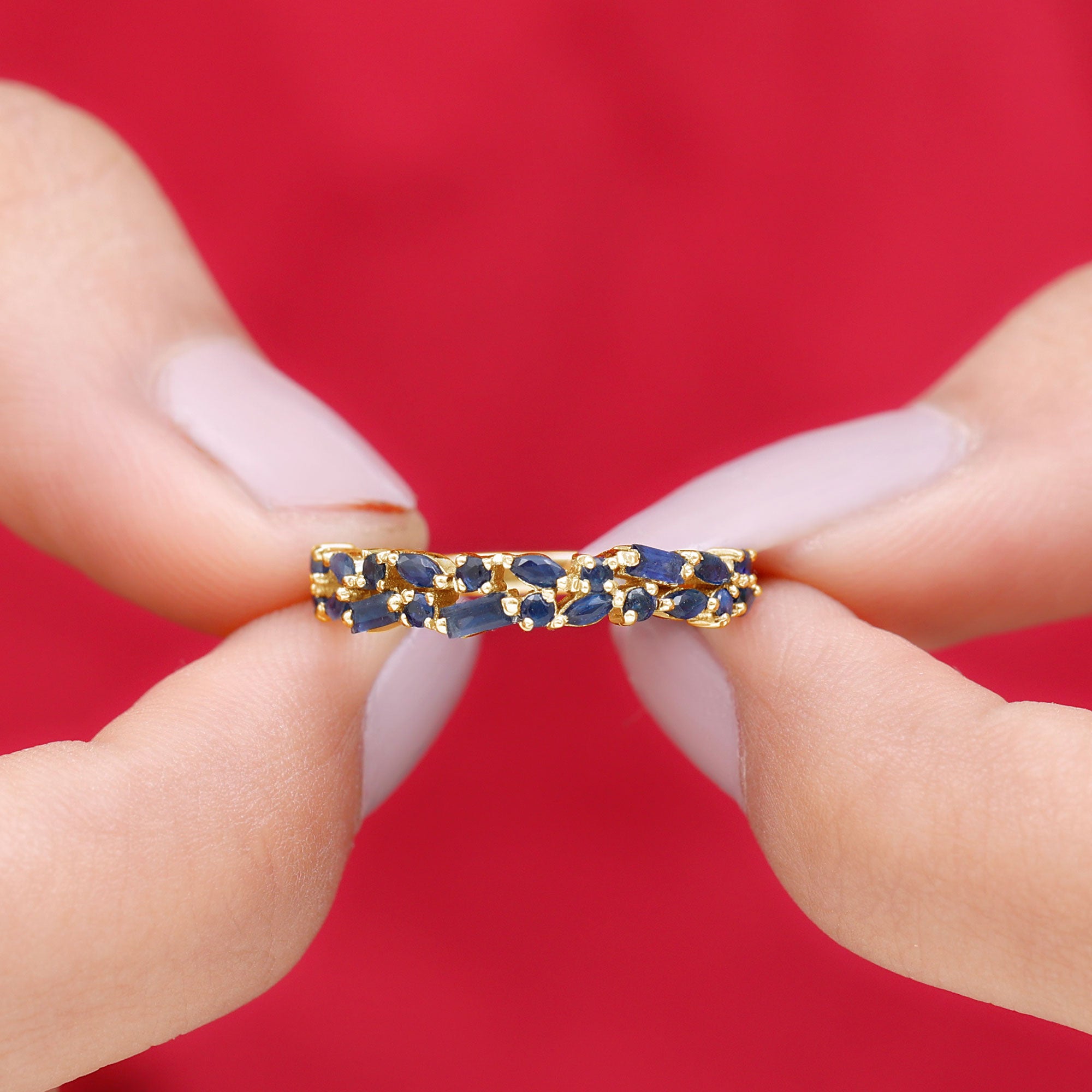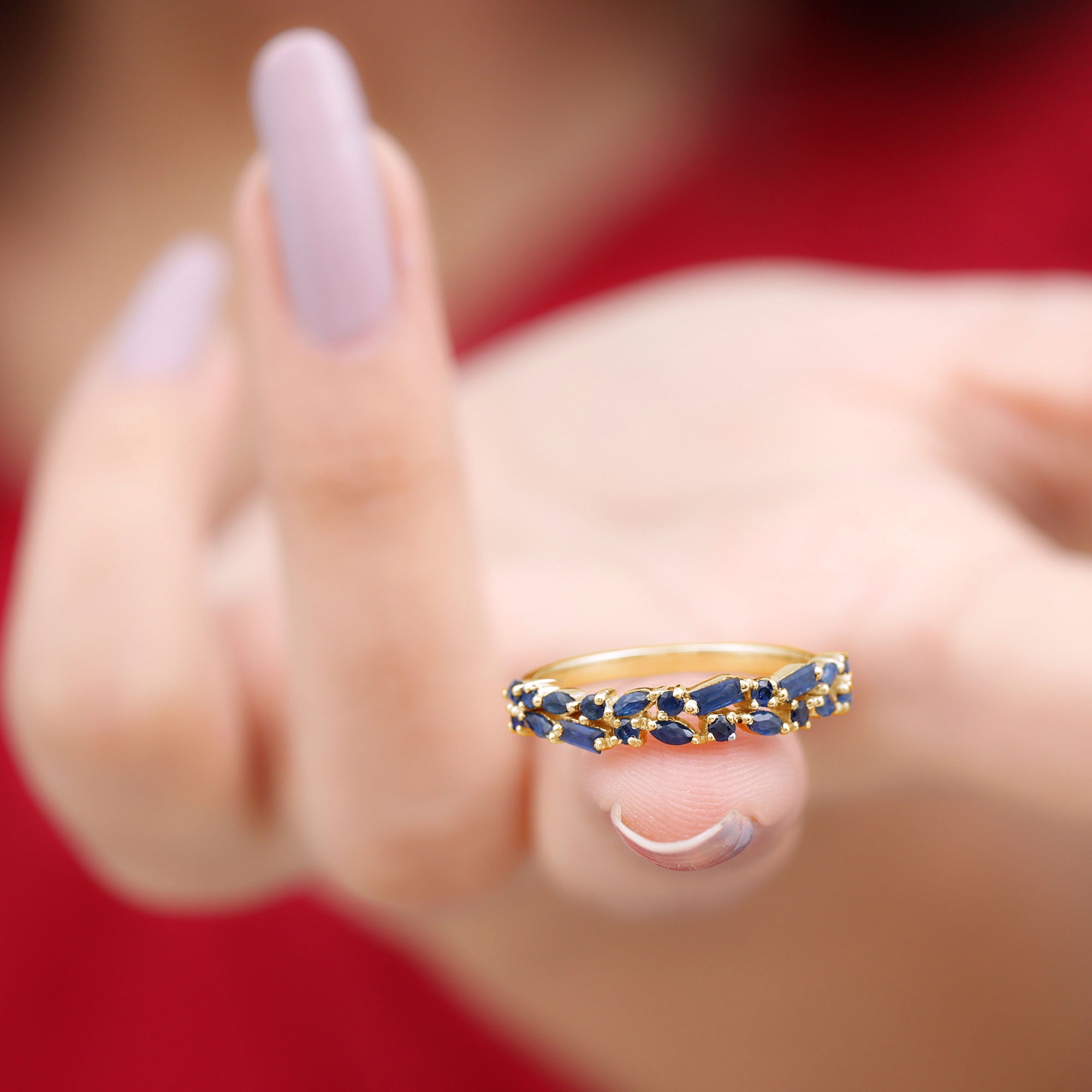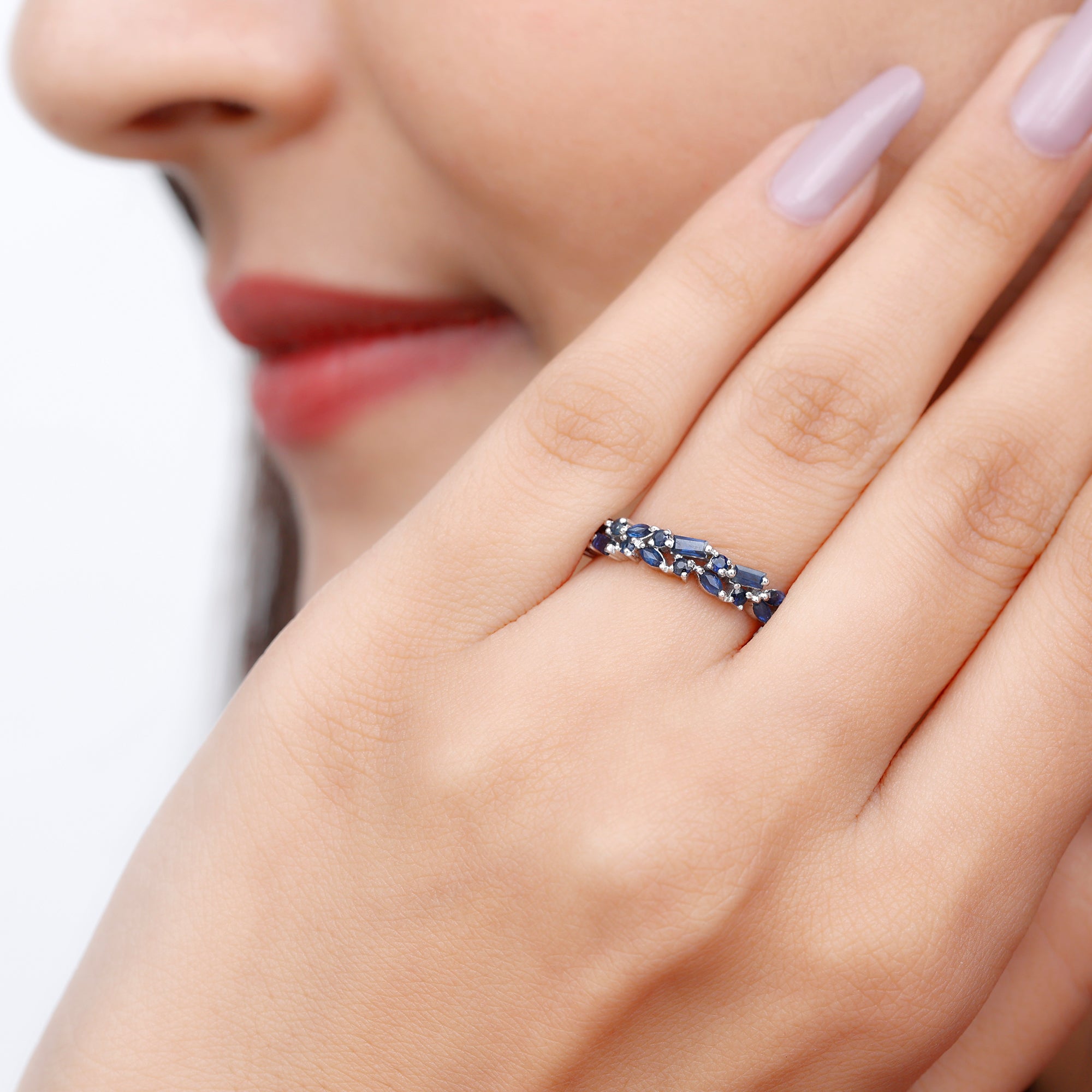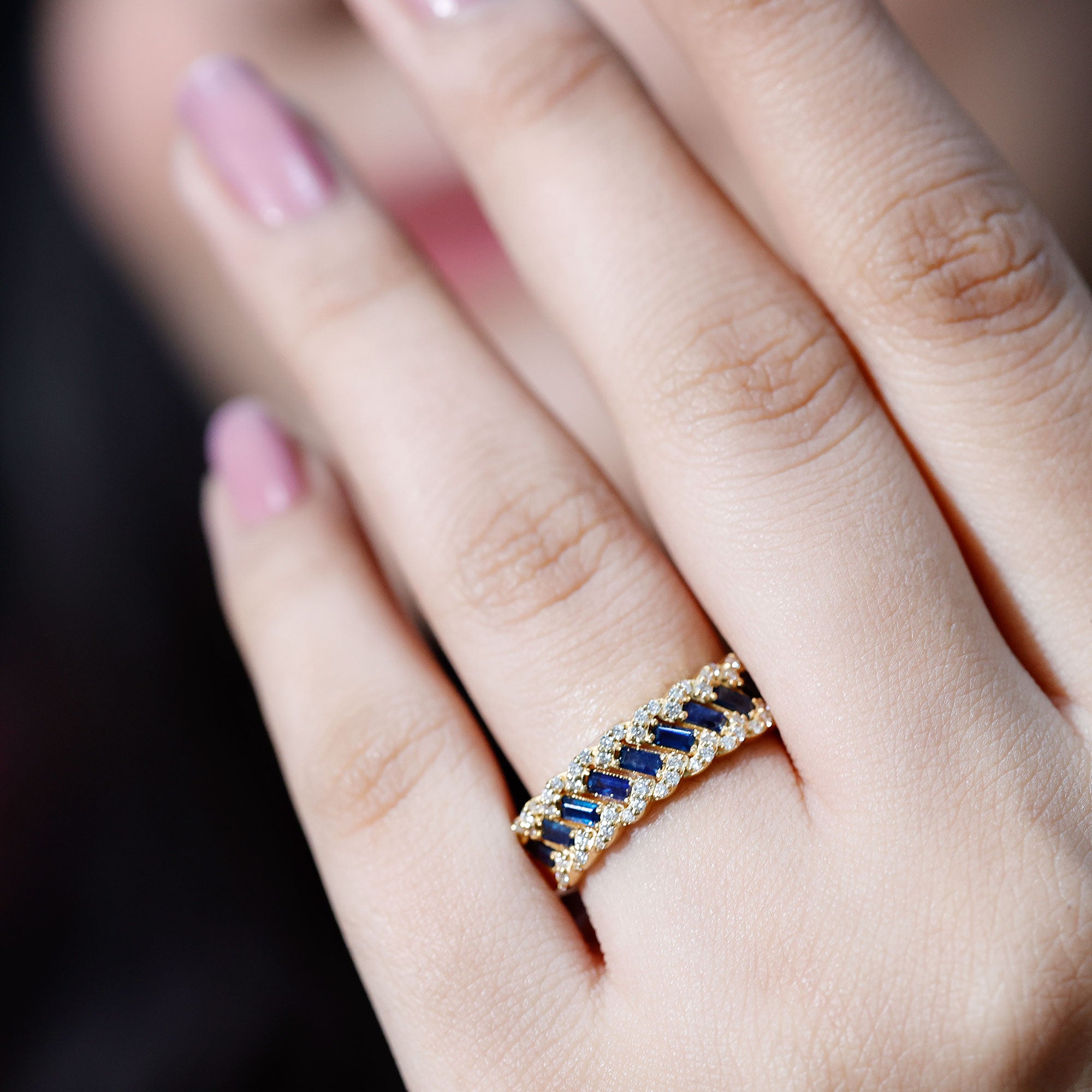 Our exquisite collection of blue sapphire wedding bands includes a wide range of designs. These jewelry pieces are unique and classy, like you!. Each gemstone possesses dazzling tones, symbolism, and qualities. Natural blue sapphires are one of the sentimental choices for wedding ring for women.