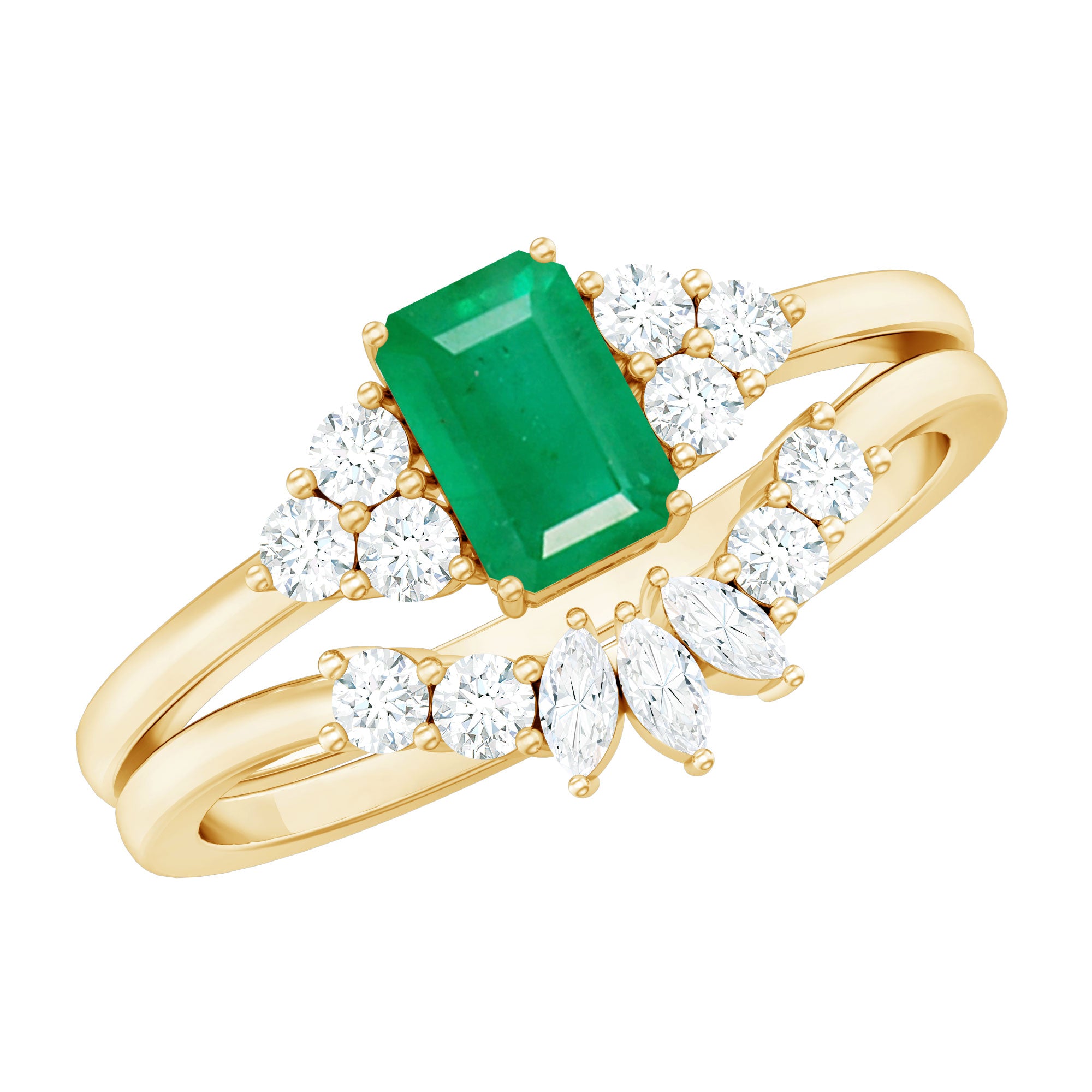 Bridal sets are practical and convenient since they eliminate the need to look for a separate wedding band. Couples can save time and guarantee a unified and complimentary design by buying a pre-matched set.