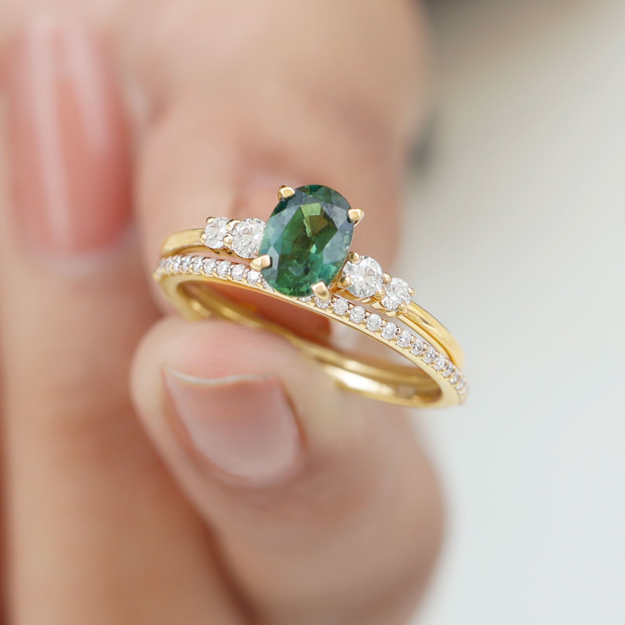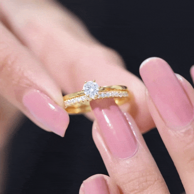 Bridal sets come in various designs, from ornate filigree to contemporary minimalist forms, to fit every couple's preferences and personalities. The identical bands give the finger a seamless appearance, highlighting the unity of the couple's commitment.