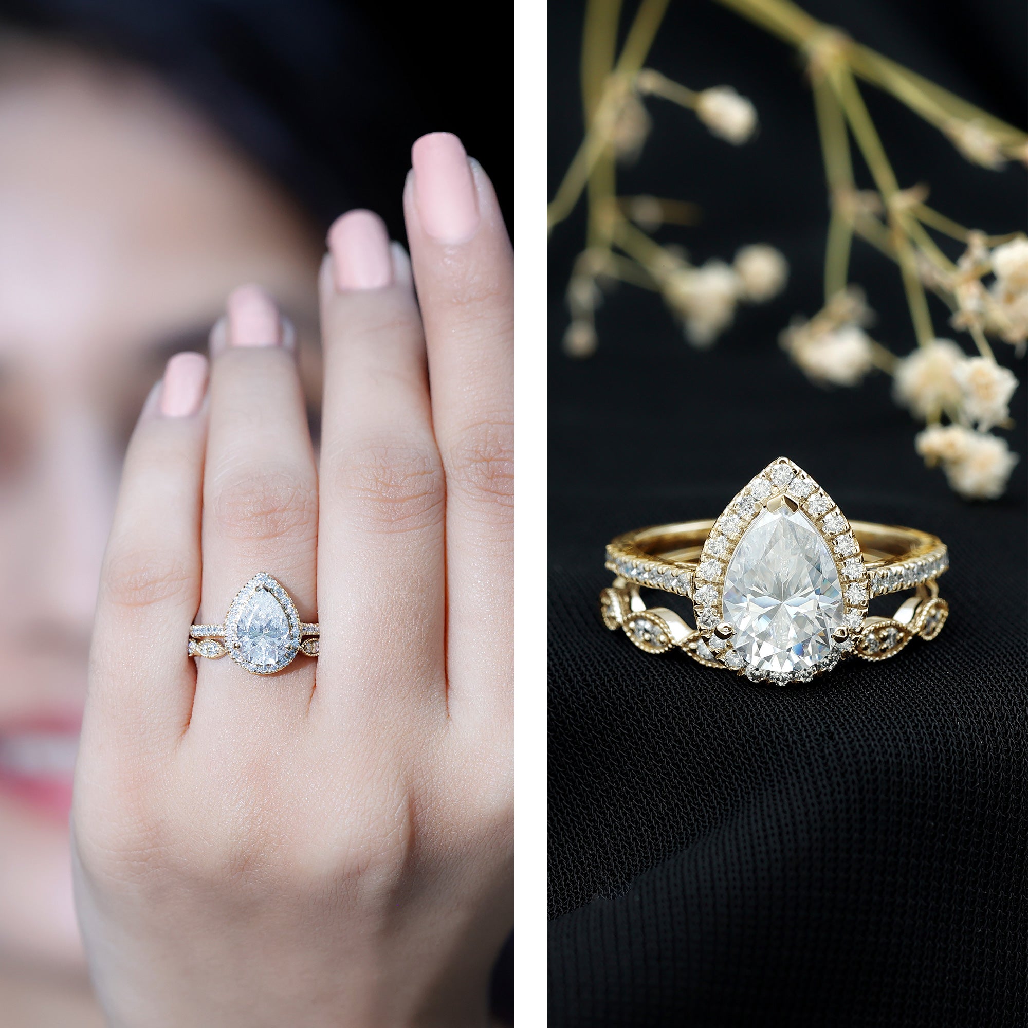 It is a classy and unusual option that offers a unique and feminine appearance. Because pear-shaped jewels may be positioned horizontally or vertically in a ring, they are renowned for their adaptability. The pear's extended shape can also give the appearance of longer, slimmer fingers.
