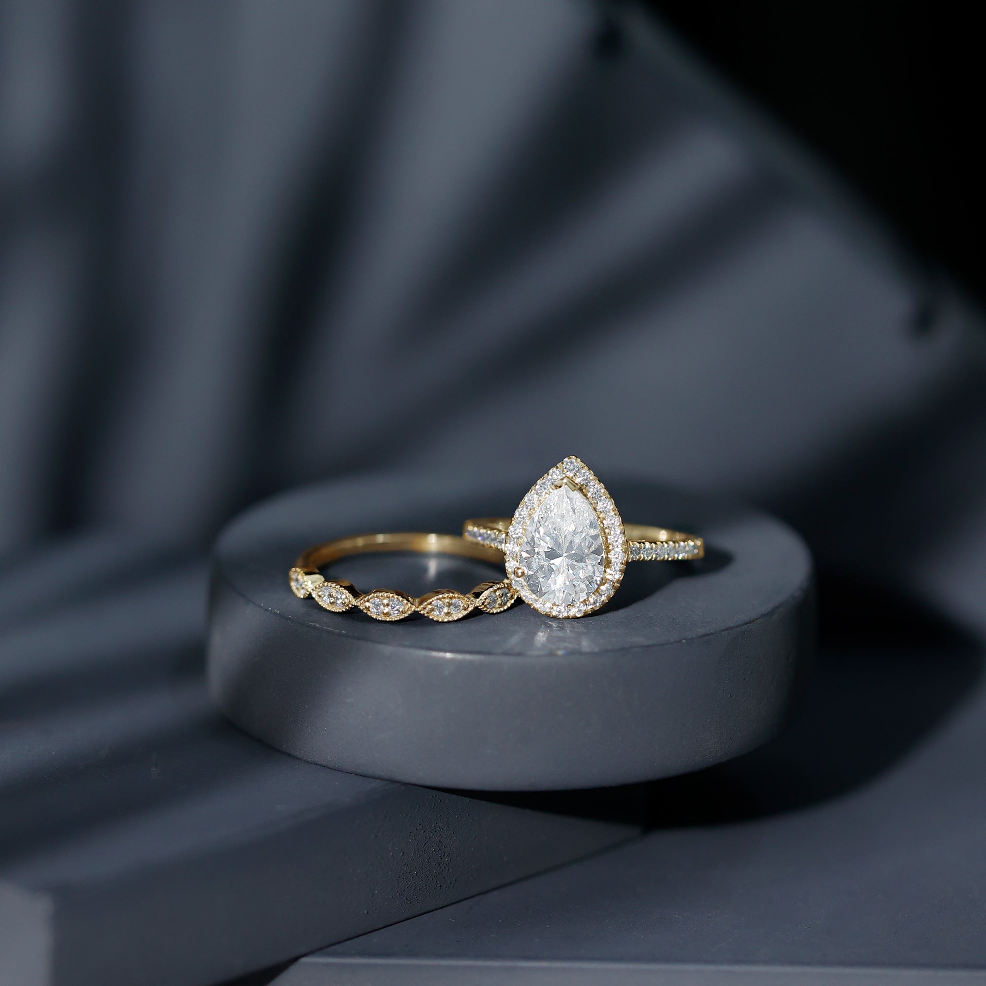 Many alternatives are available when selecting the ideal gemstone for an engagement ring in a bridal set. Four shapes—the round, pear, oval, and marquise—stand out among the many others because of their distinctive beauty and adaptability. Let's examine these shapes in more detail and see why wedding sets and engagement rings frequently feature them.