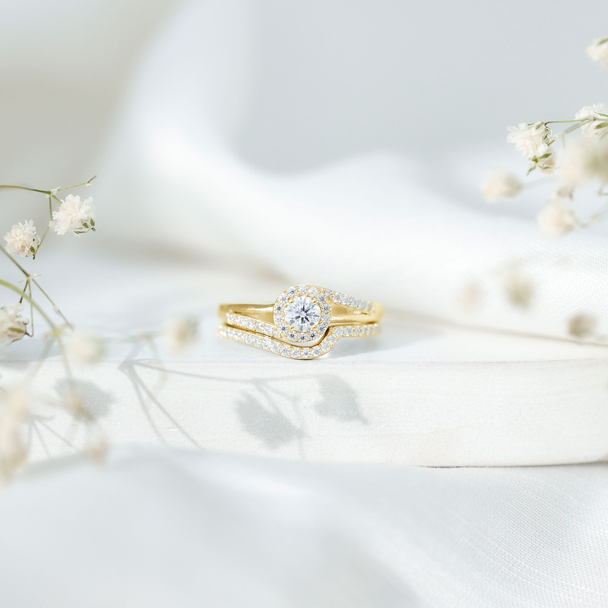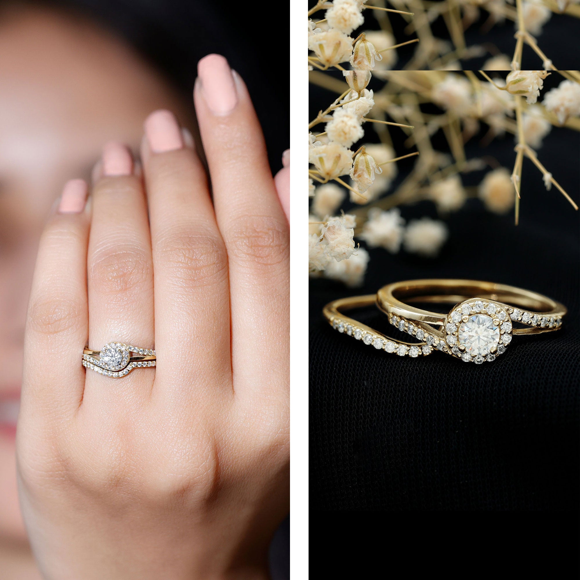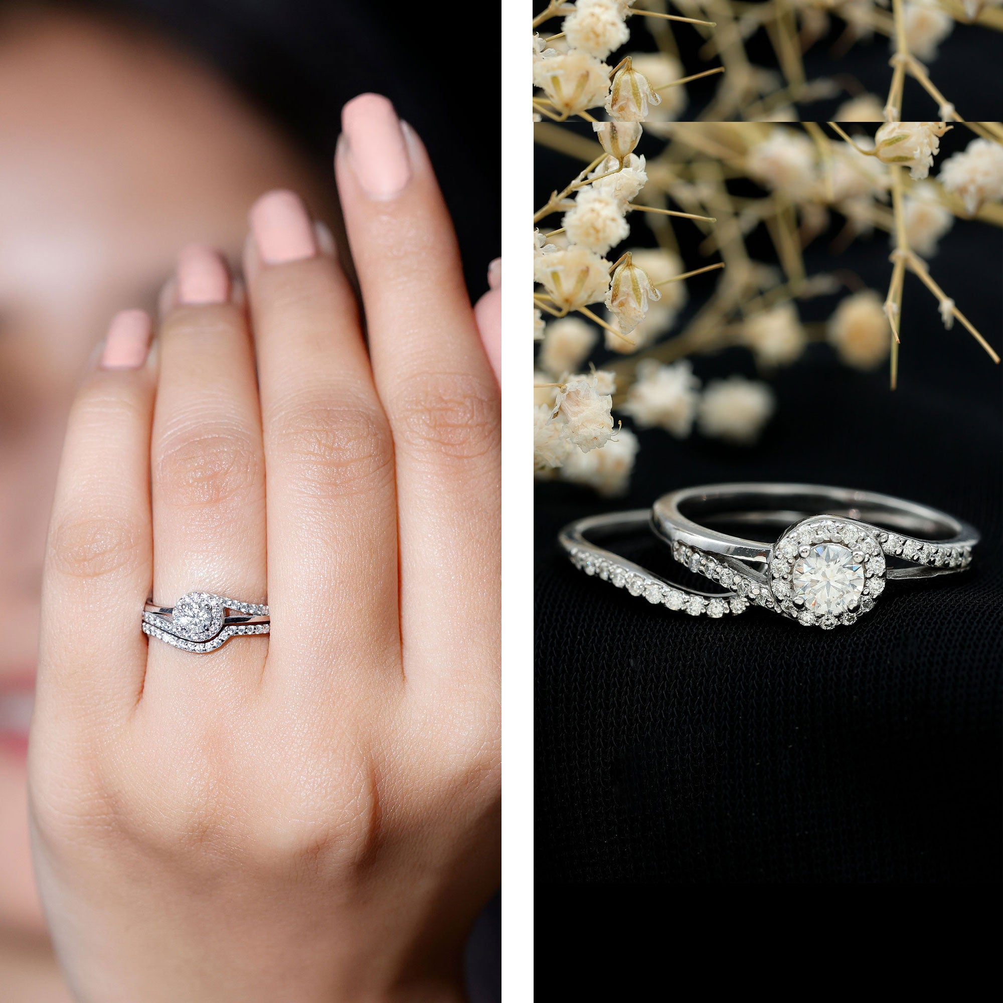 Bridal sets are practical and convenient since they eliminate the need to look for a separate wedding band. Couples can save time and guarantee a unified and complimentary design by buying a pre-matched set.