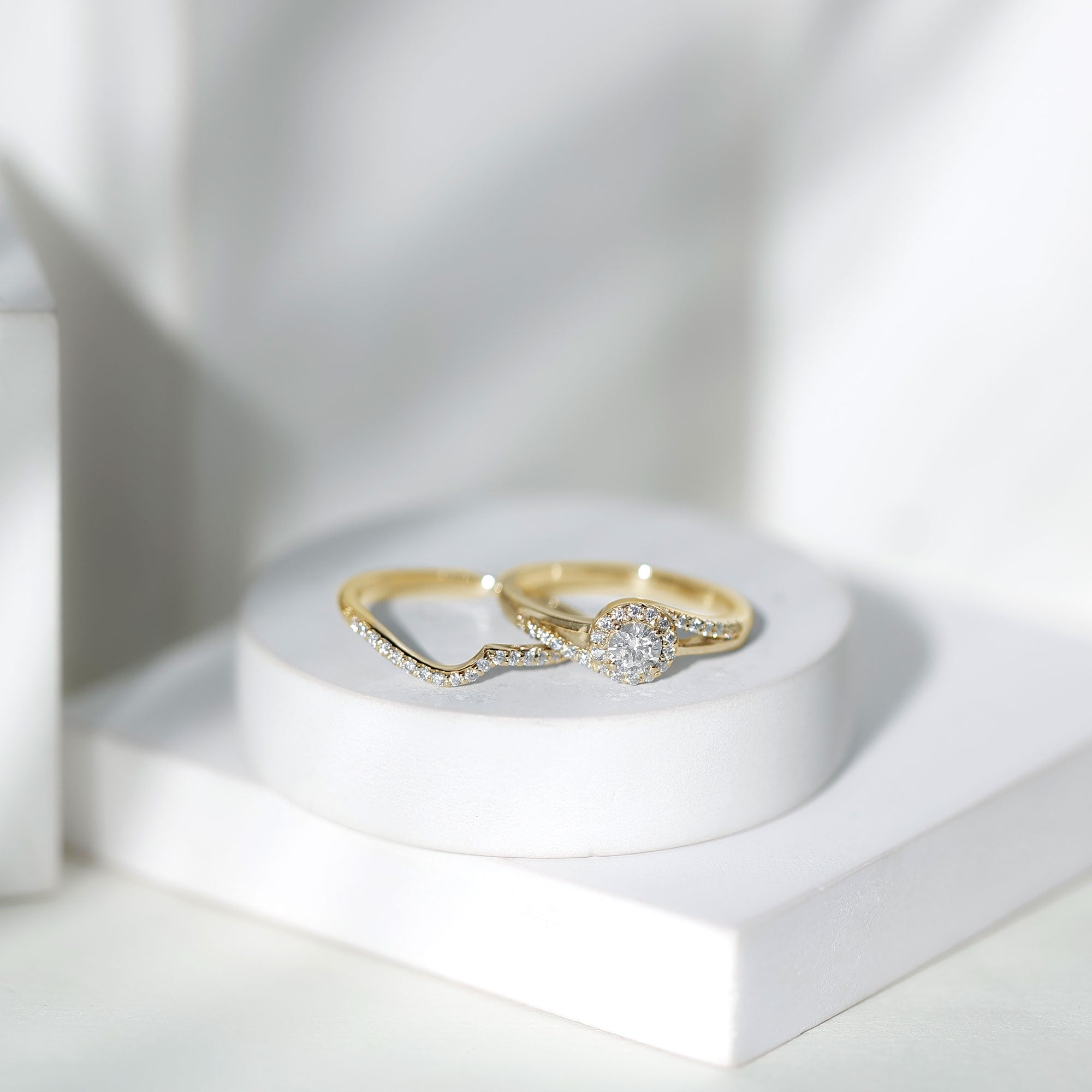 It is an assortment of engagement rings and wedding bands that are bought together. It contains matching wedding and engagement ring sets.