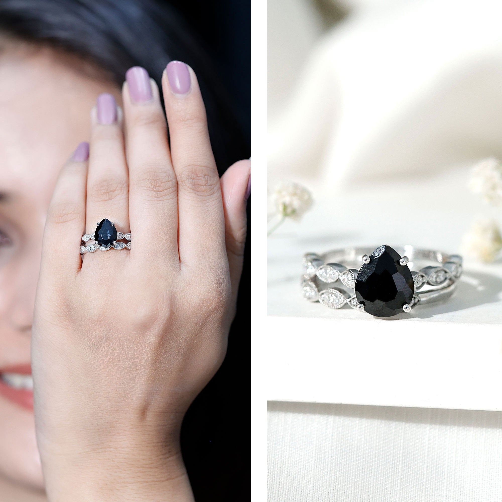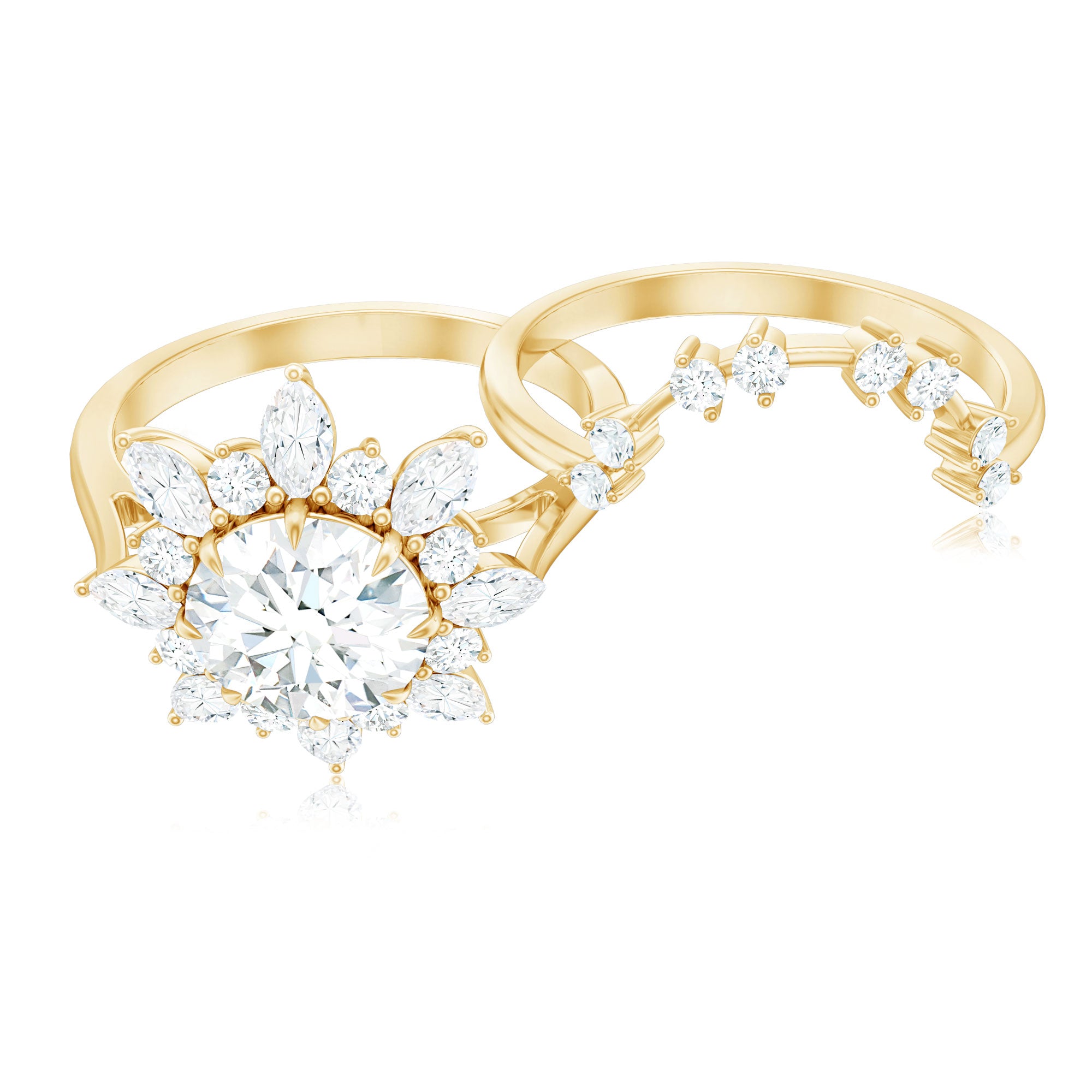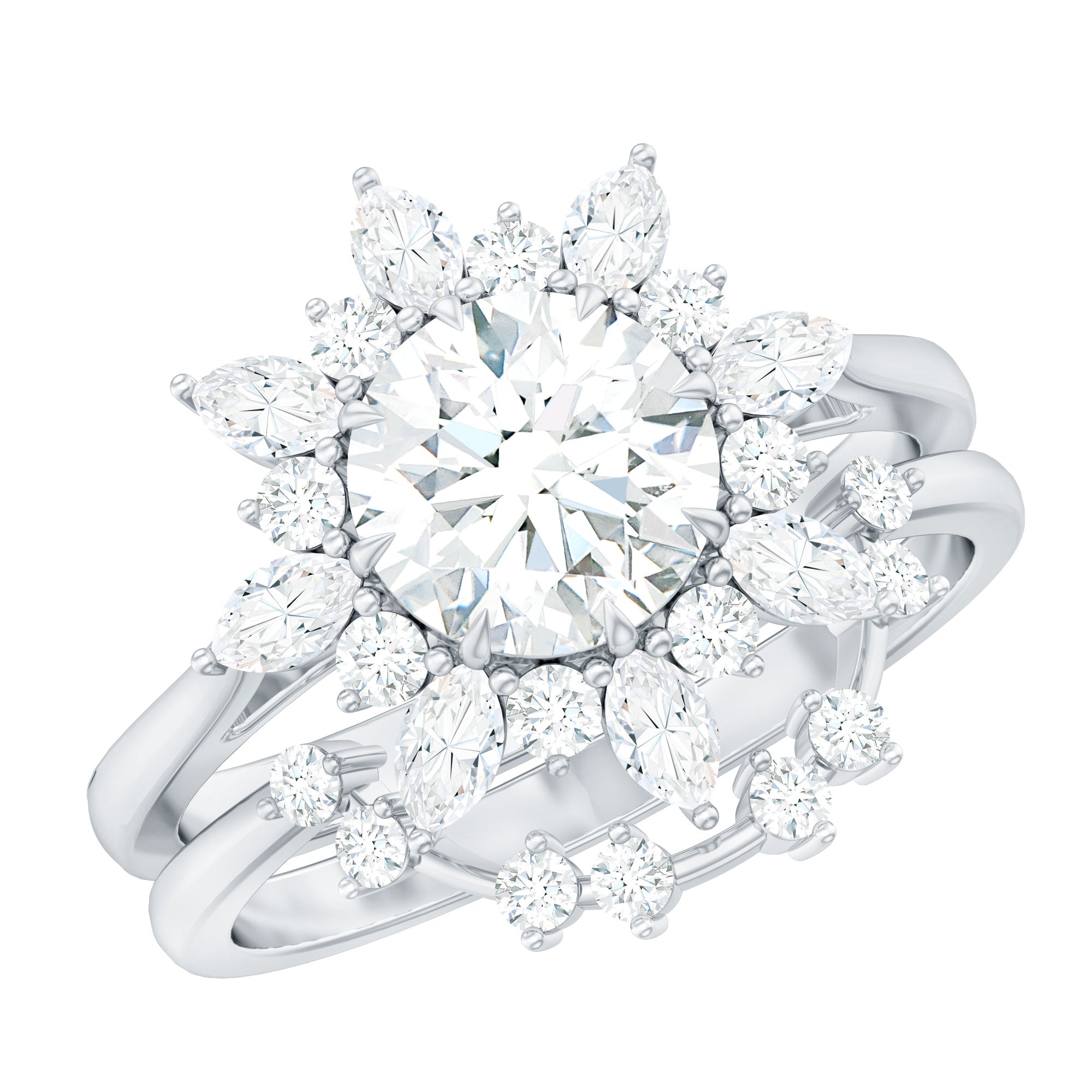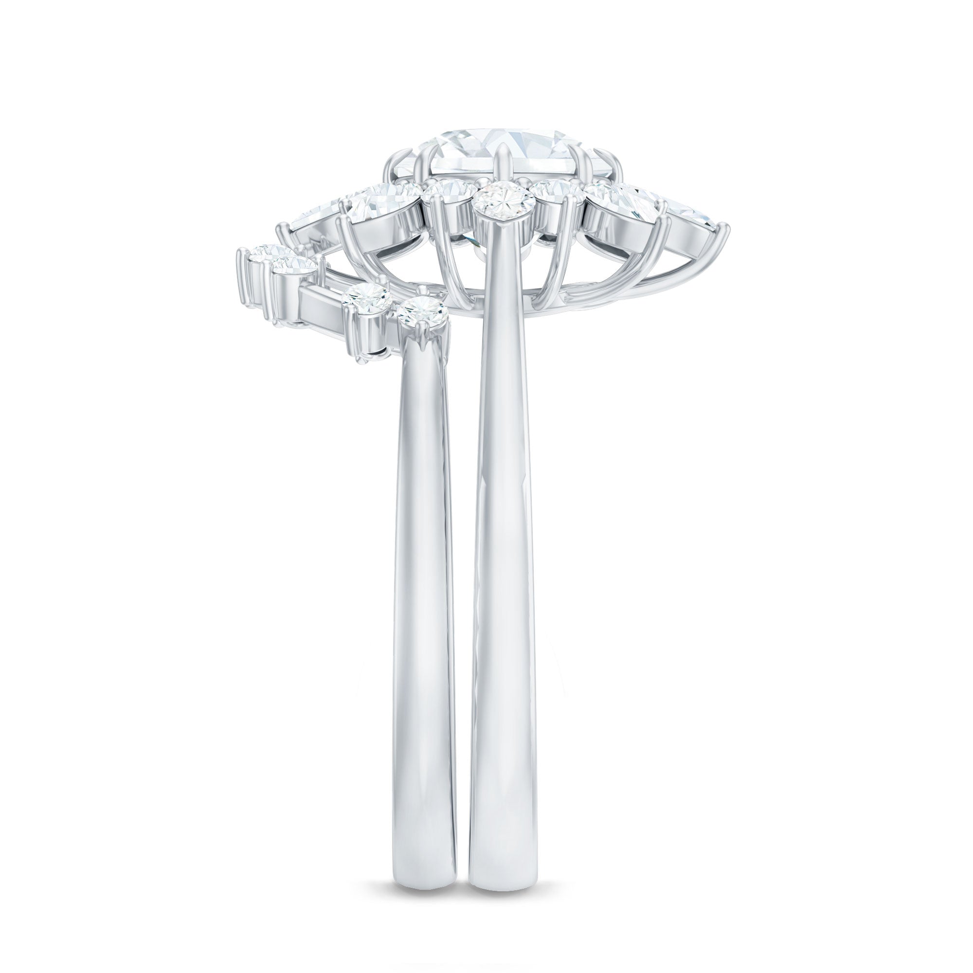 Bridal sets are practical and convenient since they eliminate the need to look for a separate wedding band. Couples can save time and guarantee a unified and complimentary design by buying a pre-matched set.