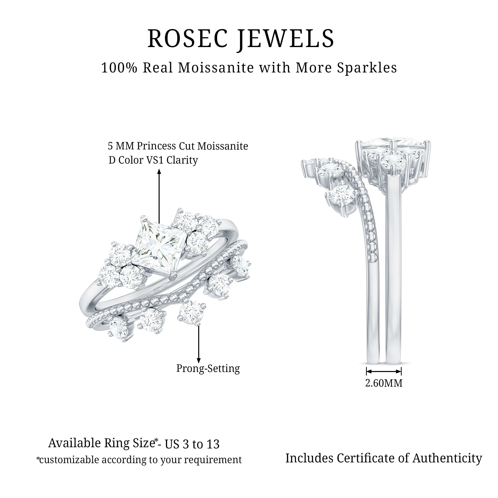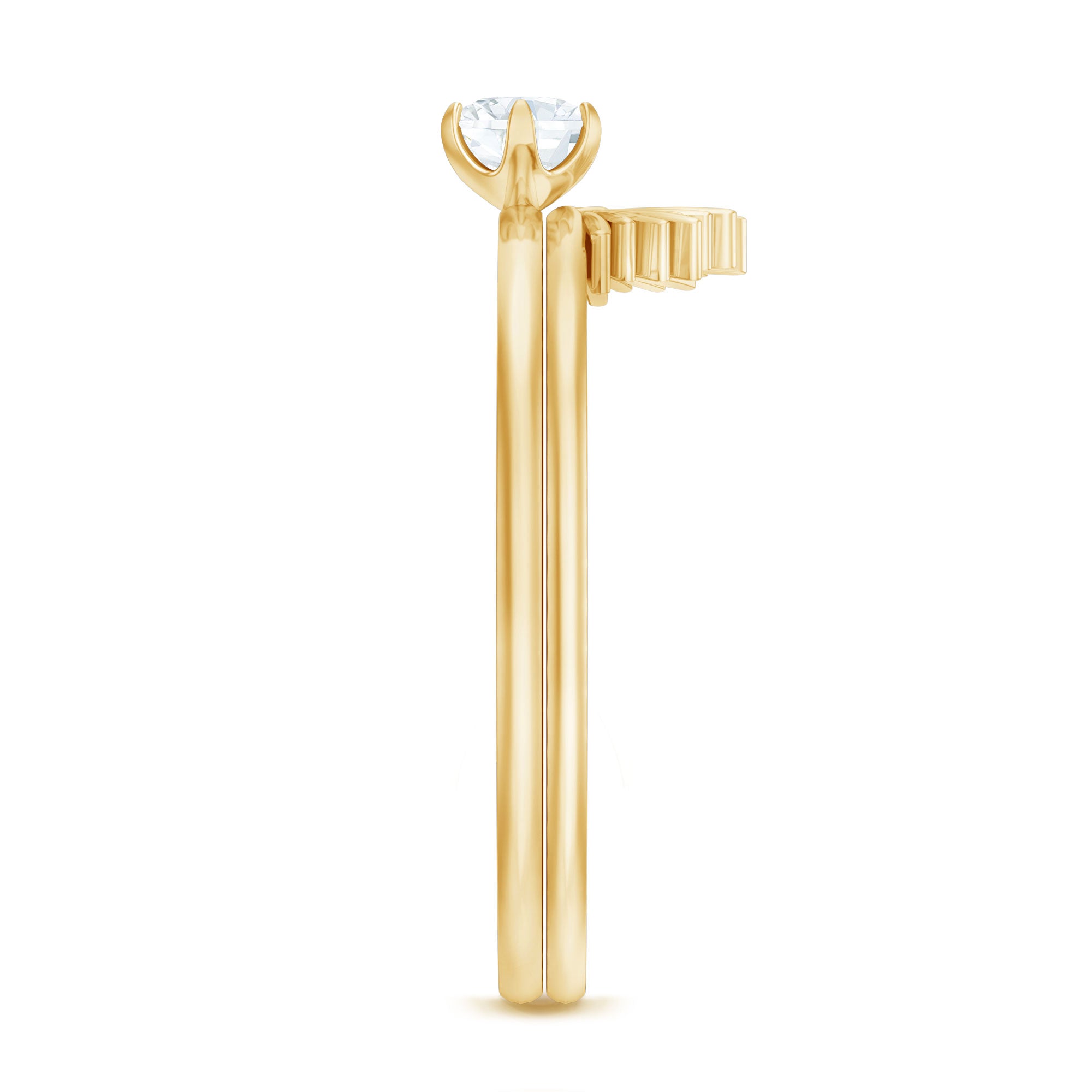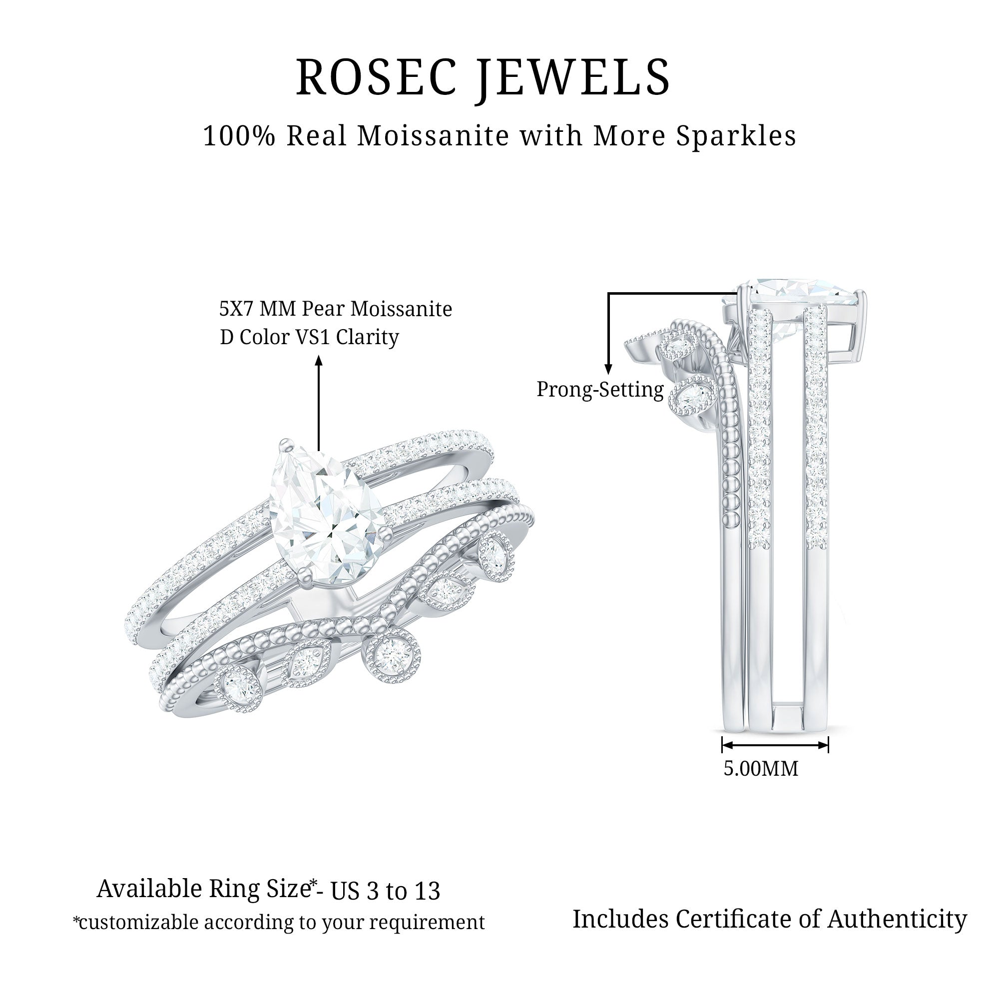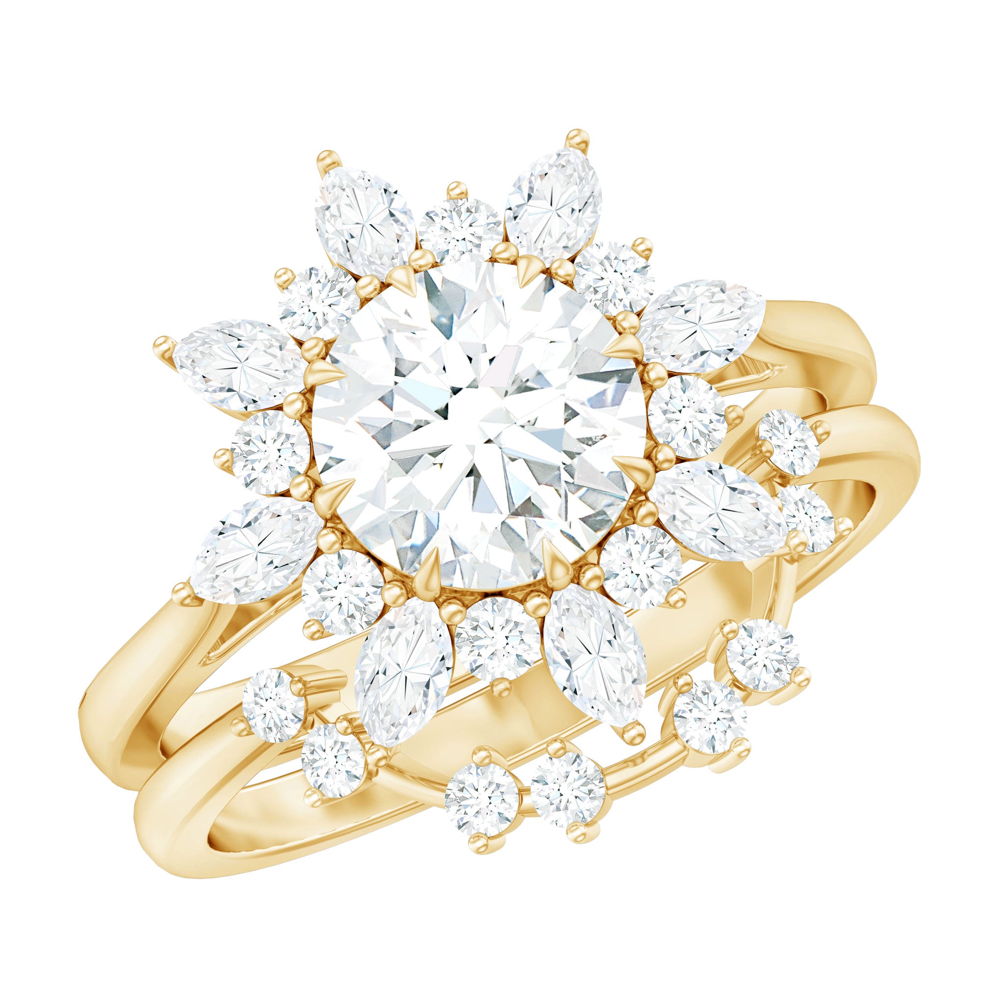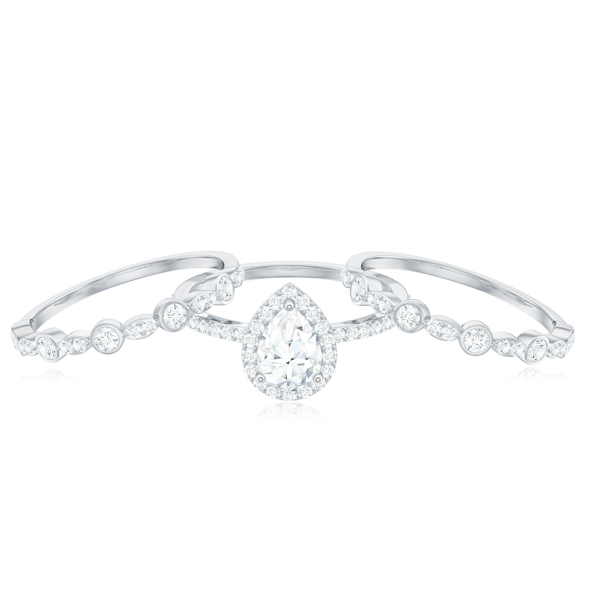 Bridal sets are practical and convenient since they eliminate the need to look for a separate wedding band. Couples can save time and guarantee a unified and complimentary design by buying a pre-matched set.