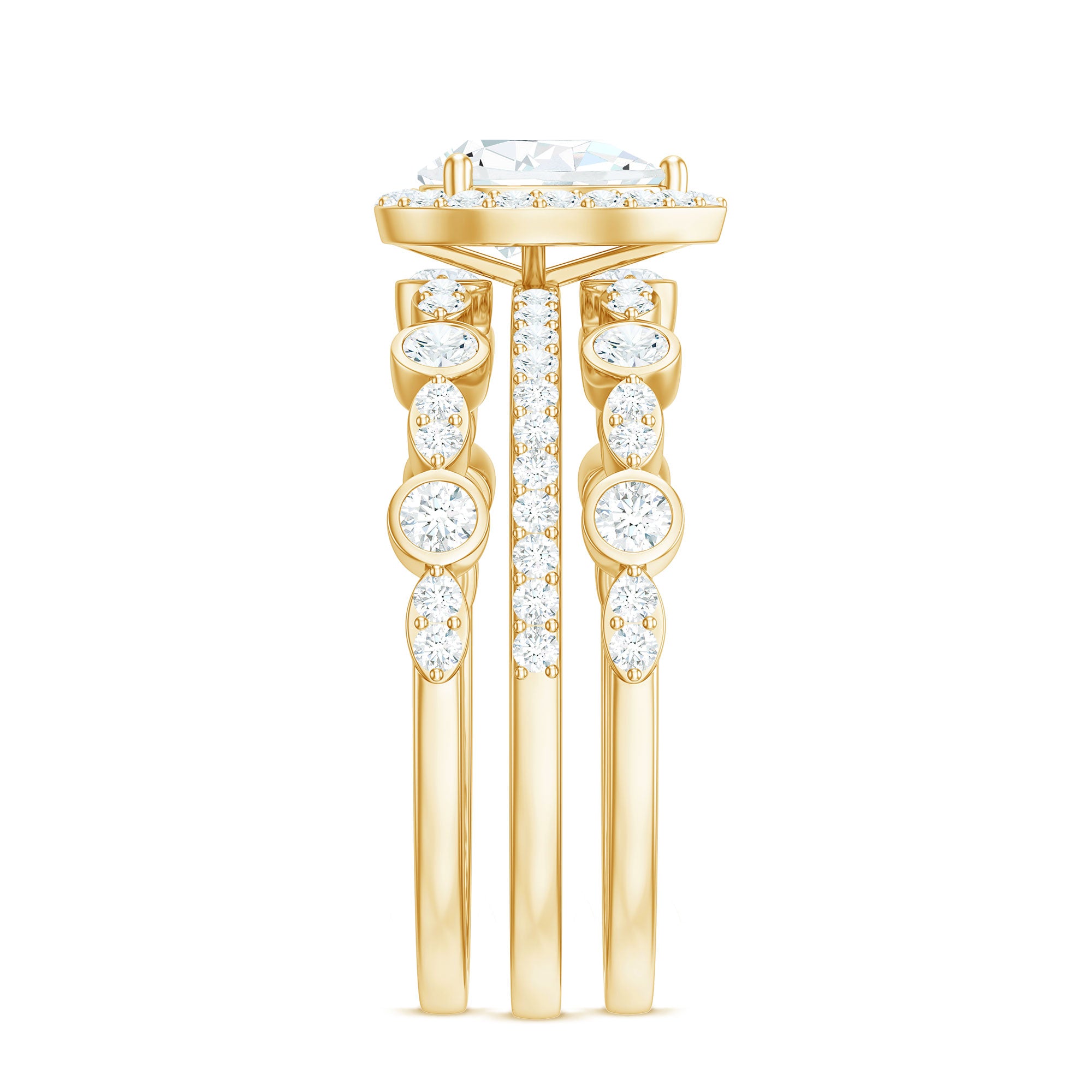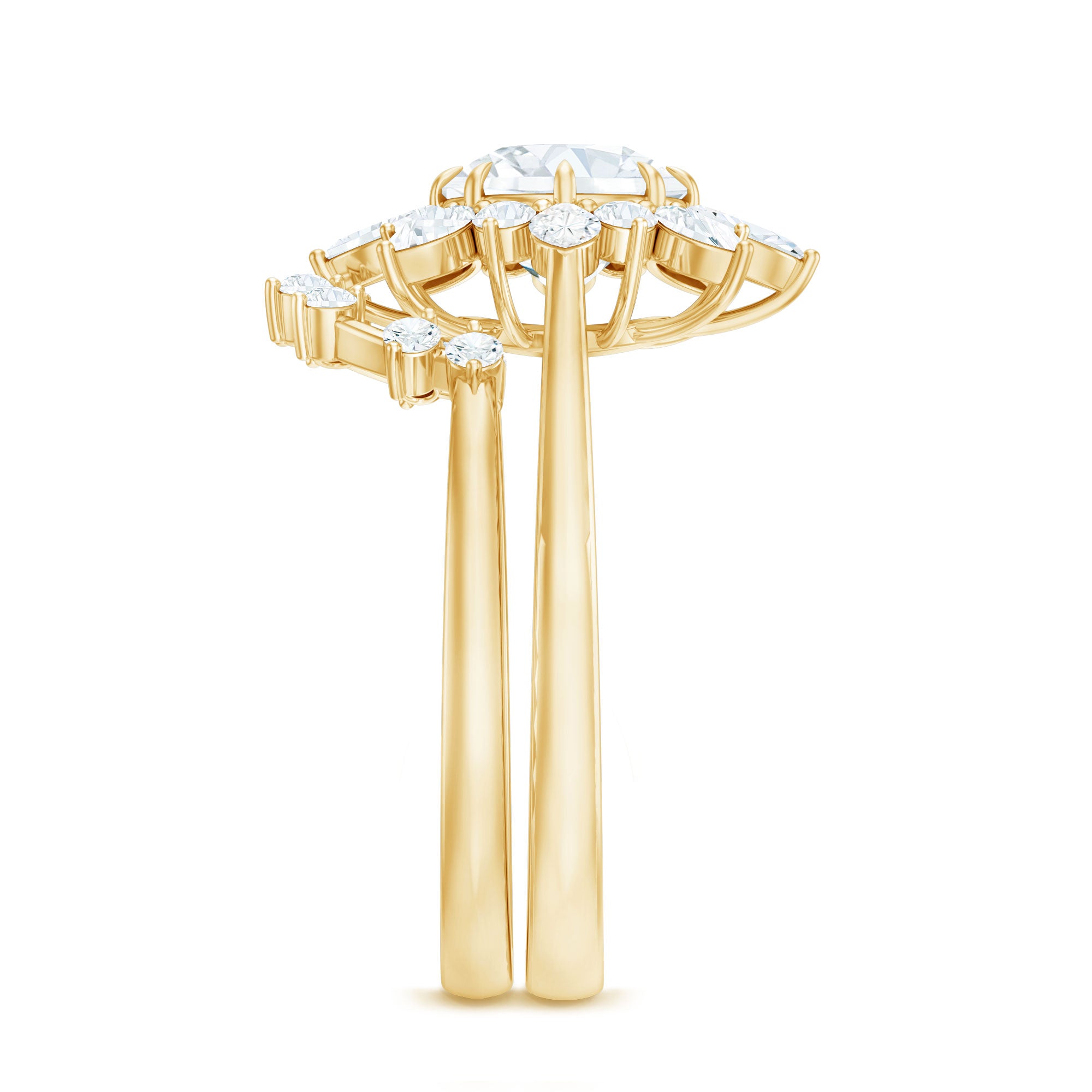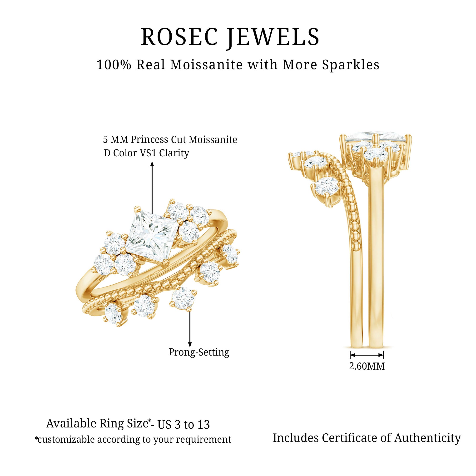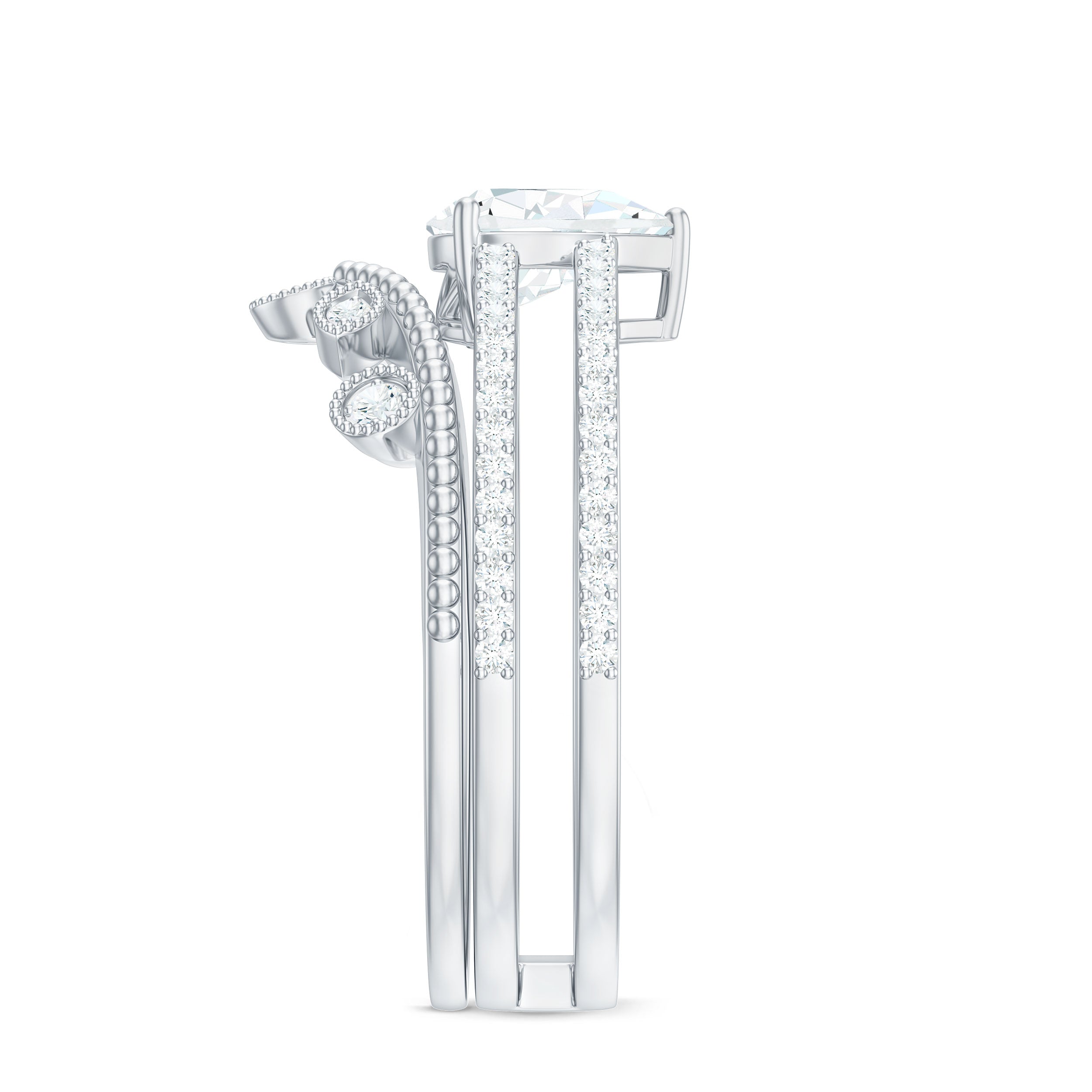 Bridal sets are practical and convenient since they eliminate the need to look for a separate wedding band. Couples can save time and guarantee a unified and complimentary design by buying a pre-matched set.
