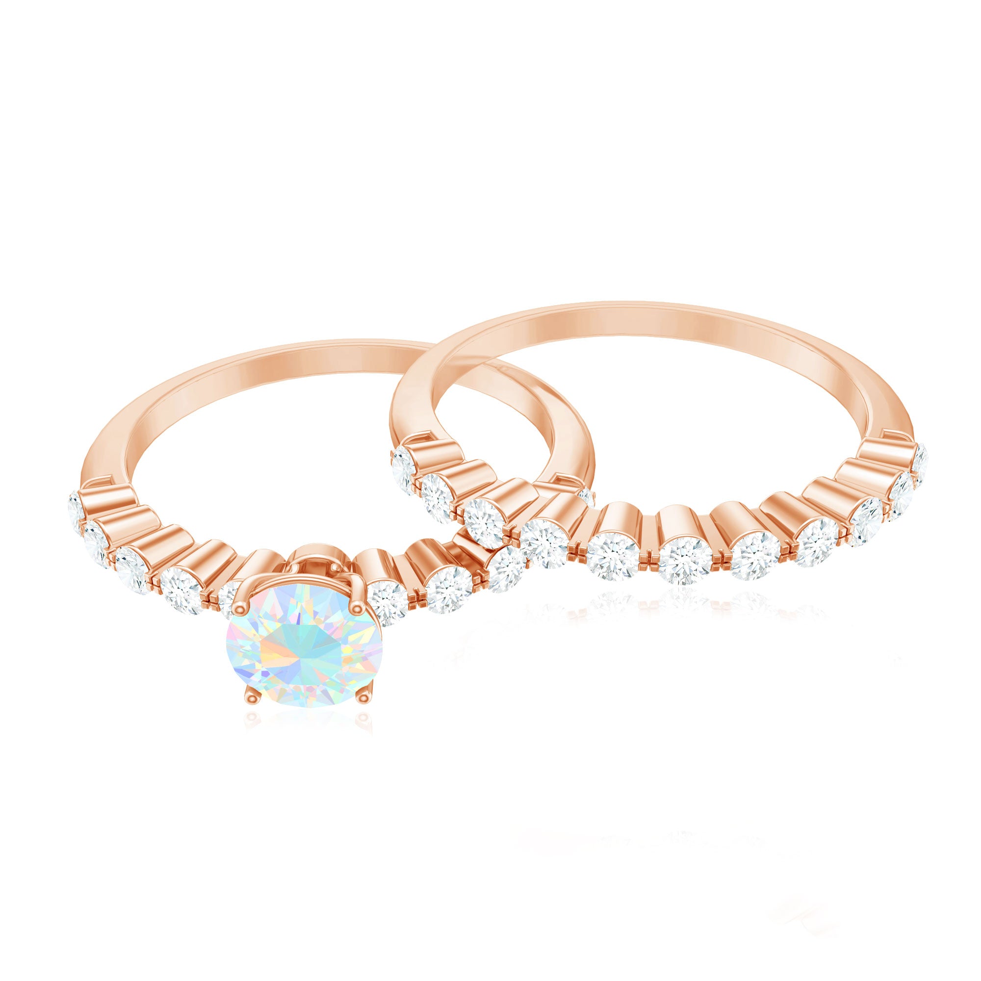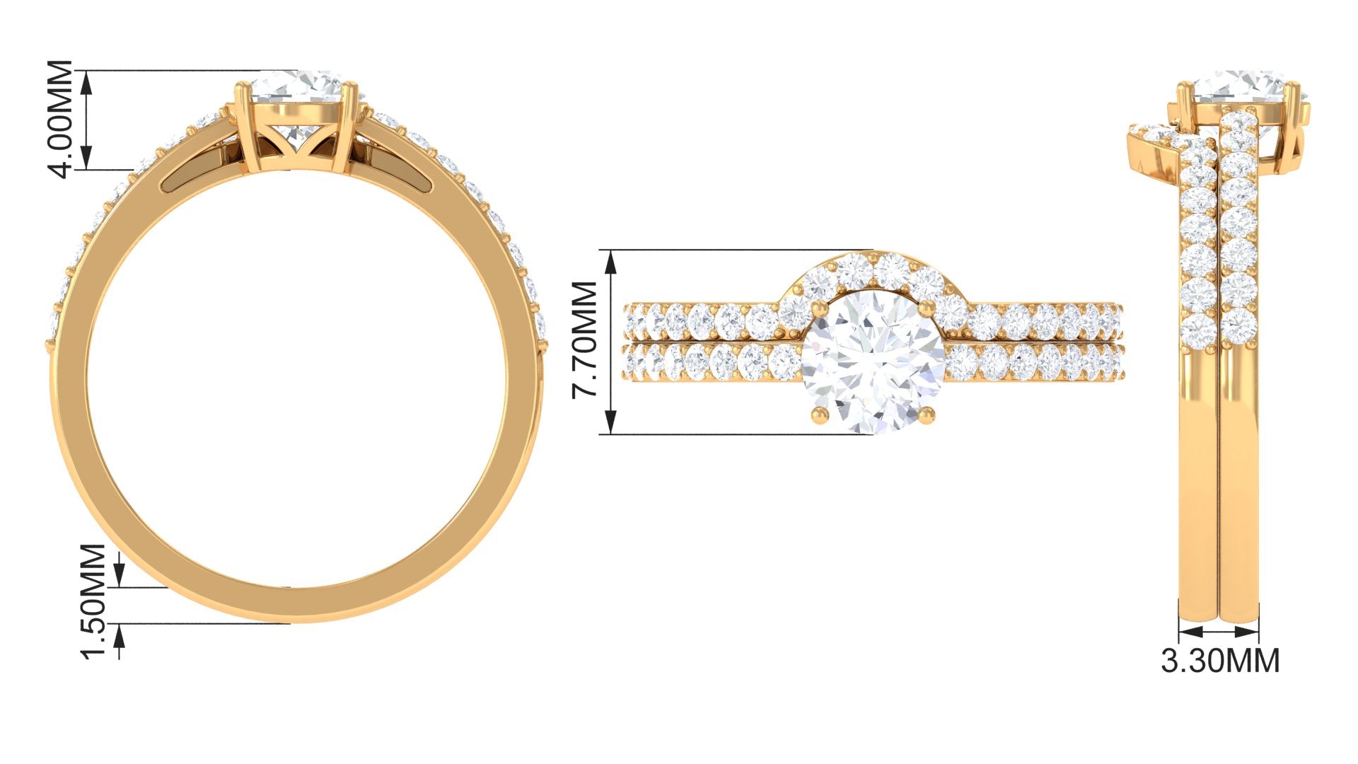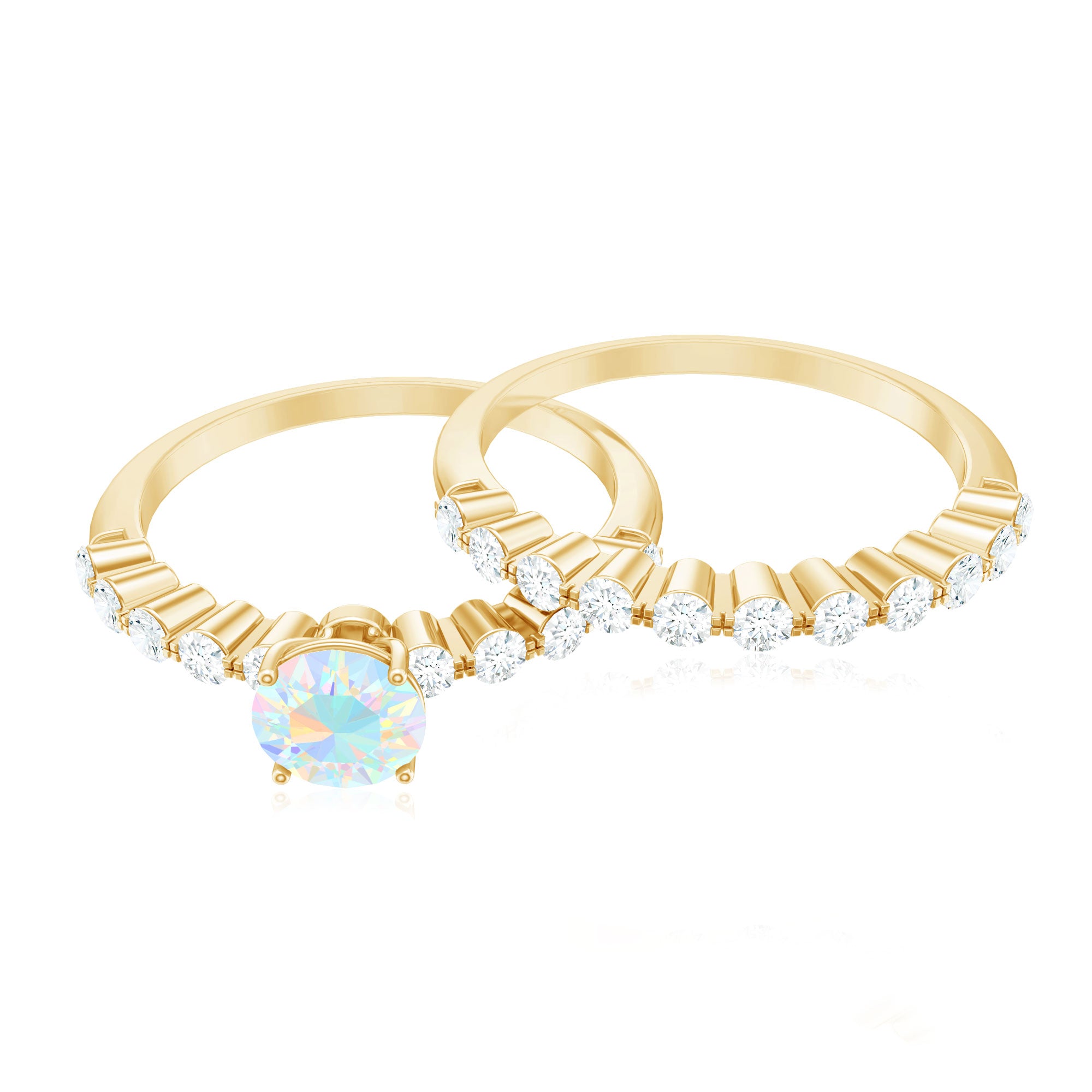 The ability to engrave particular words or dates further gives the set a personalized touch. Thanks to this customization, the bridal set will uniquely reflect the couple's love story.