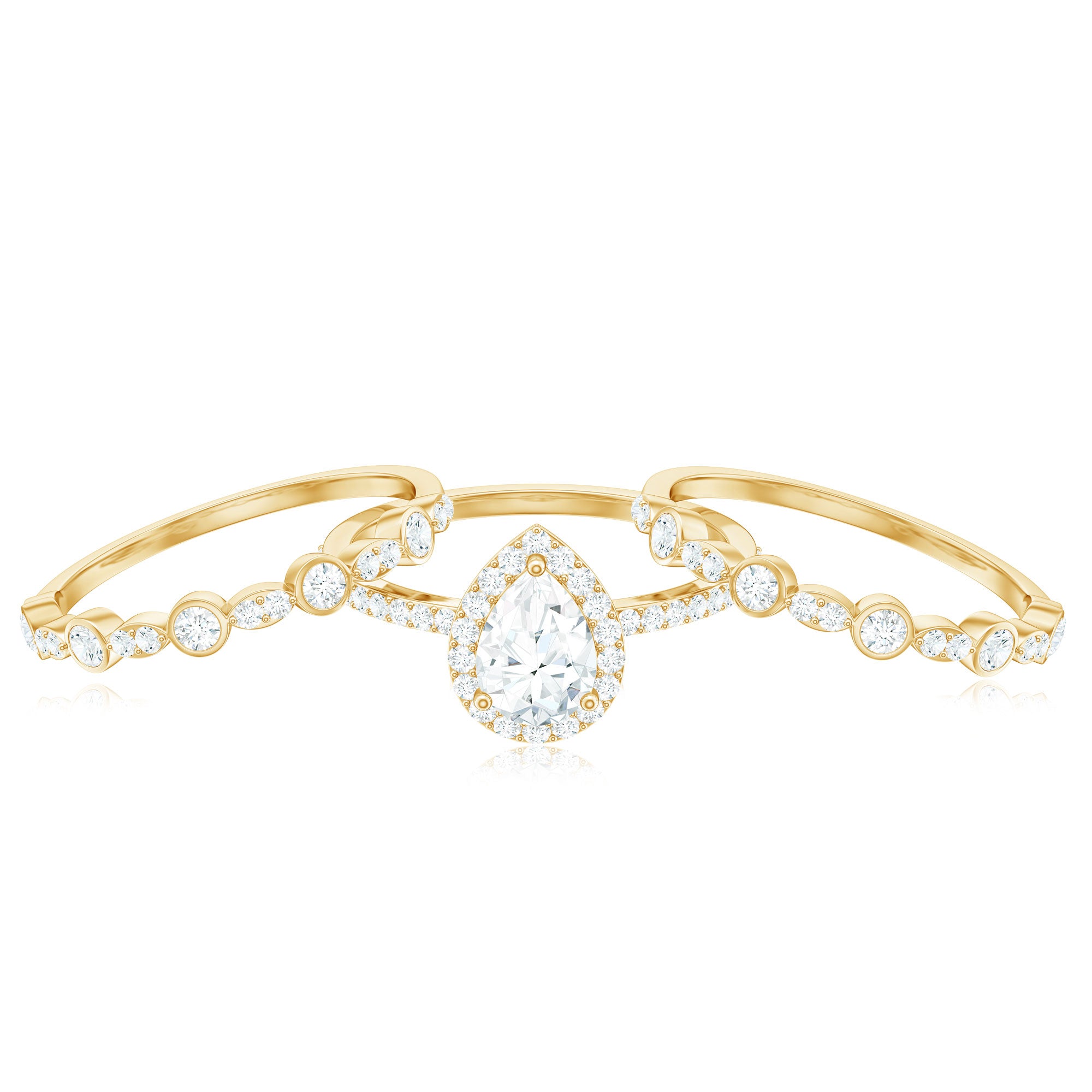 Many alternatives are available when selecting the ideal gemstone for an engagement ring in a bridal set. Four shapes—the round, pear, oval, and marquise—stand out among the many others because of their distinctive beauty and adaptability. Let's examine these shapes in more detail and see why wedding sets and engagement rings frequently feature them.