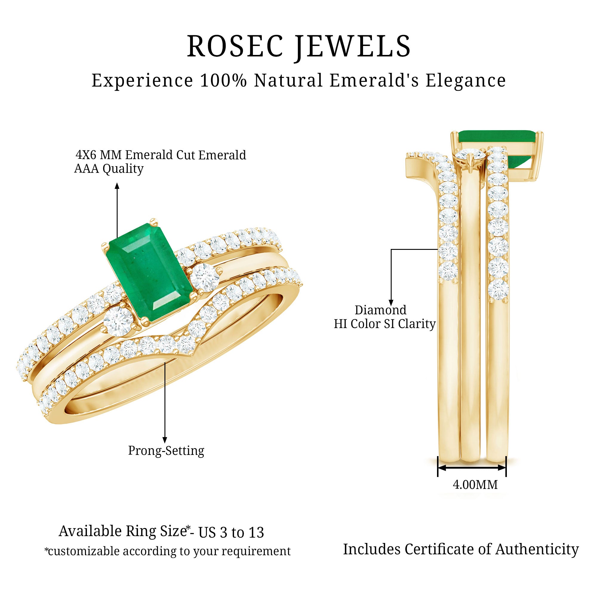 Customizing and personalizing bridal sets and engagement rings are one of their most desirable features. In addition to choosing their favorite gemstones, such as diamonds, or emeralds, couples can choose from a selection of precious metals, including rose gold or white gold for their matching wedding and engagement ring sets.