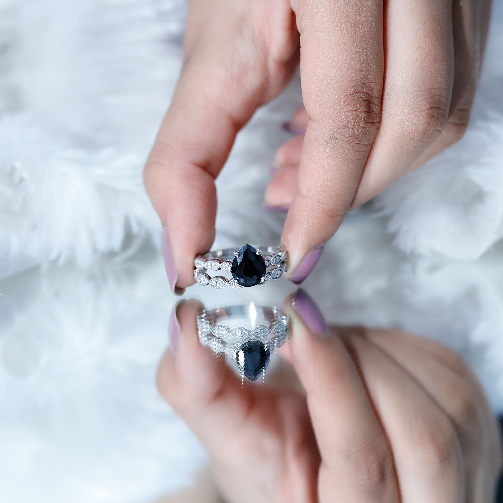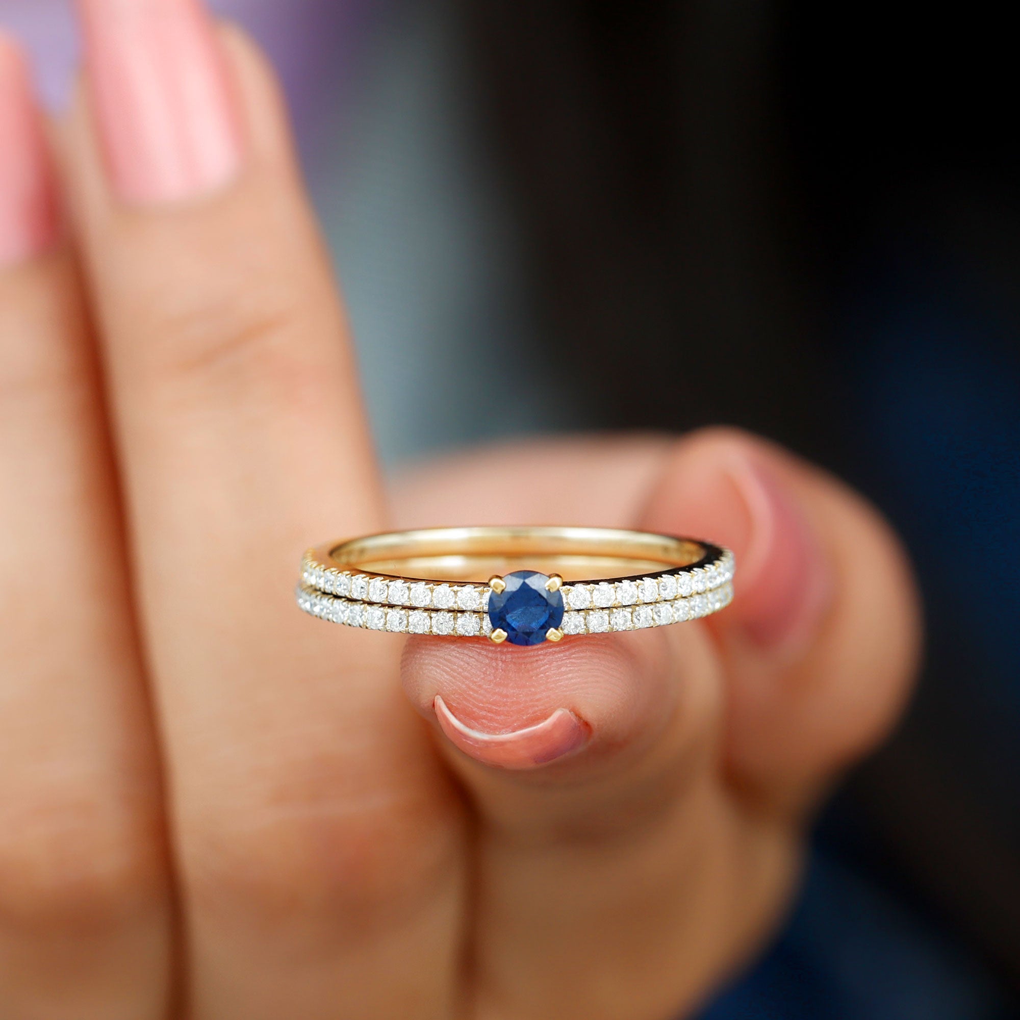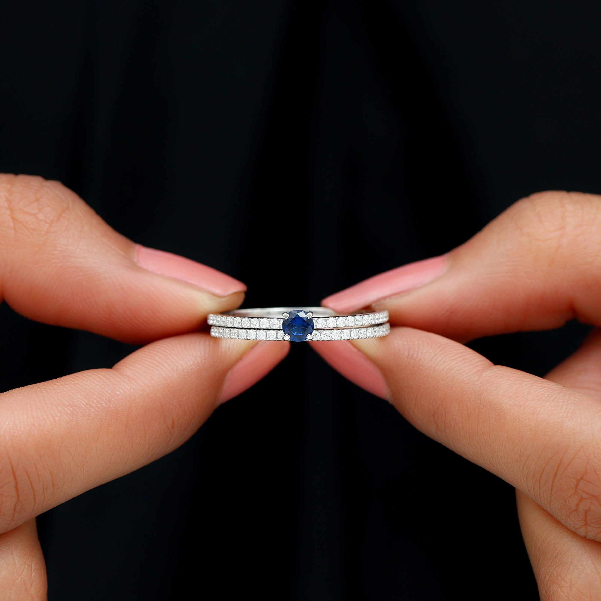 Bridal sets come in various designs, from ornate filigree to contemporary minimalist forms, to fit every couple's preferences and personalities. The identical bands give the finger a seamless appearance, highlighting the unity of the couple's commitment.