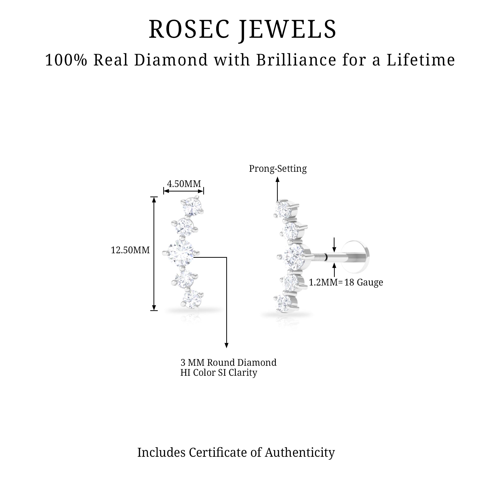 Cartilage piercings earrings adorned by beautiful, perfectly cut H color SI clarity diamonds. Diamonds are forever, you must have heard this. Genuine diamonds last for a lifetime when properly taken care of. At Rosec Jewels, we offer ethically sourced diamonds that shine brilliantly like a star. So, add some serious sparkle upgrade with our diamond piercing jewelry and let your ear stack do all the talking!
