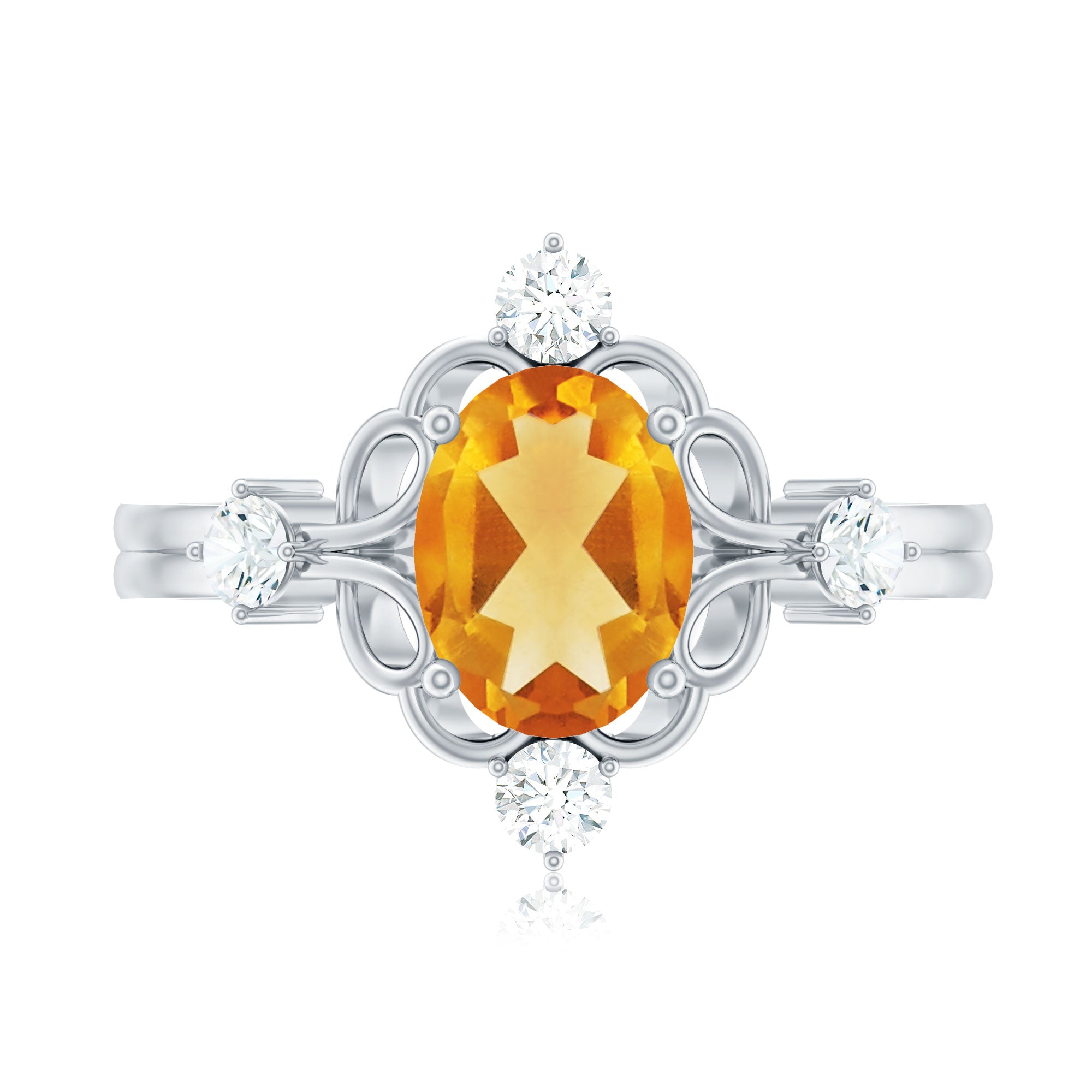 Drawn the design from the beauty of nature. The most popular nature motifs are flower, leaves, vine wraps, and also wispy branch textures. These rings feature a center citrine stone, graced by natural elements, which adds more sparkle to the ring.
