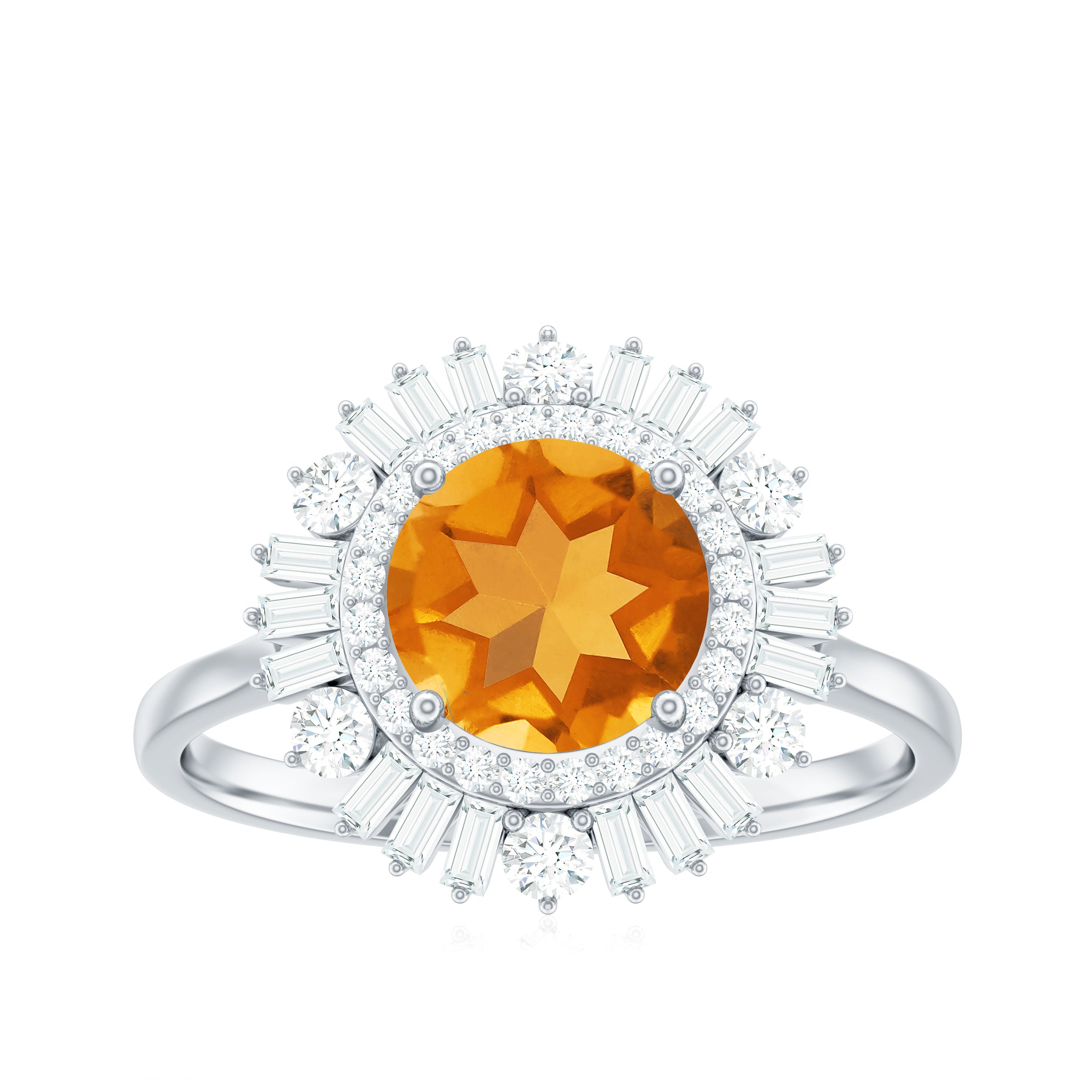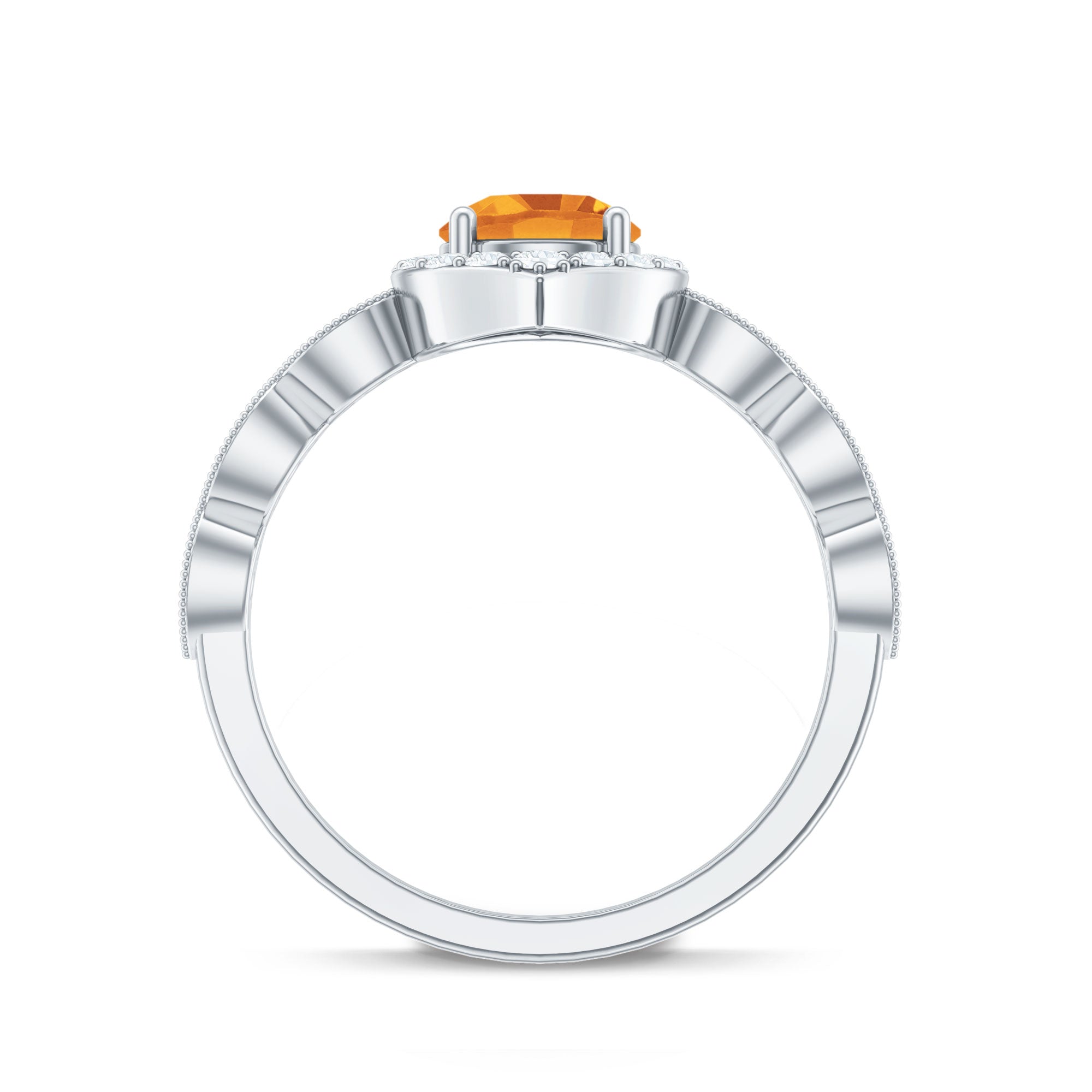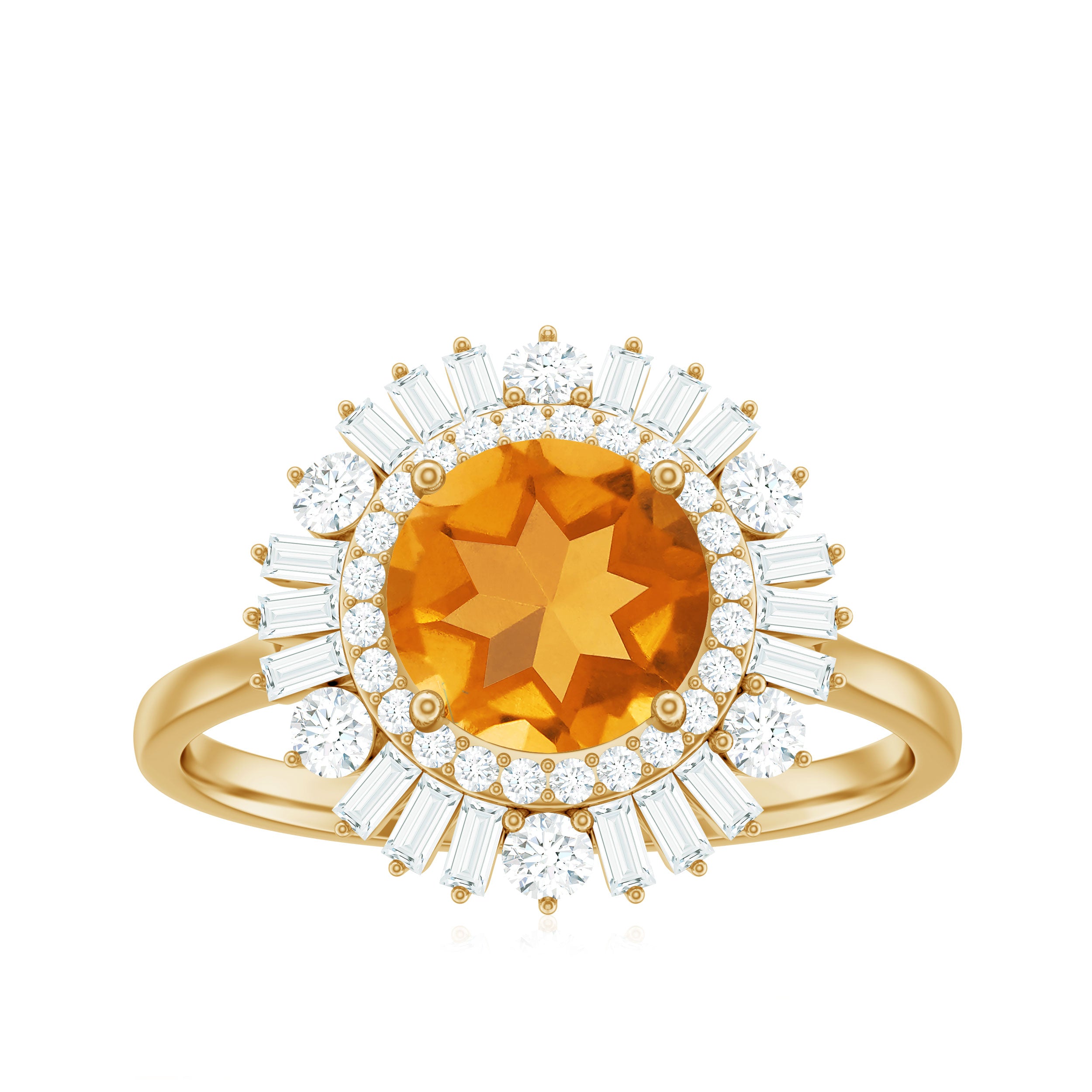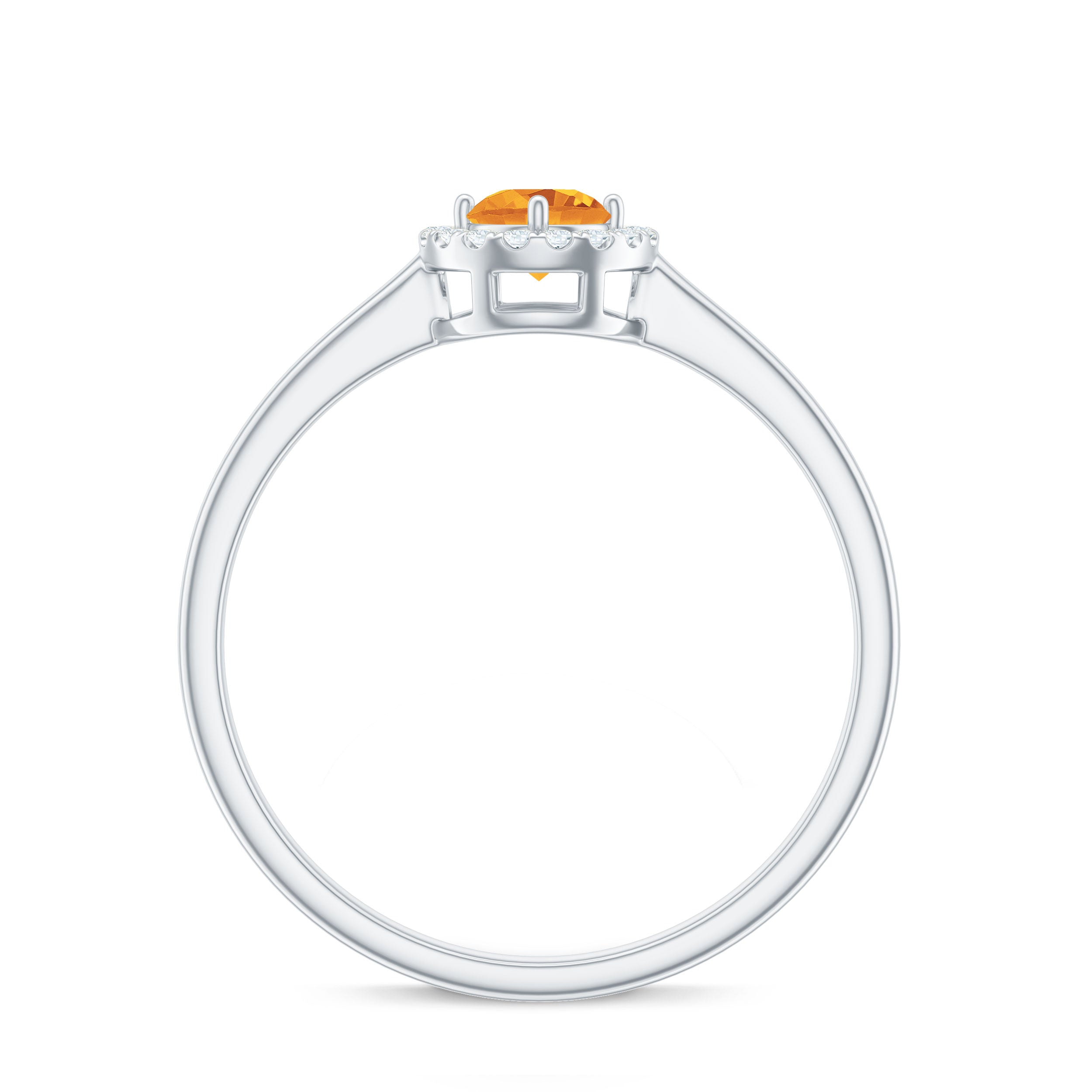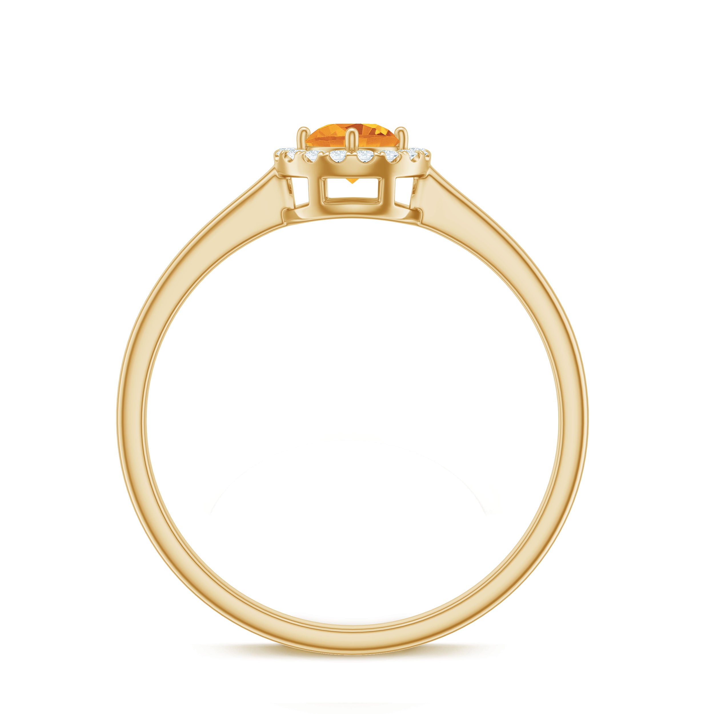 Features a citrine stone, that is a focal point, and small shimmery diamonds add an extra layer of shine & sparkle to the citrine centerpiece. The halo accent enhances the beauty and brilliance of the gem.