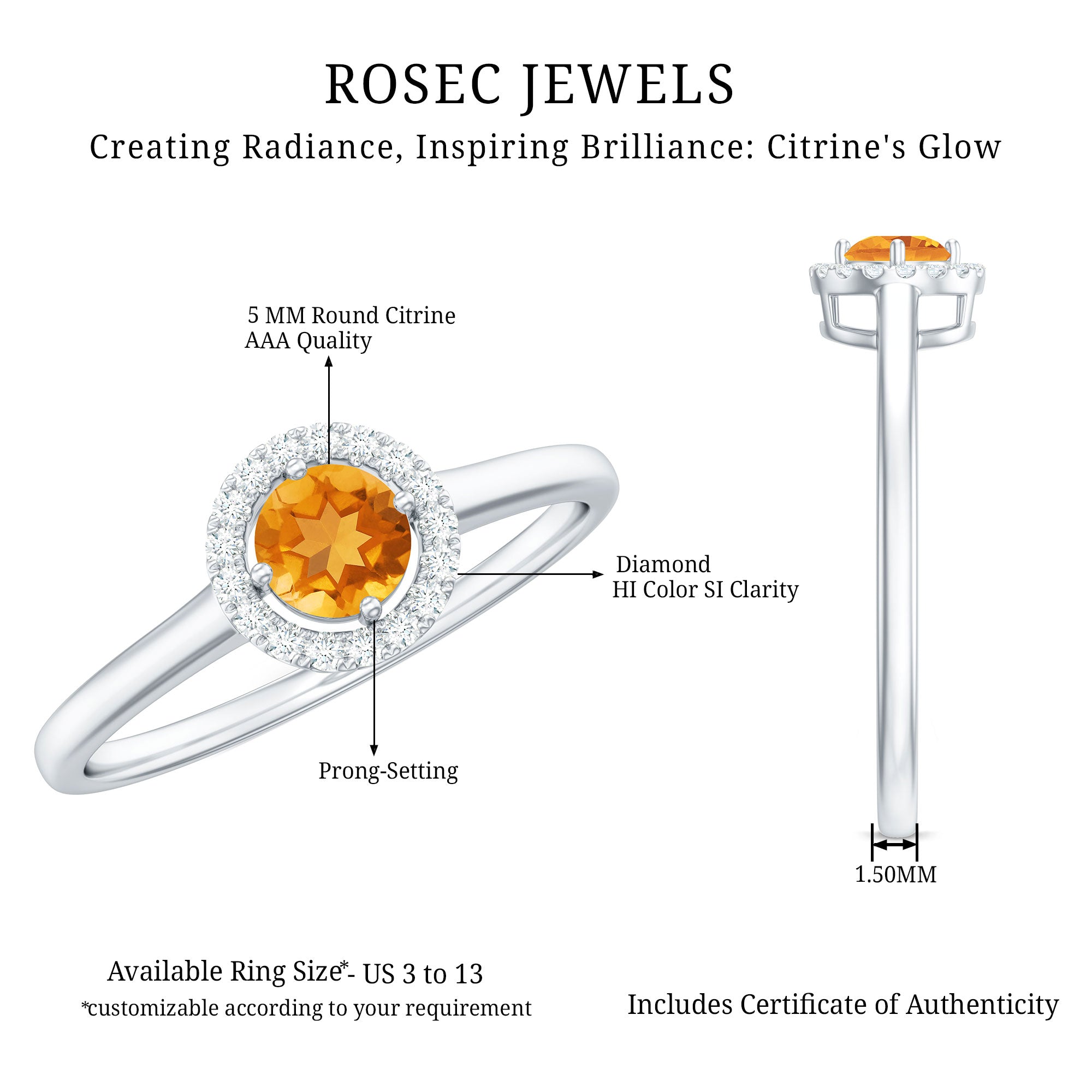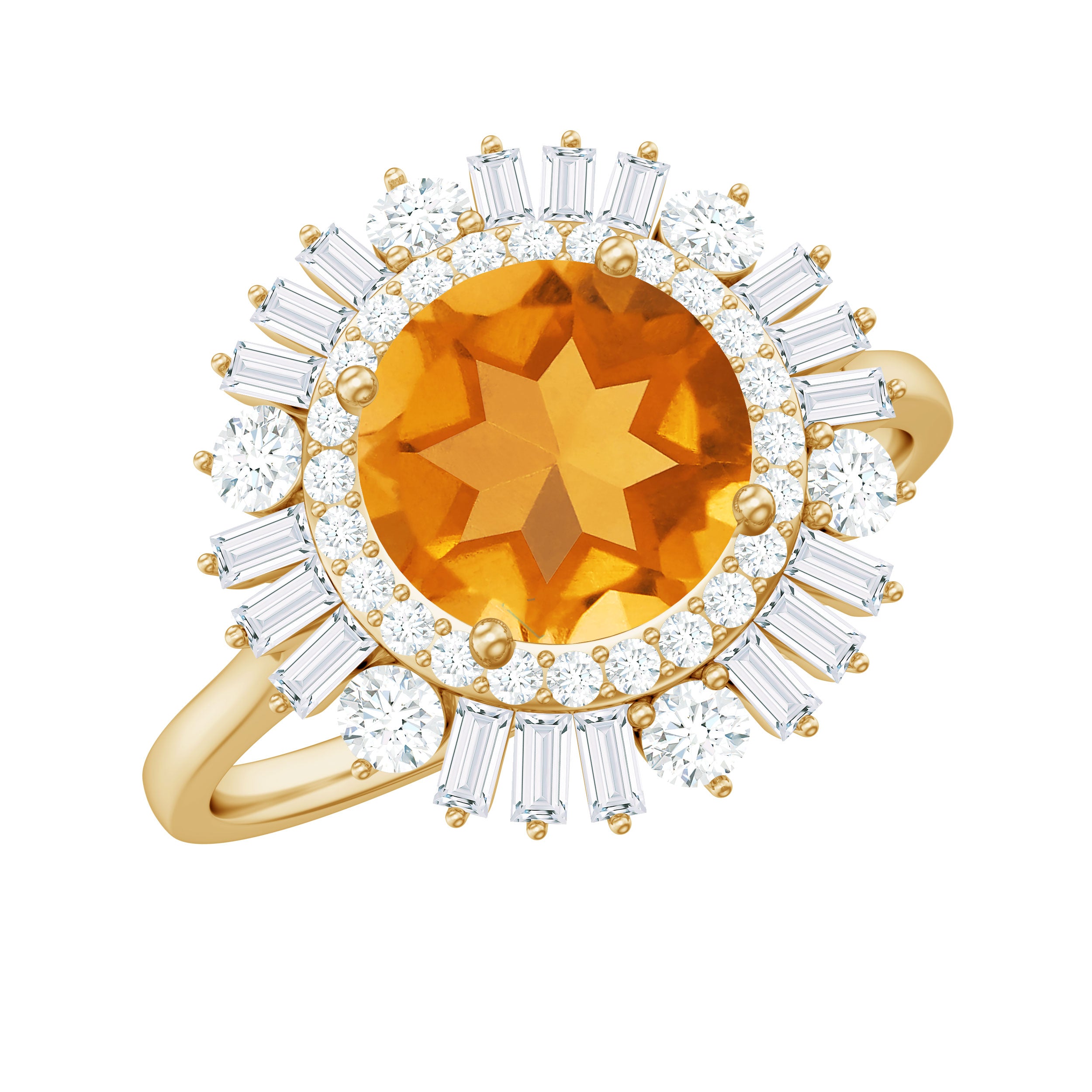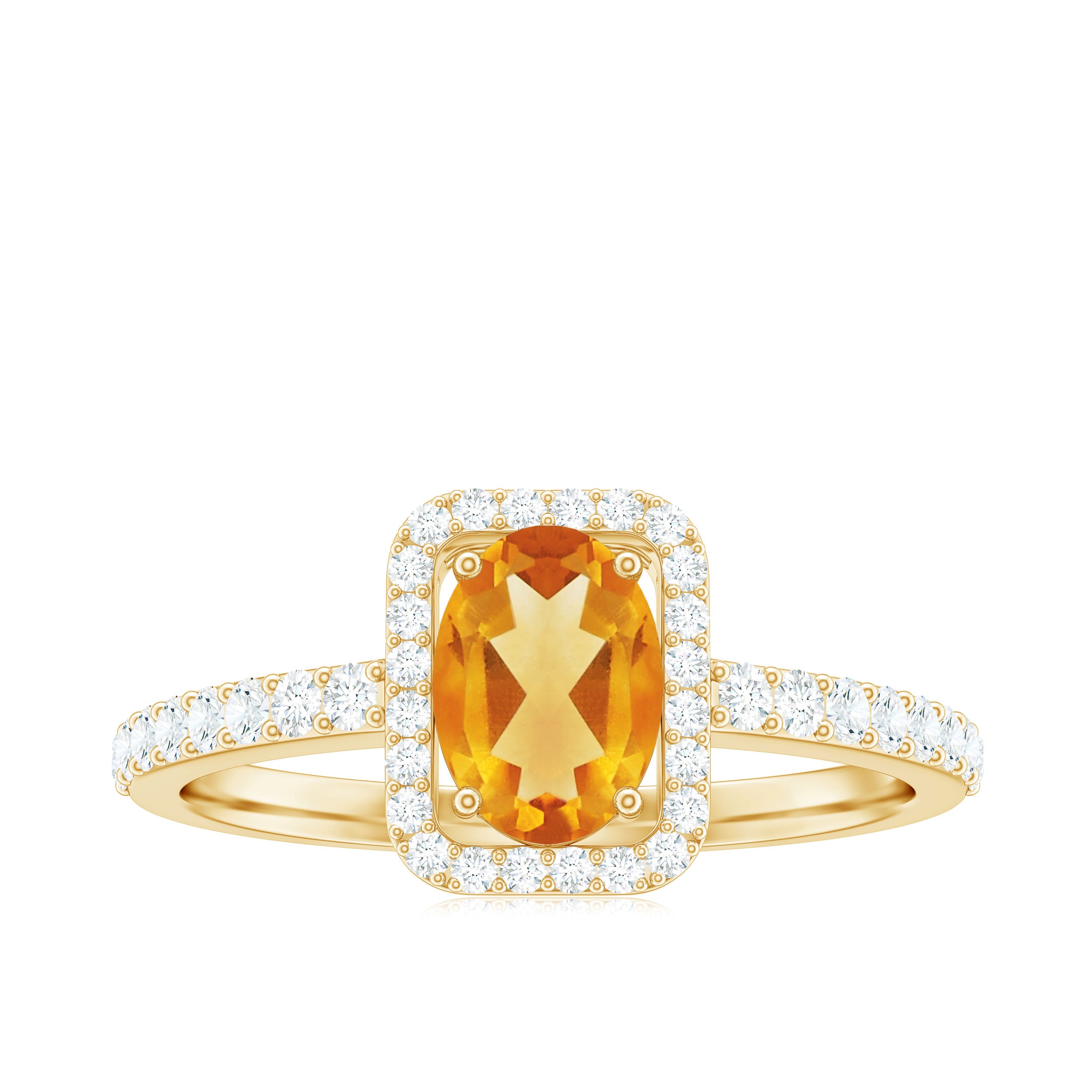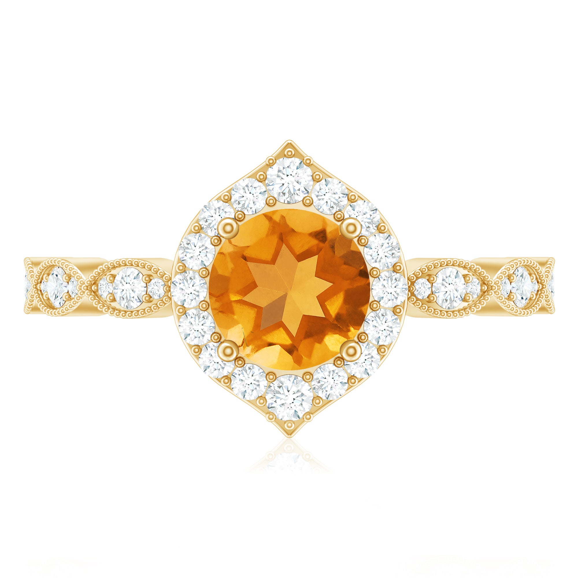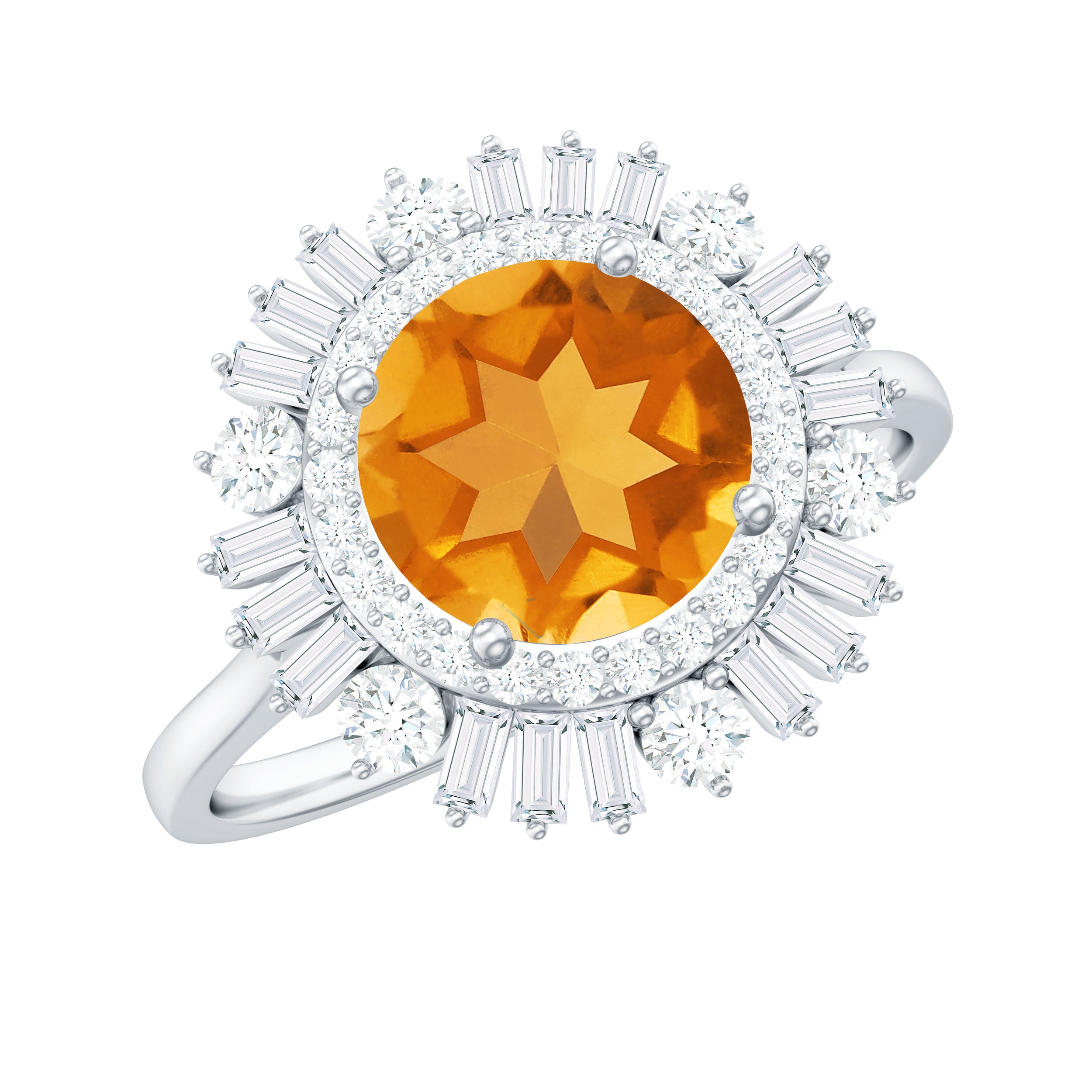 Features a citrine stone, that is a focal point, and small shimmery diamonds add an extra layer of shine & sparkle to the citrine centerpiece. The halo accent enhances the beauty and brilliance of the gem.