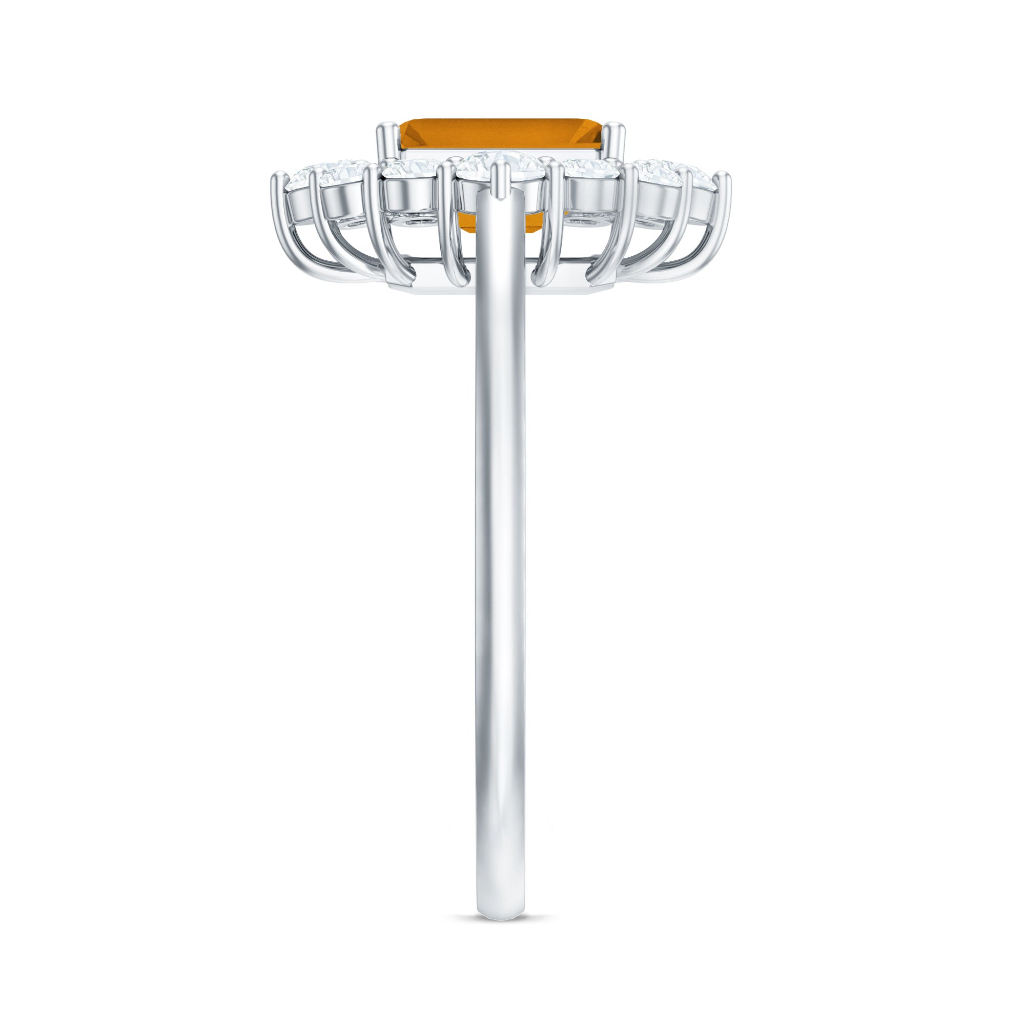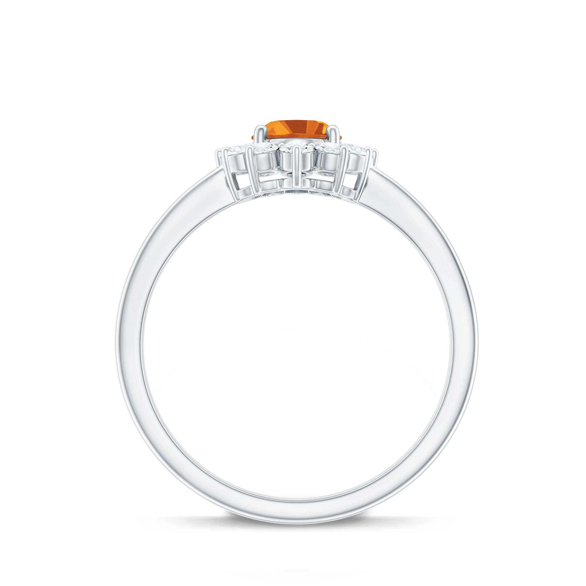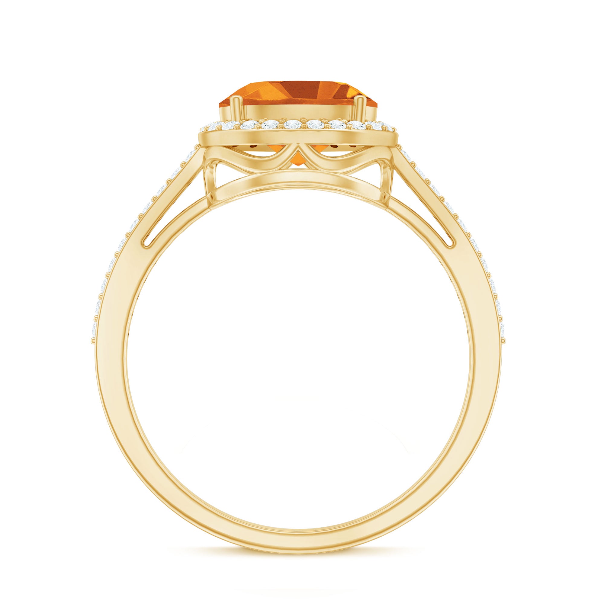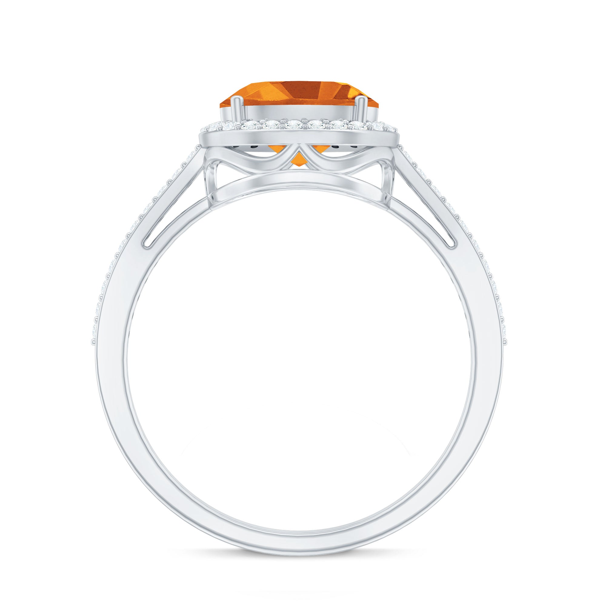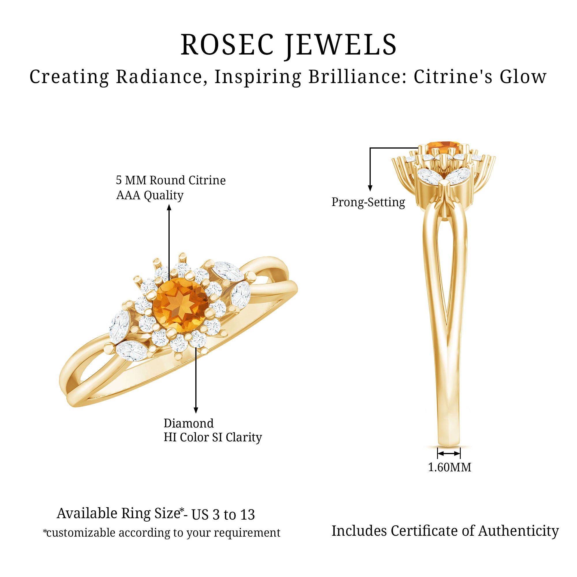 Features a citrine stone, that is a focal point, and small shimmery diamonds add an extra layer of shine & sparkle to the citrine centerpiece. The halo accent enhances the beauty and brilliance of the gem.