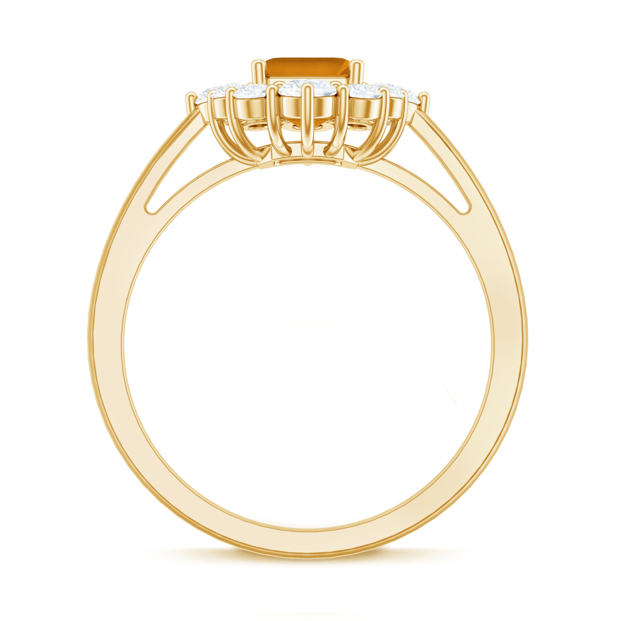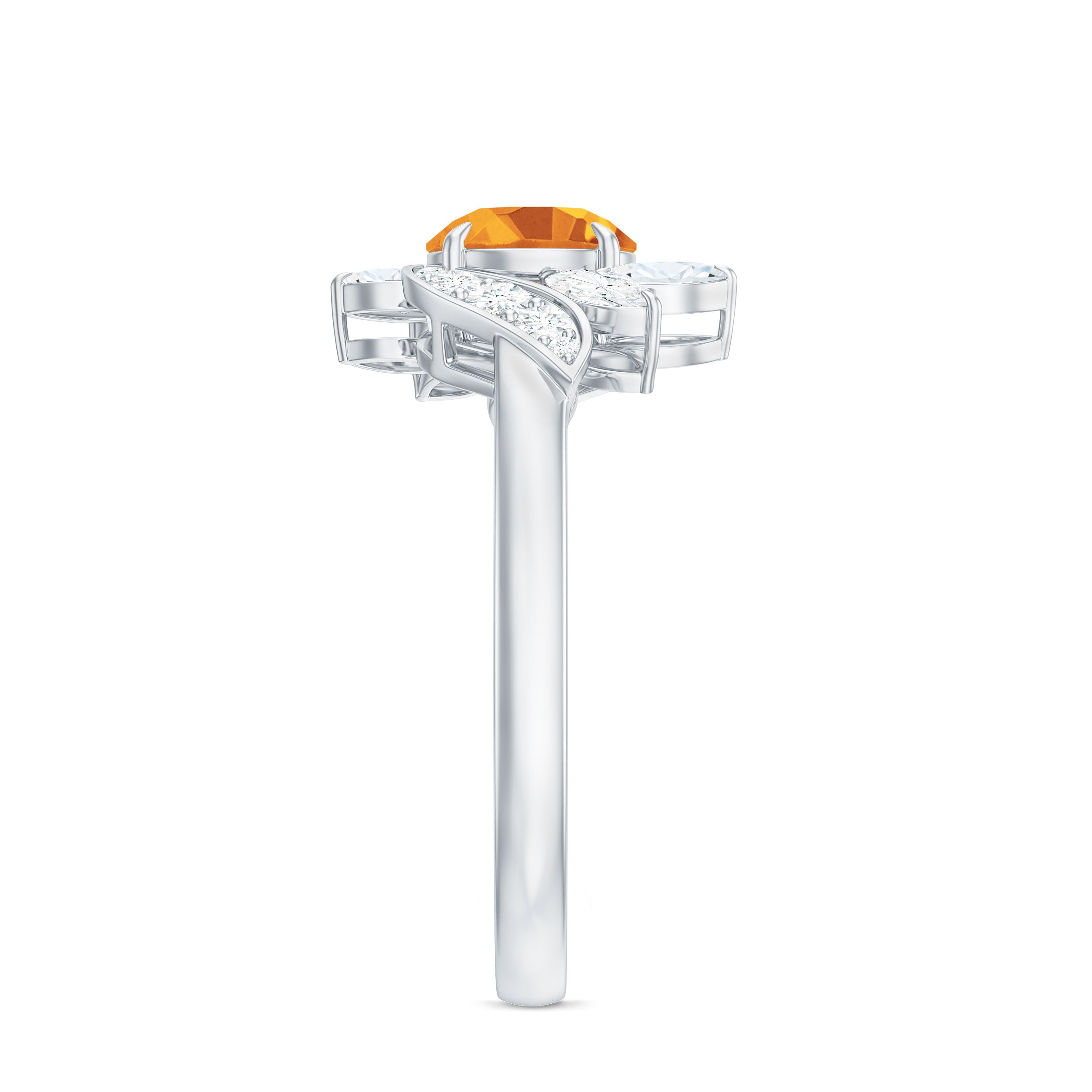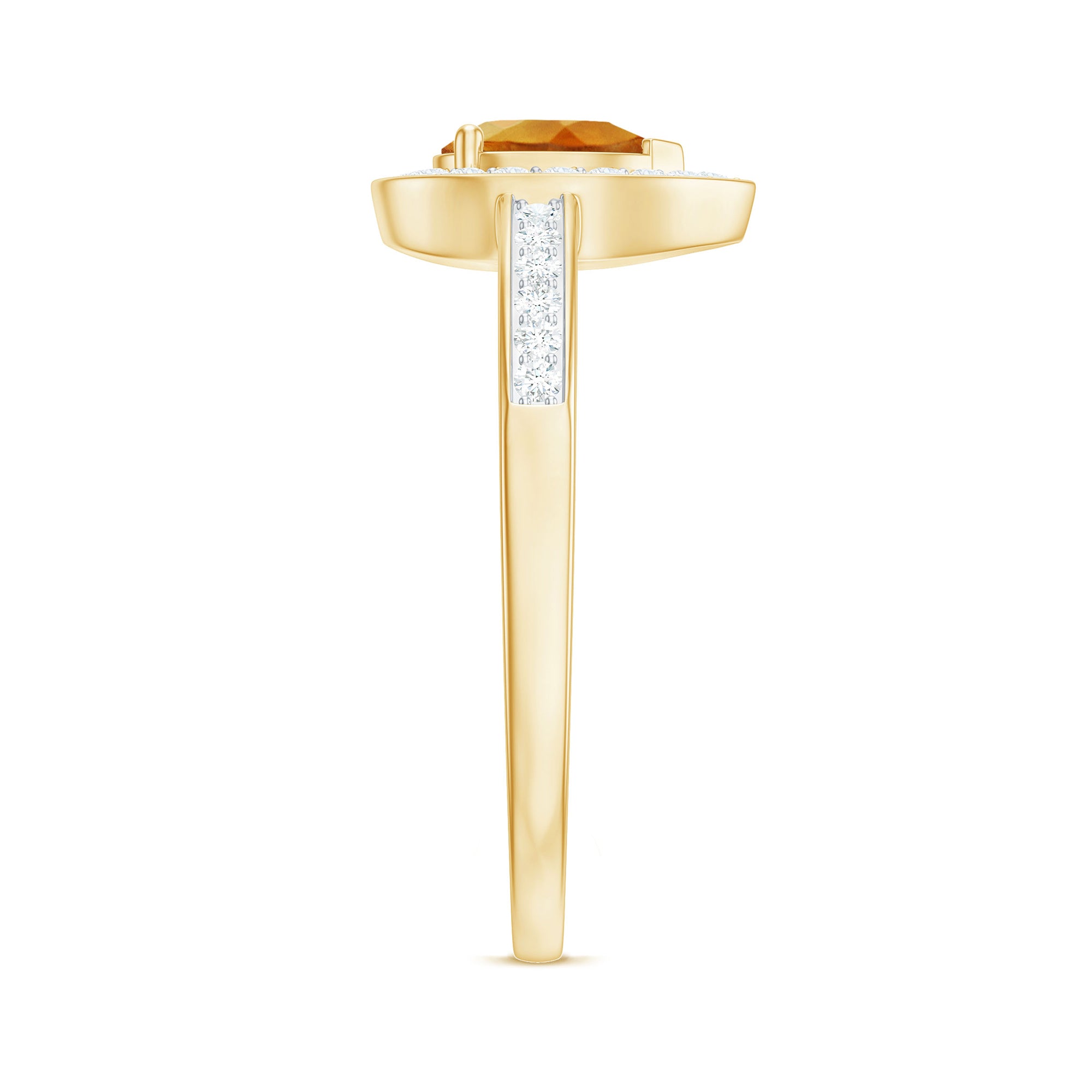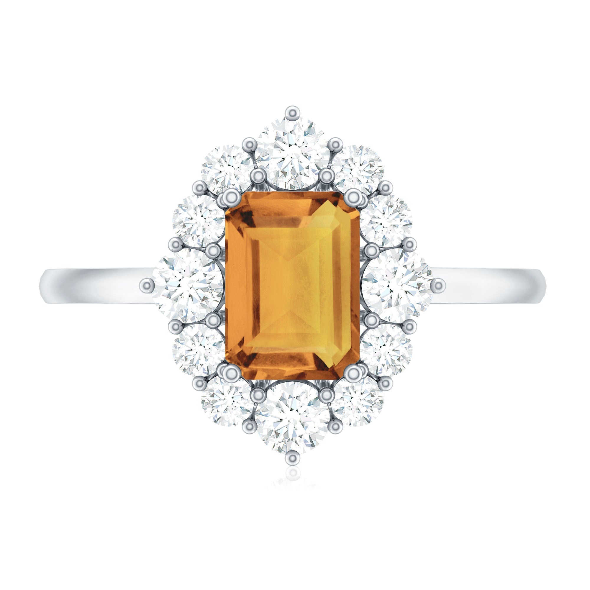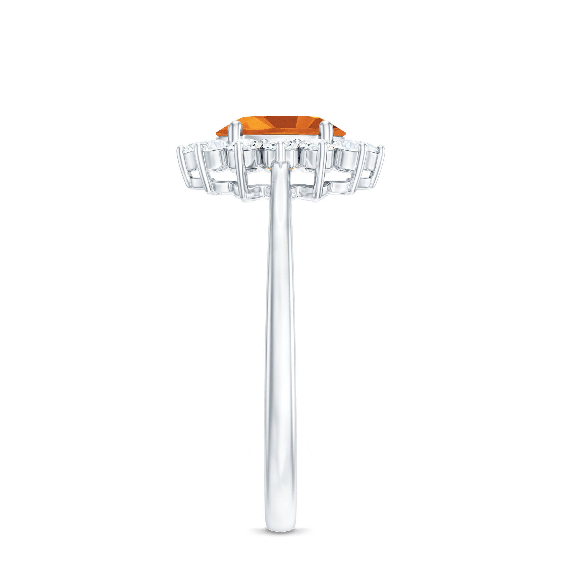 Features a citrine stone, that is a focal point, and small shimmery diamonds add an extra layer of shine & sparkle to the citrine centerpiece. The halo accent enhances the beauty and brilliance of the gem.