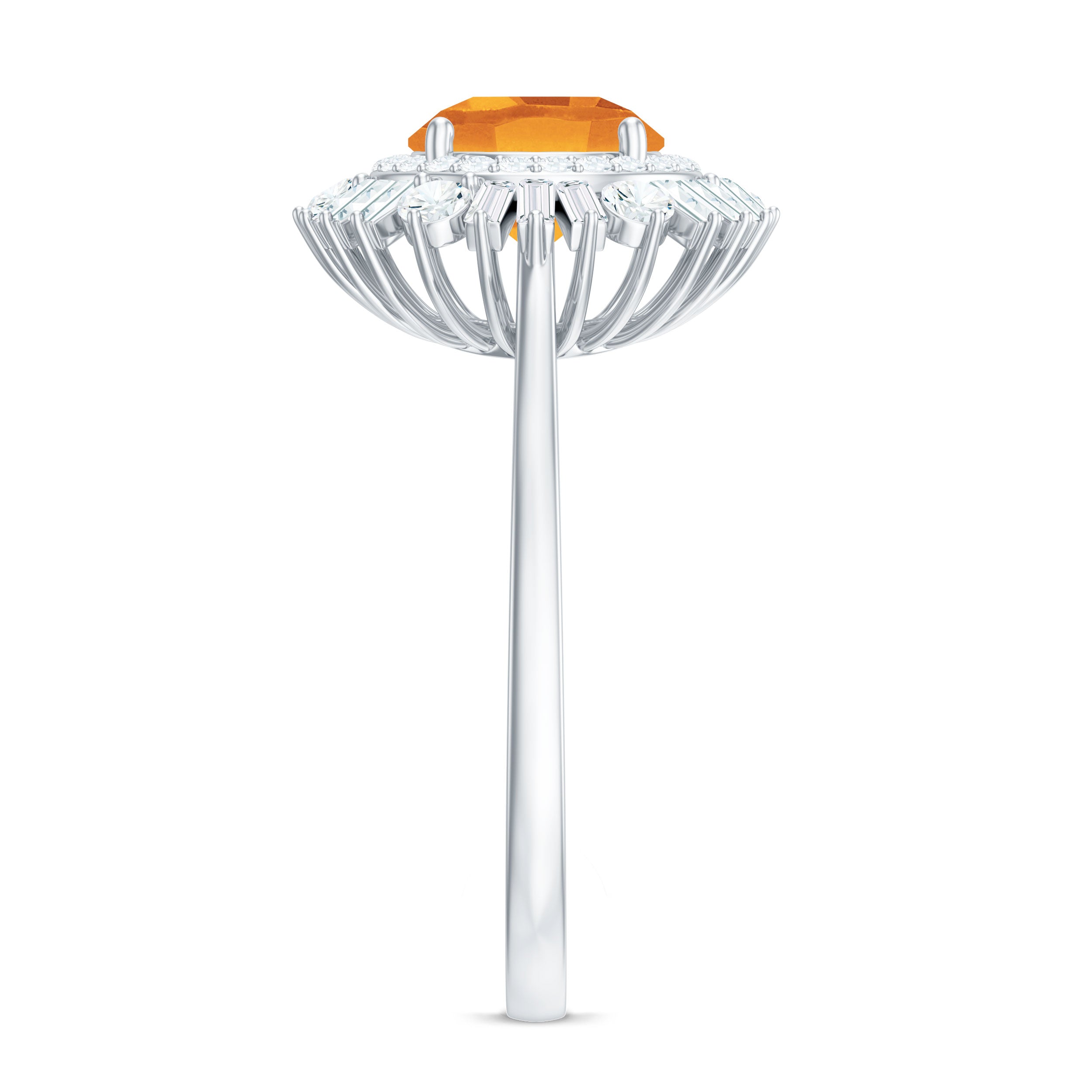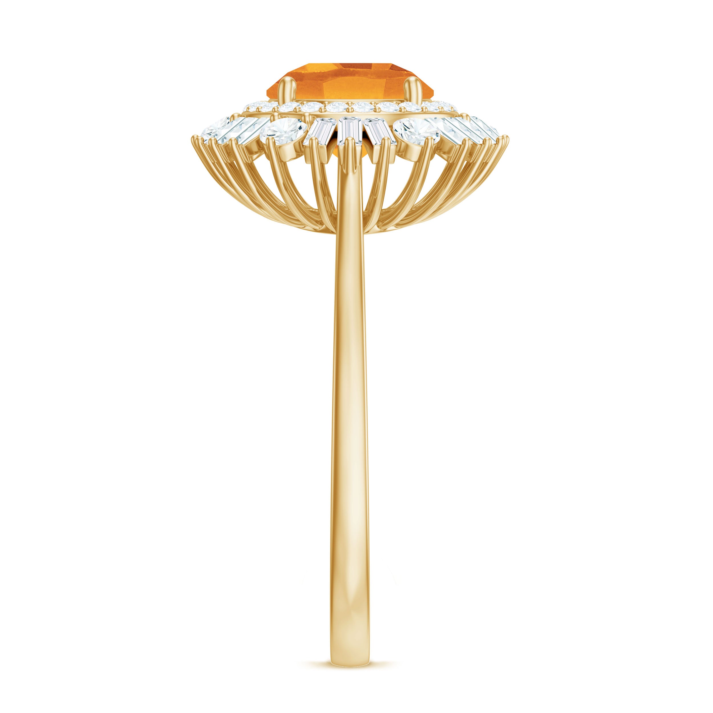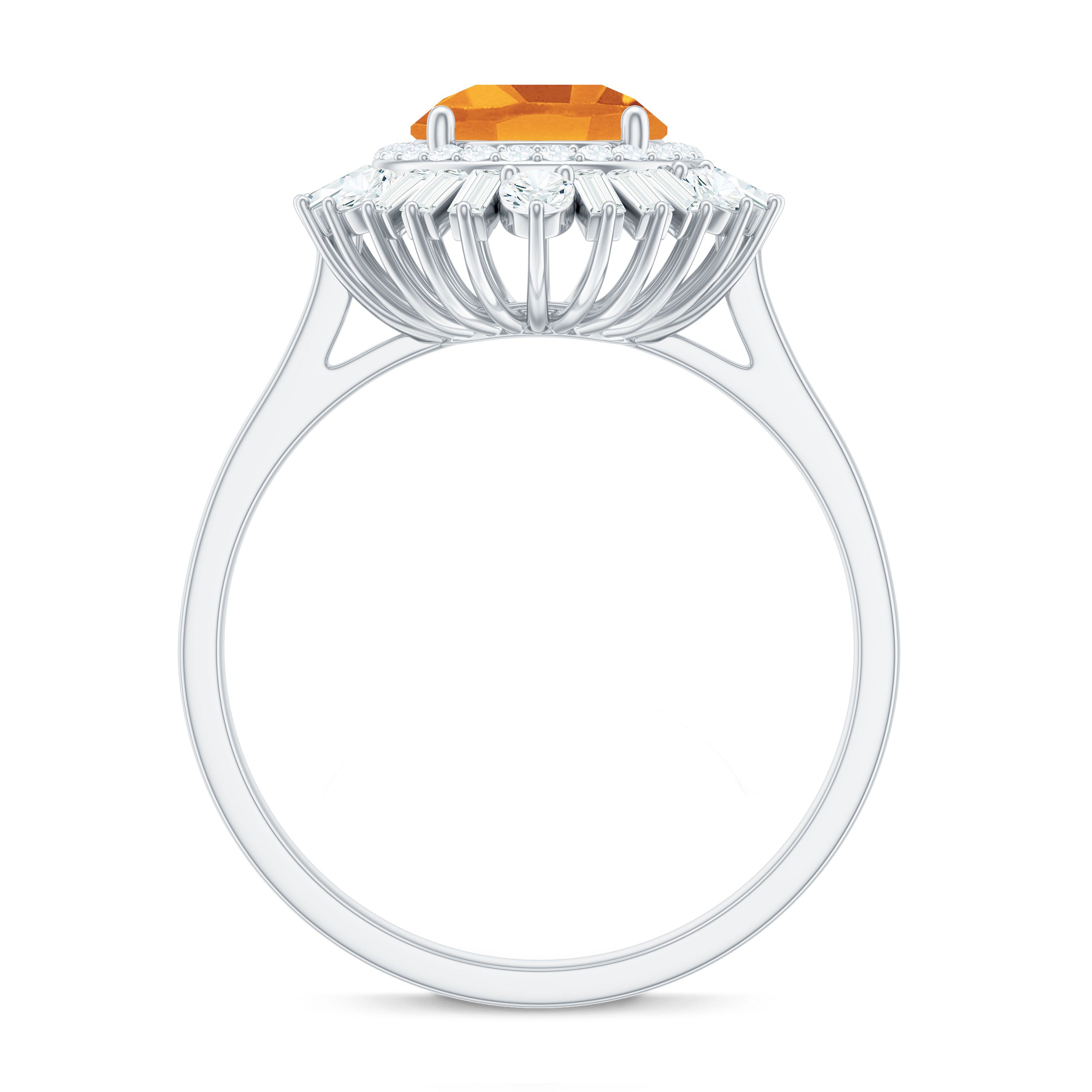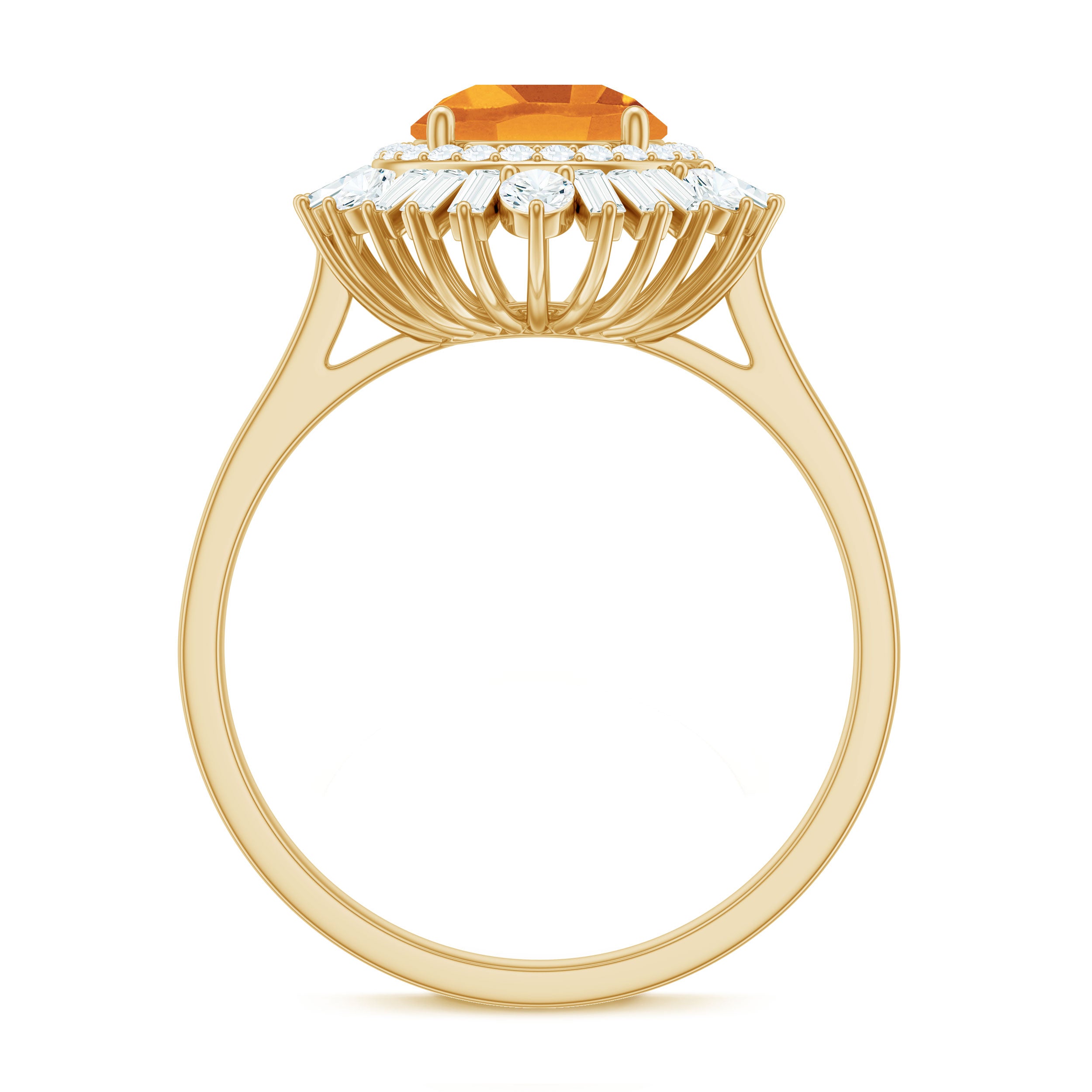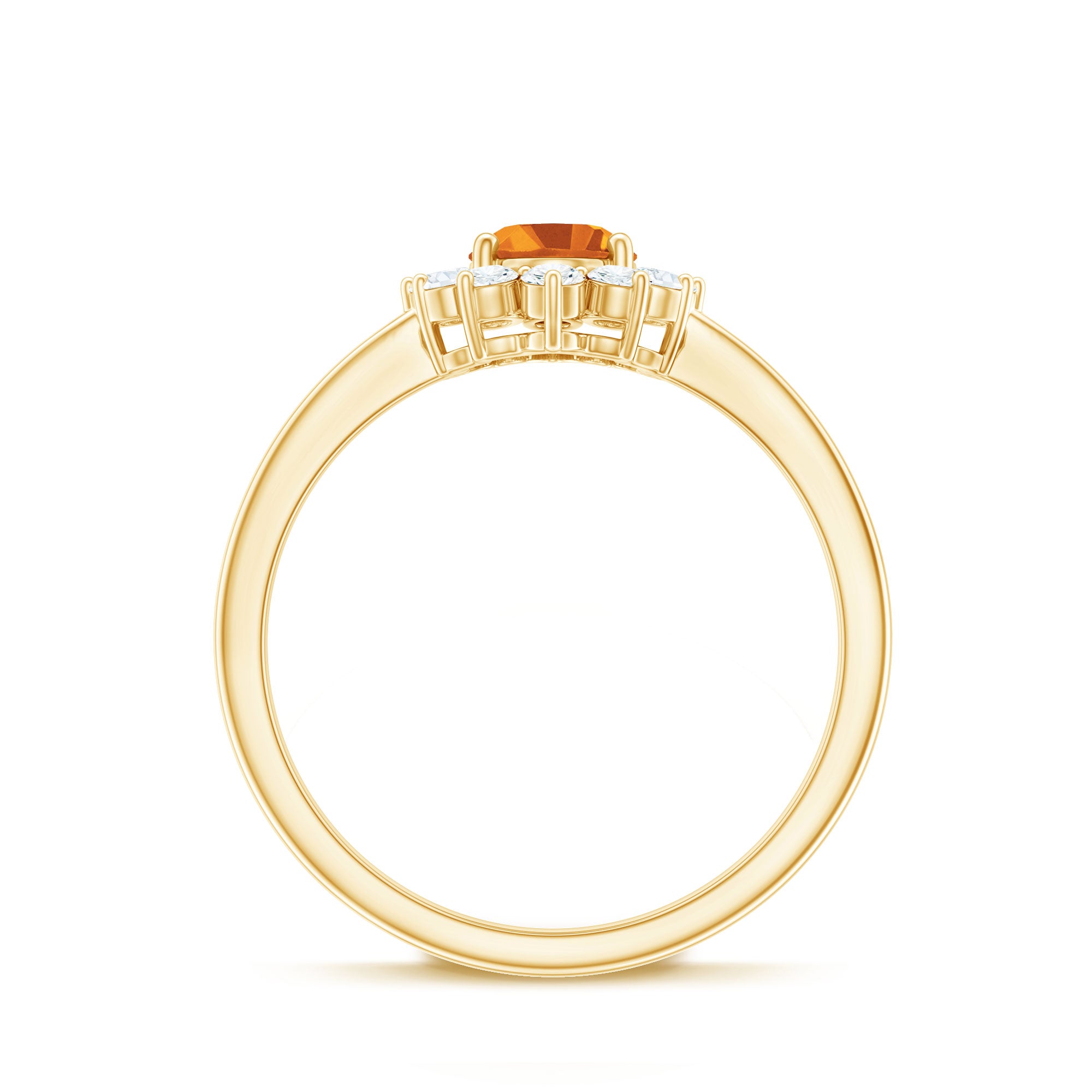 Features a citrine stone, that is a focal point, and small shimmery diamonds add an extra layer of shine & sparkle to the citrine centerpiece. The halo accent enhances the beauty and brilliance of the gem.