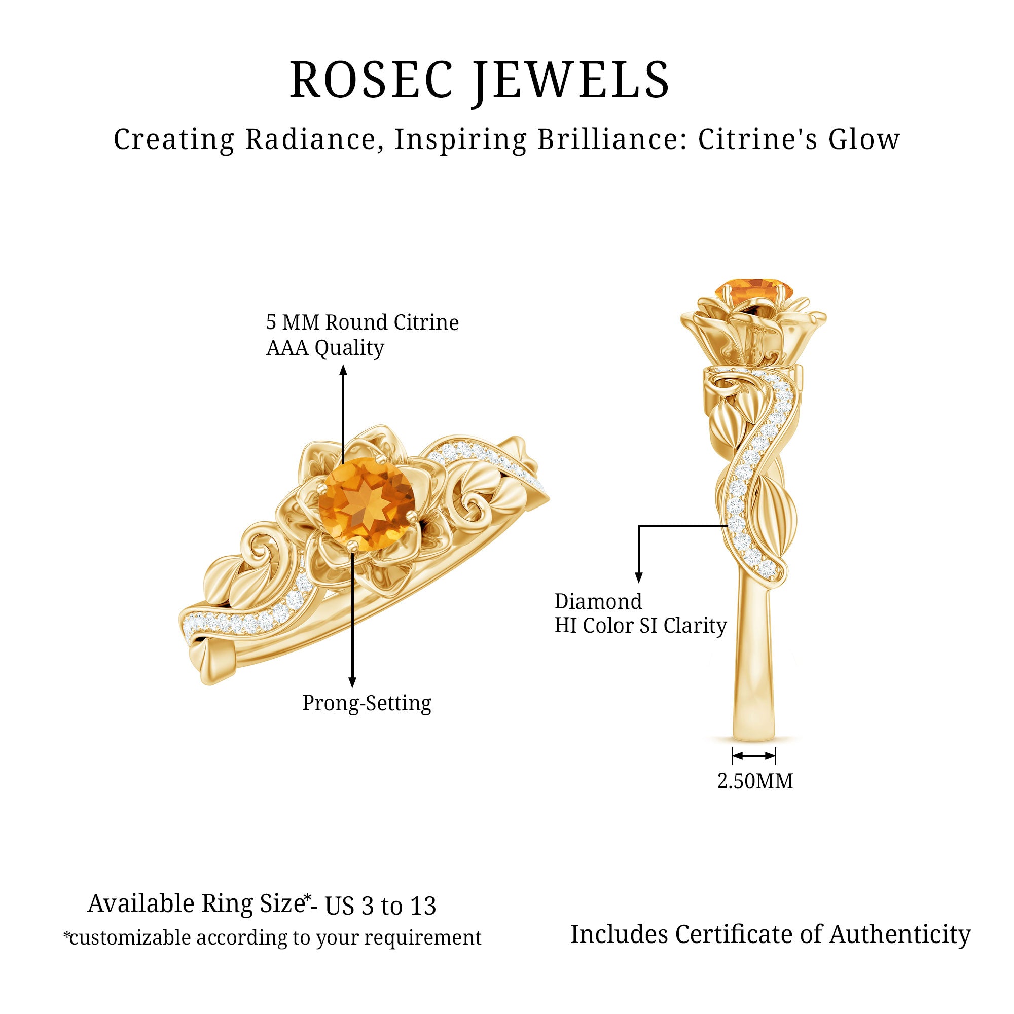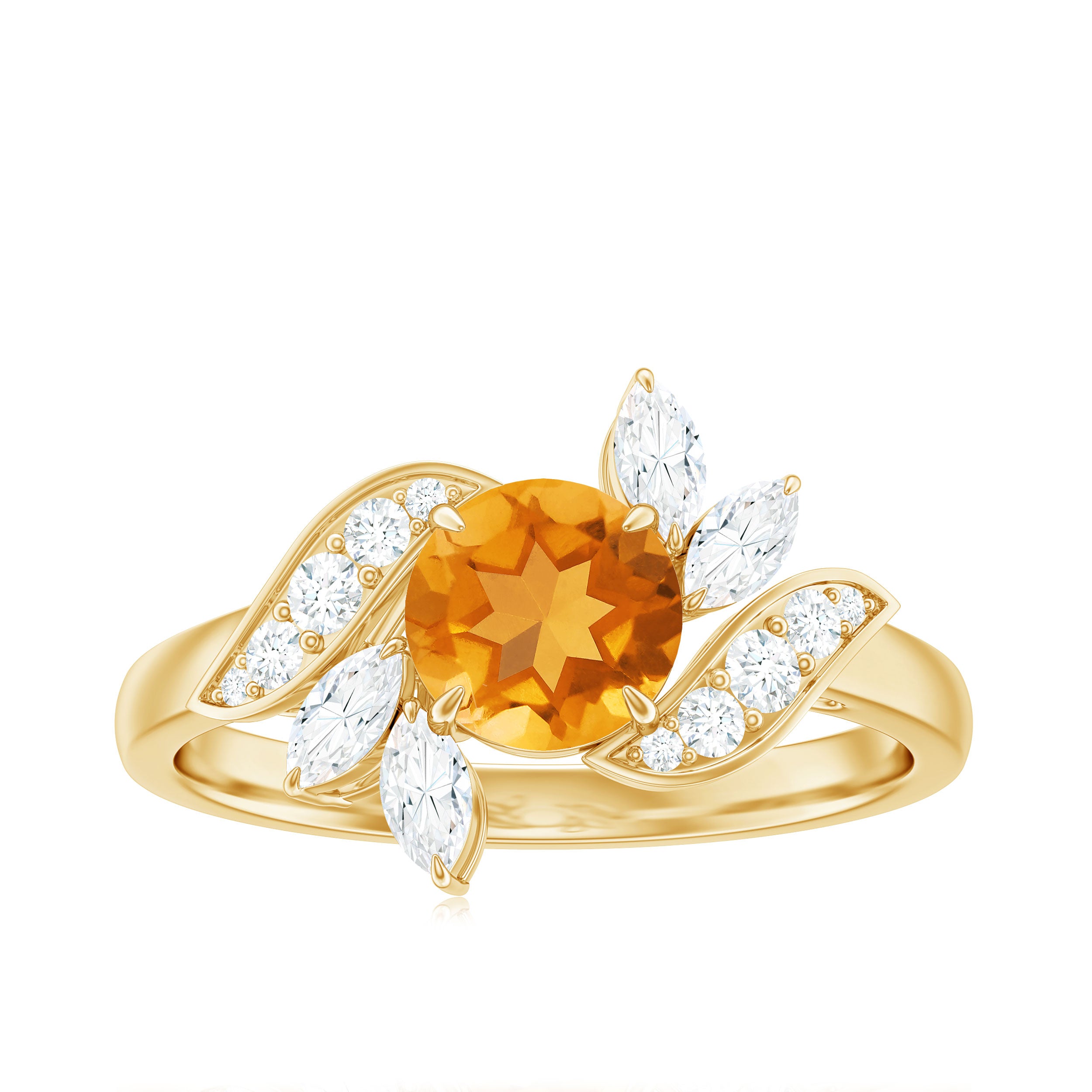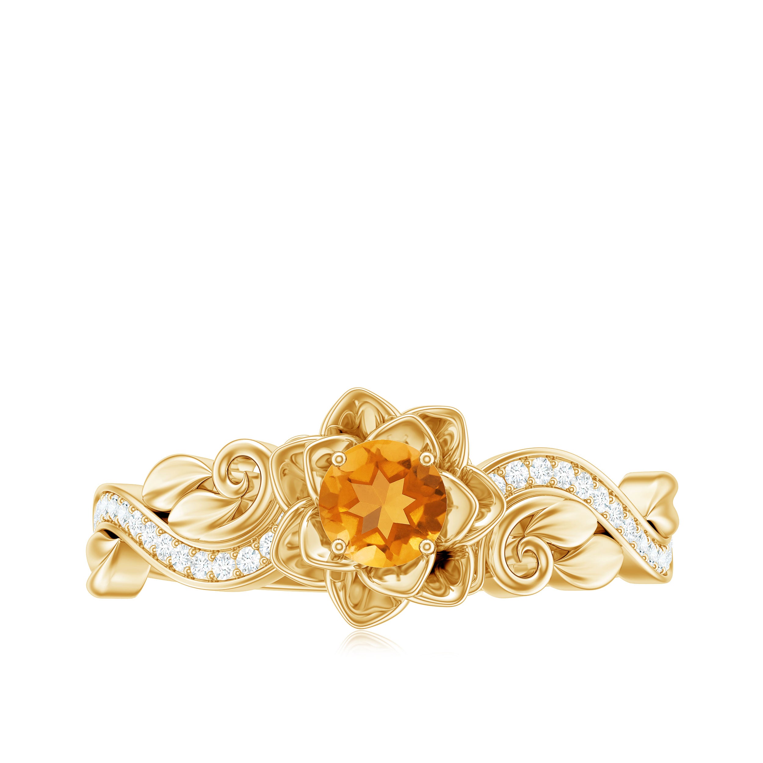 Drawn the design from the beauty of nature. The most popular nature motifs are flower, leaves, vine wraps, and also wispy branch textures. These rings feature a center citrine stone, graced by natural elements, which adds more sparkle to the ring.
