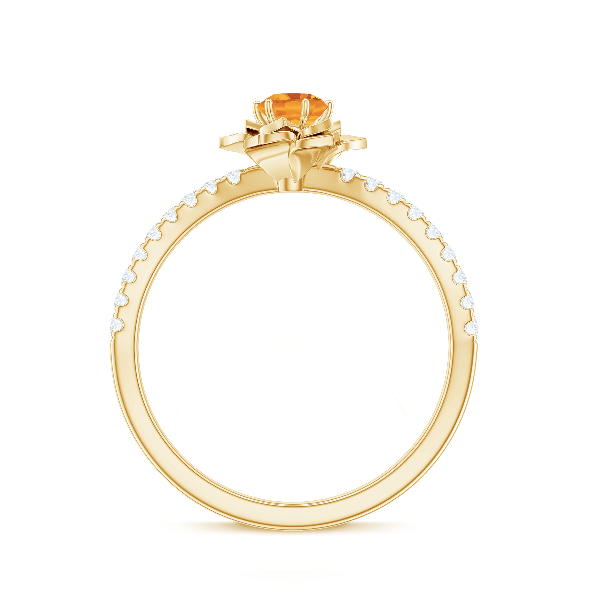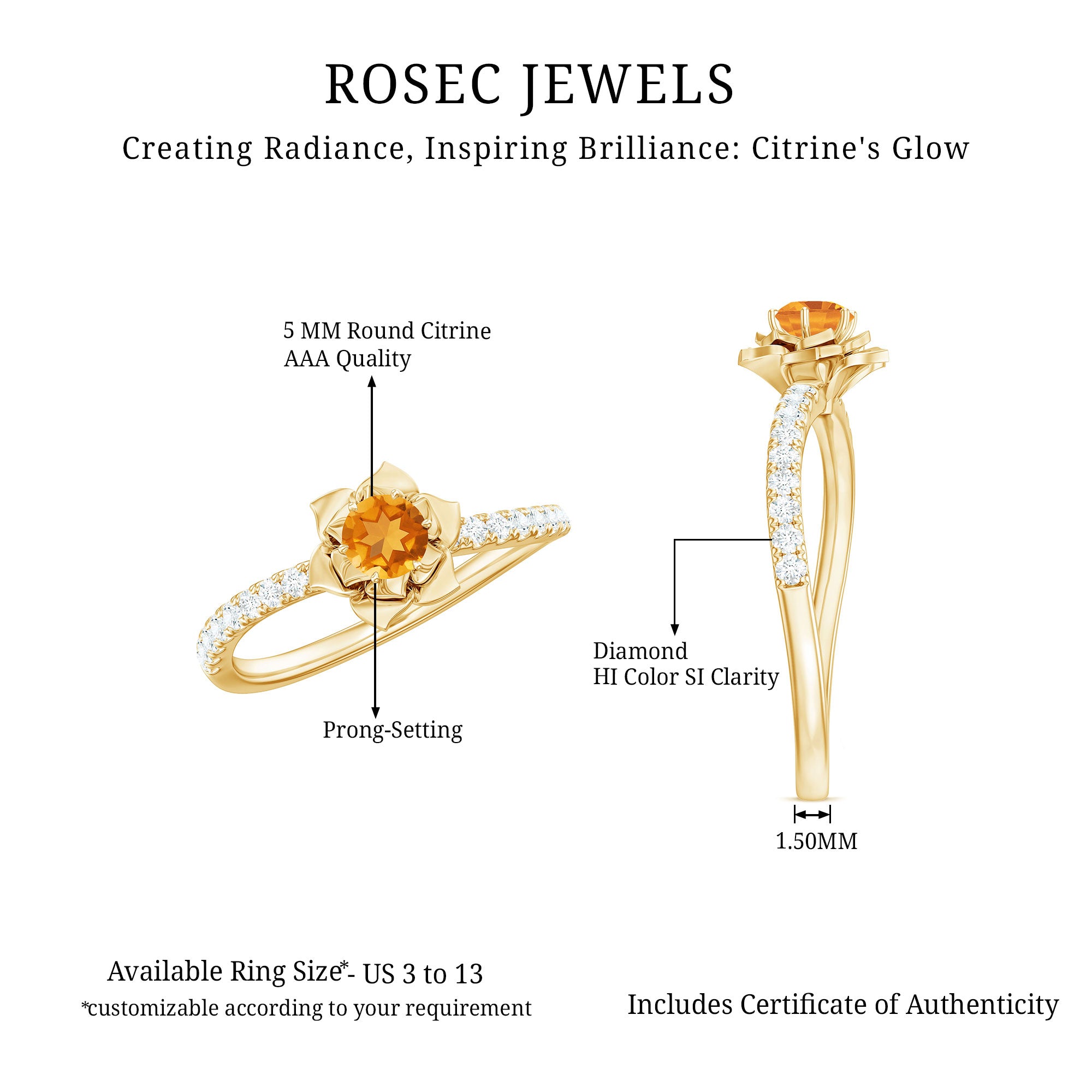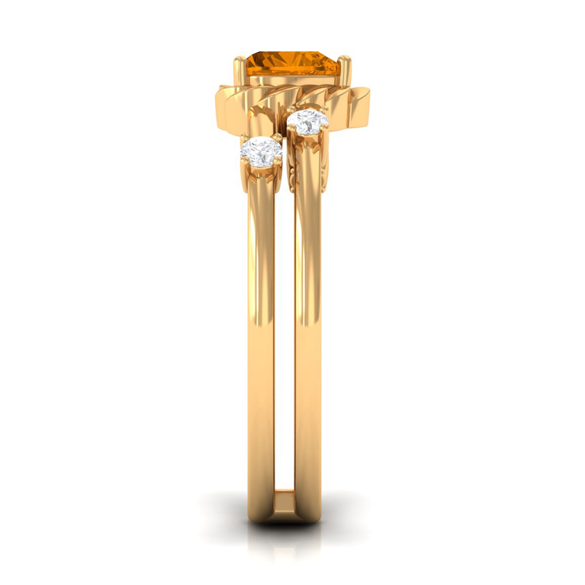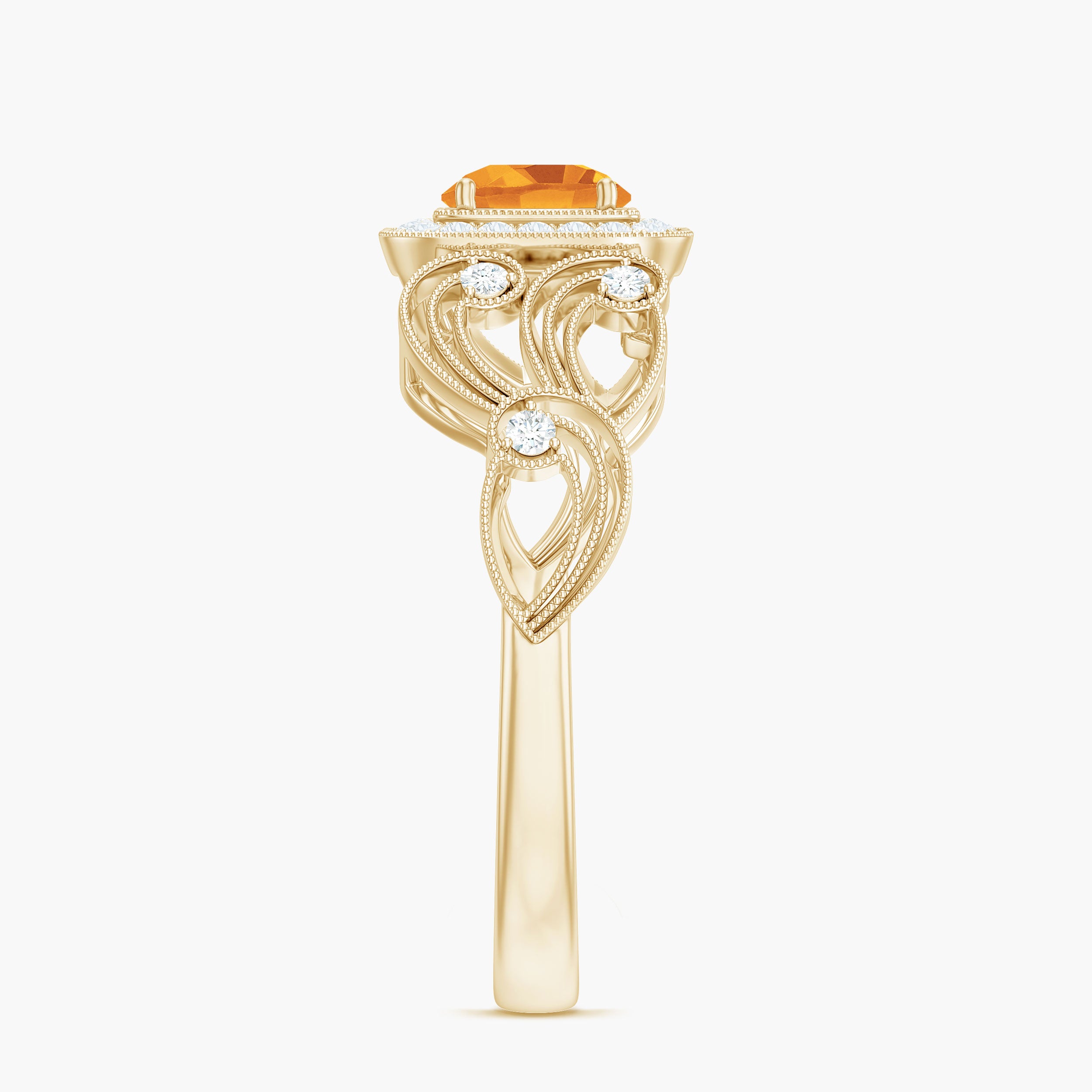 Drawn the design from the beauty of nature. The most popular nature motifs are flower, leaves, vine wraps, and also wispy branch textures. These rings feature a center citrine stone, graced by natural elements, which adds more sparkle to the ring.