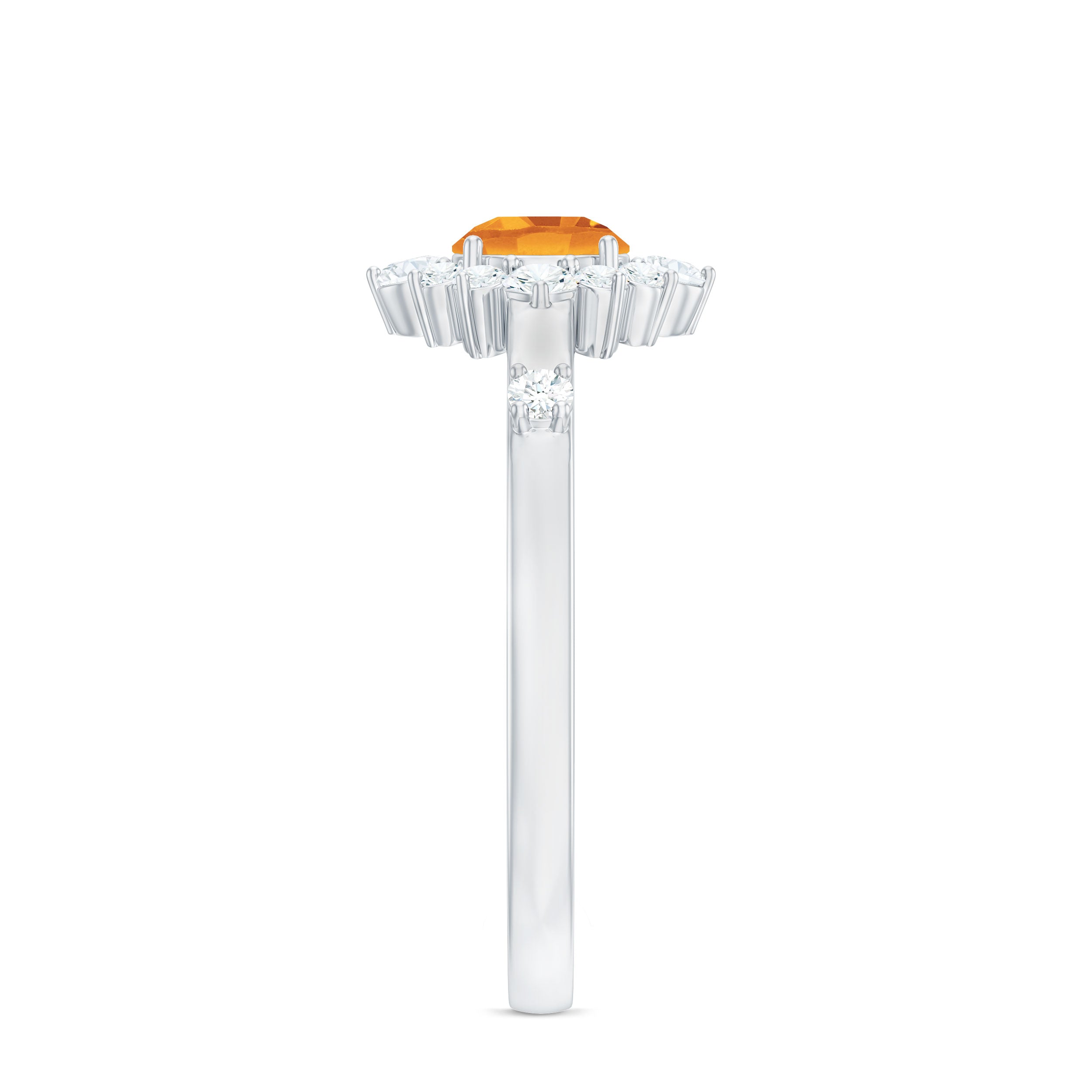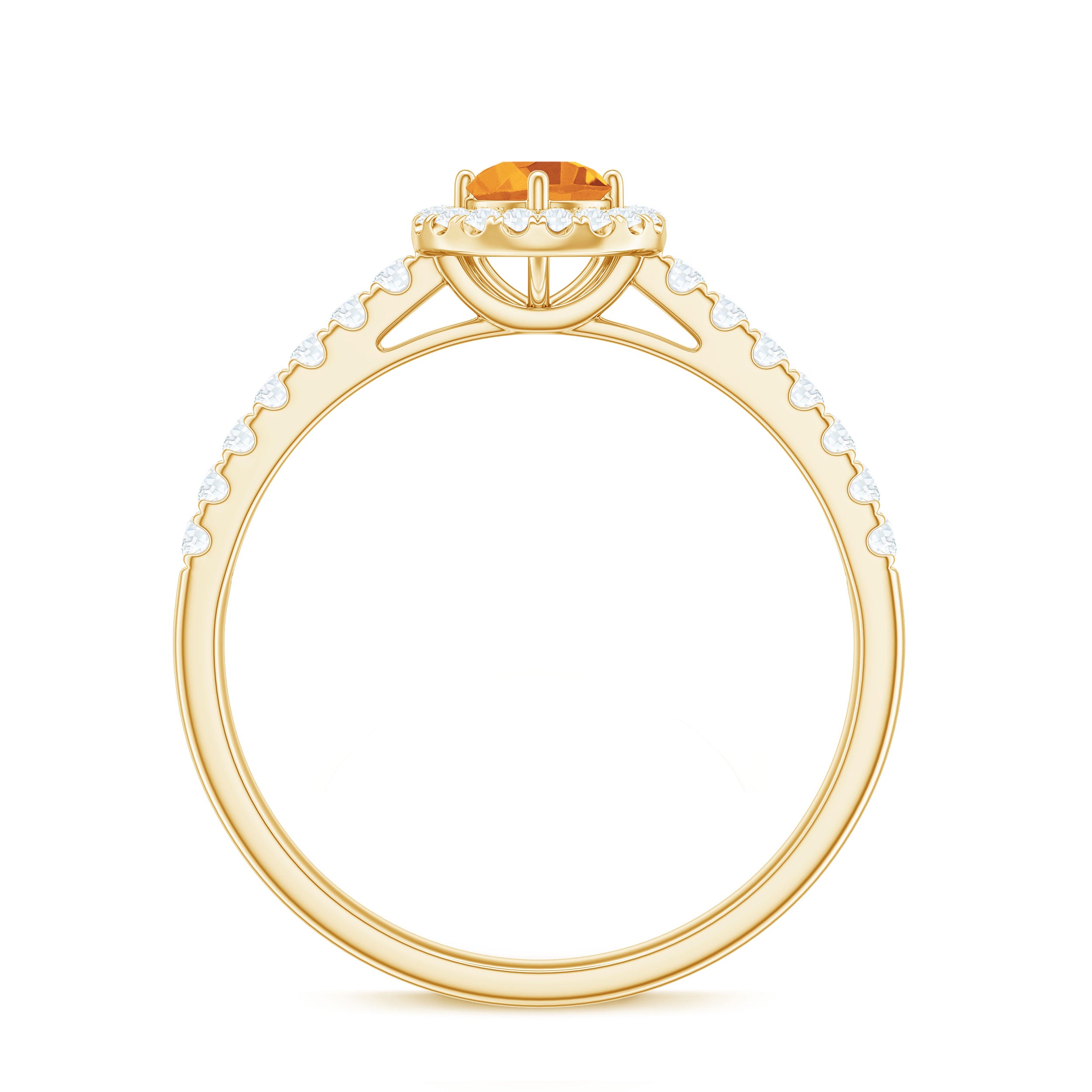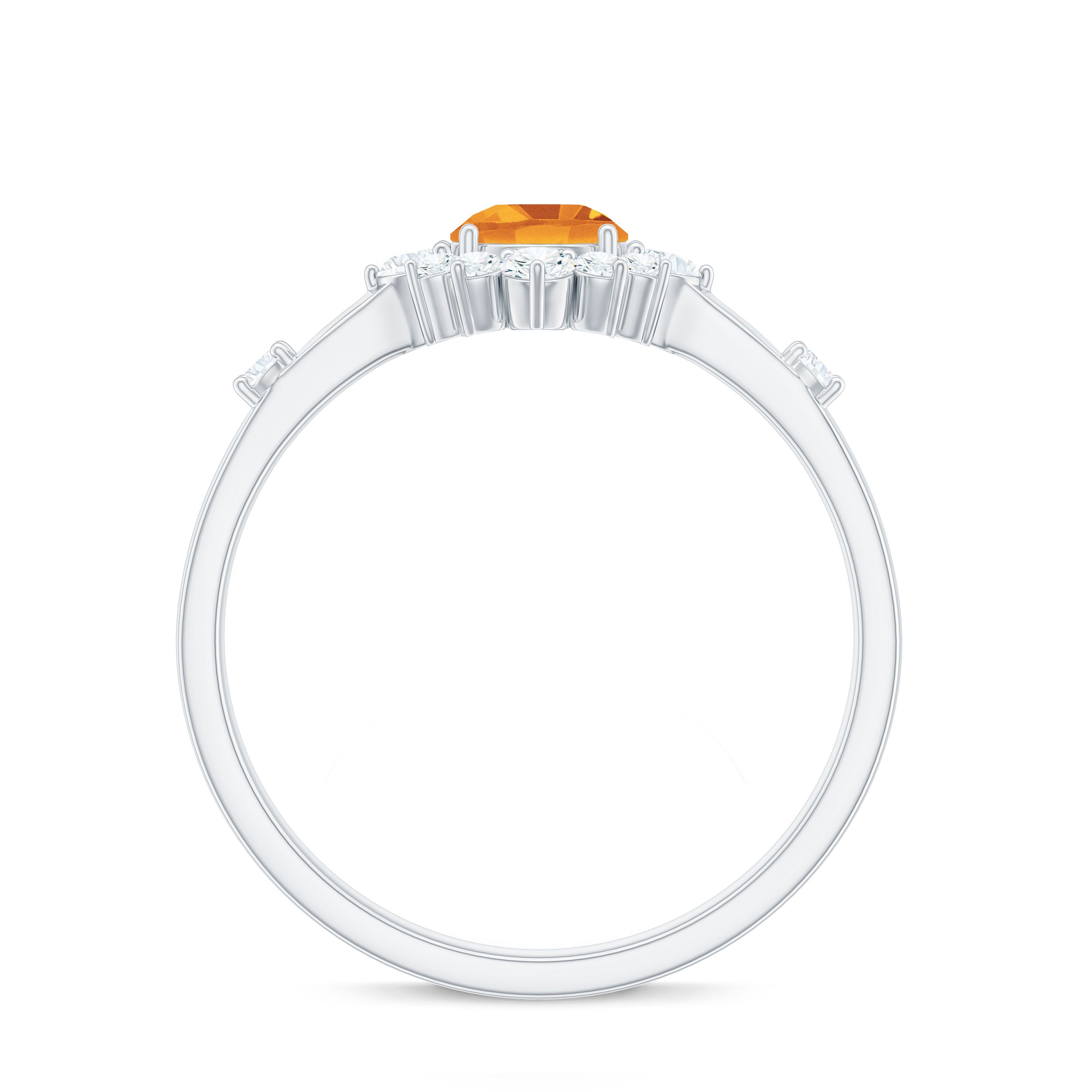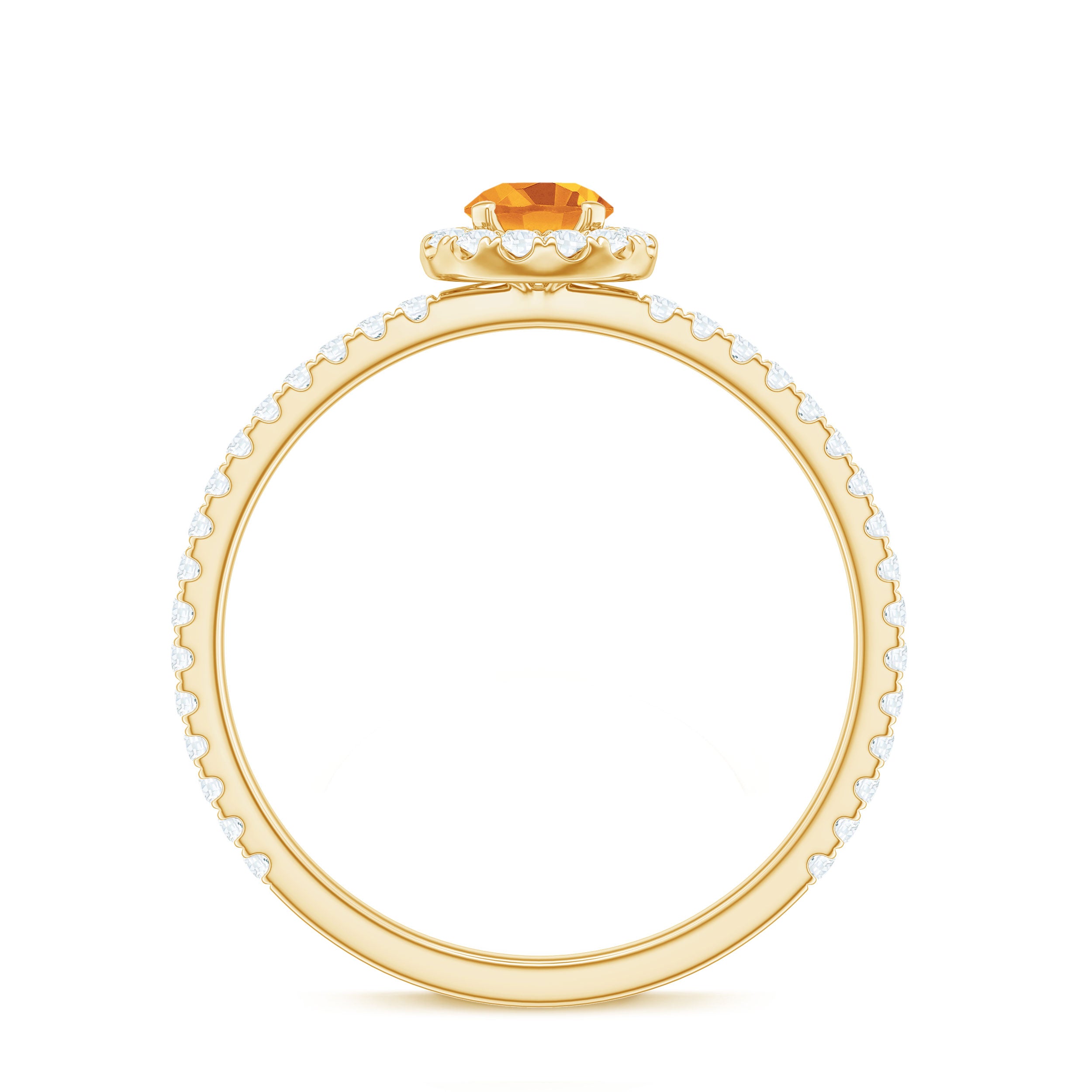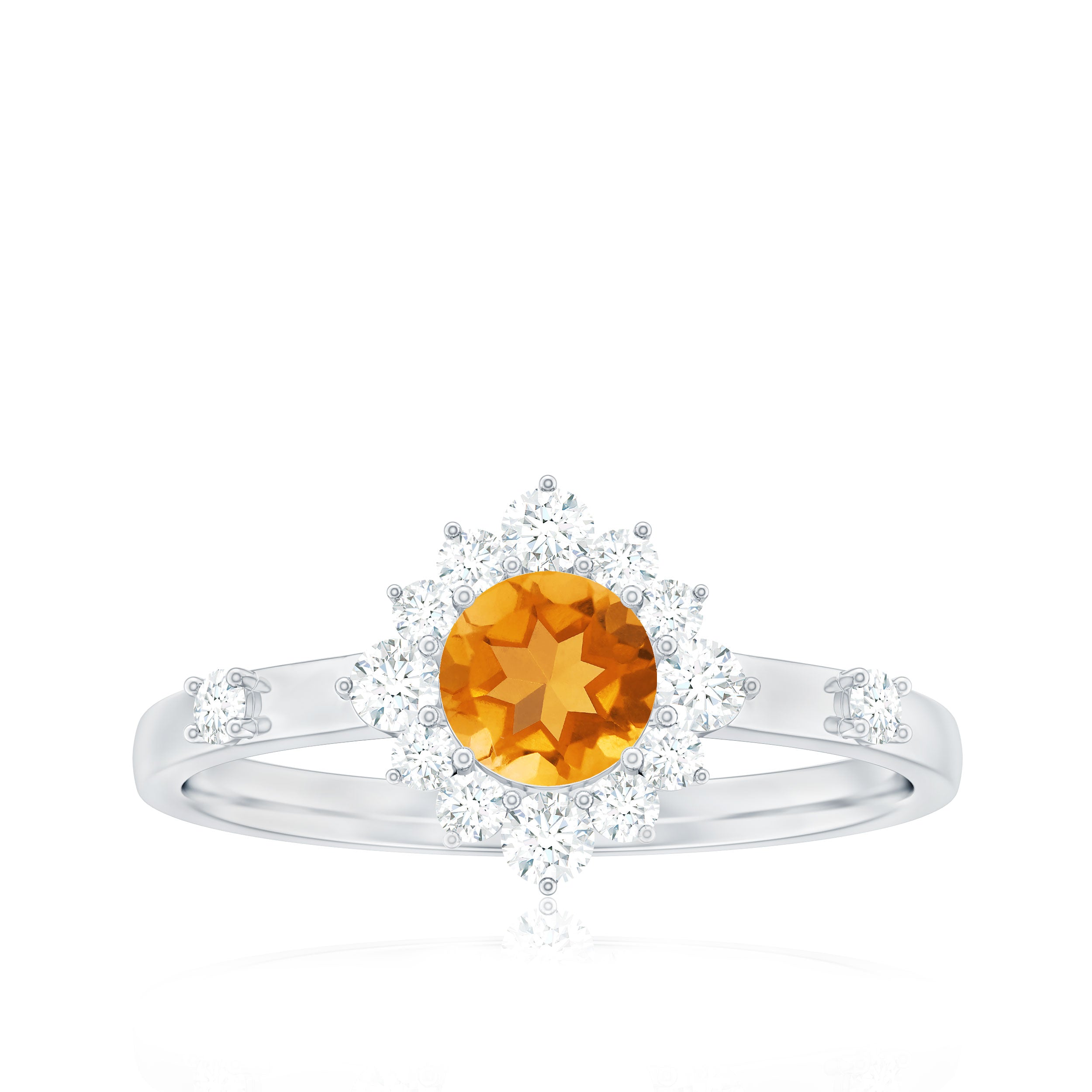 Features a citrine stone, that is a focal point, and small shimmery diamonds add an extra layer of shine & sparkle to the citrine centerpiece. The halo accent enhances the beauty and brilliance of the gem.