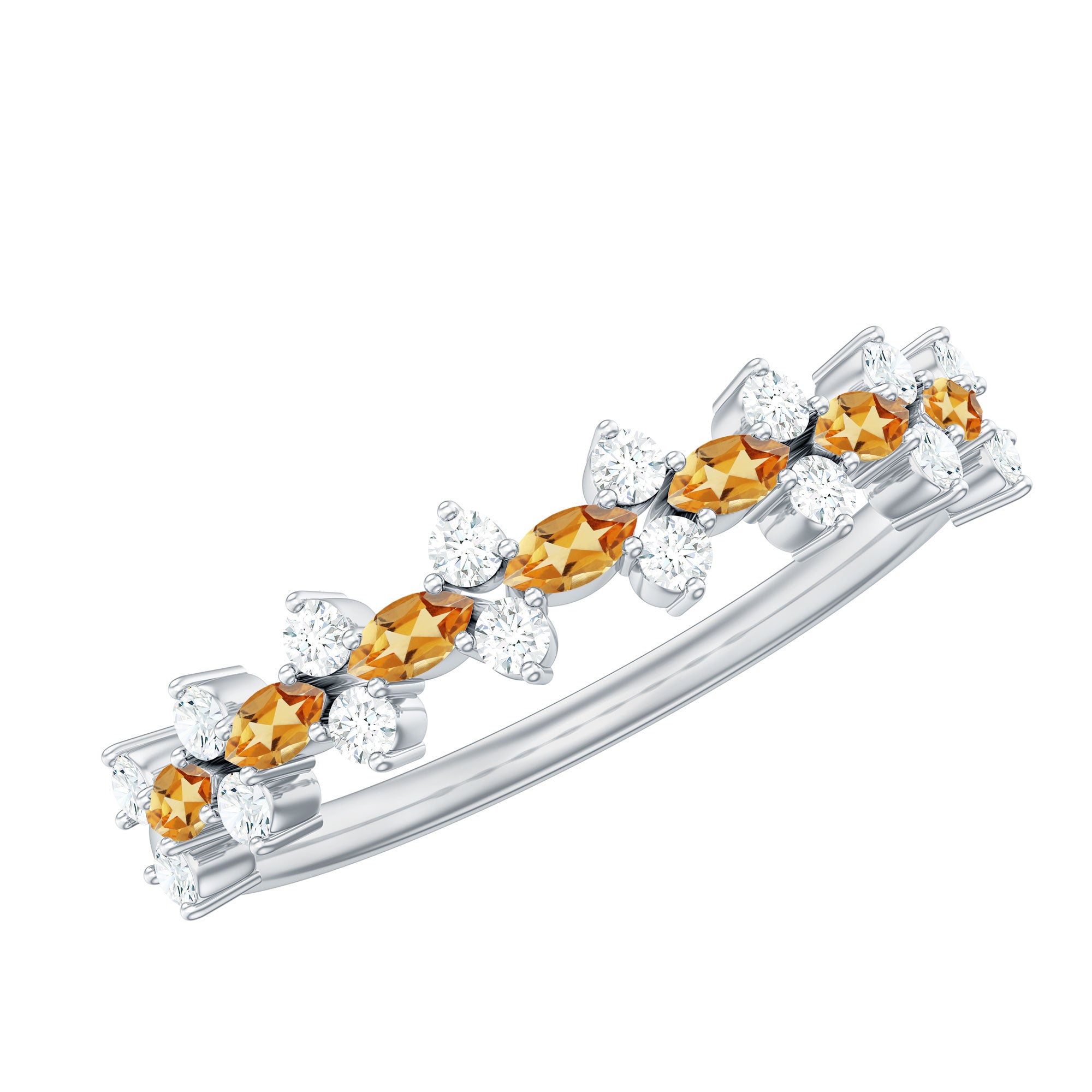 • Clarity: Citrine being a transparent quartz should have no eye-visible inclusions they tend to degrade the quality of citrine wedding bands.