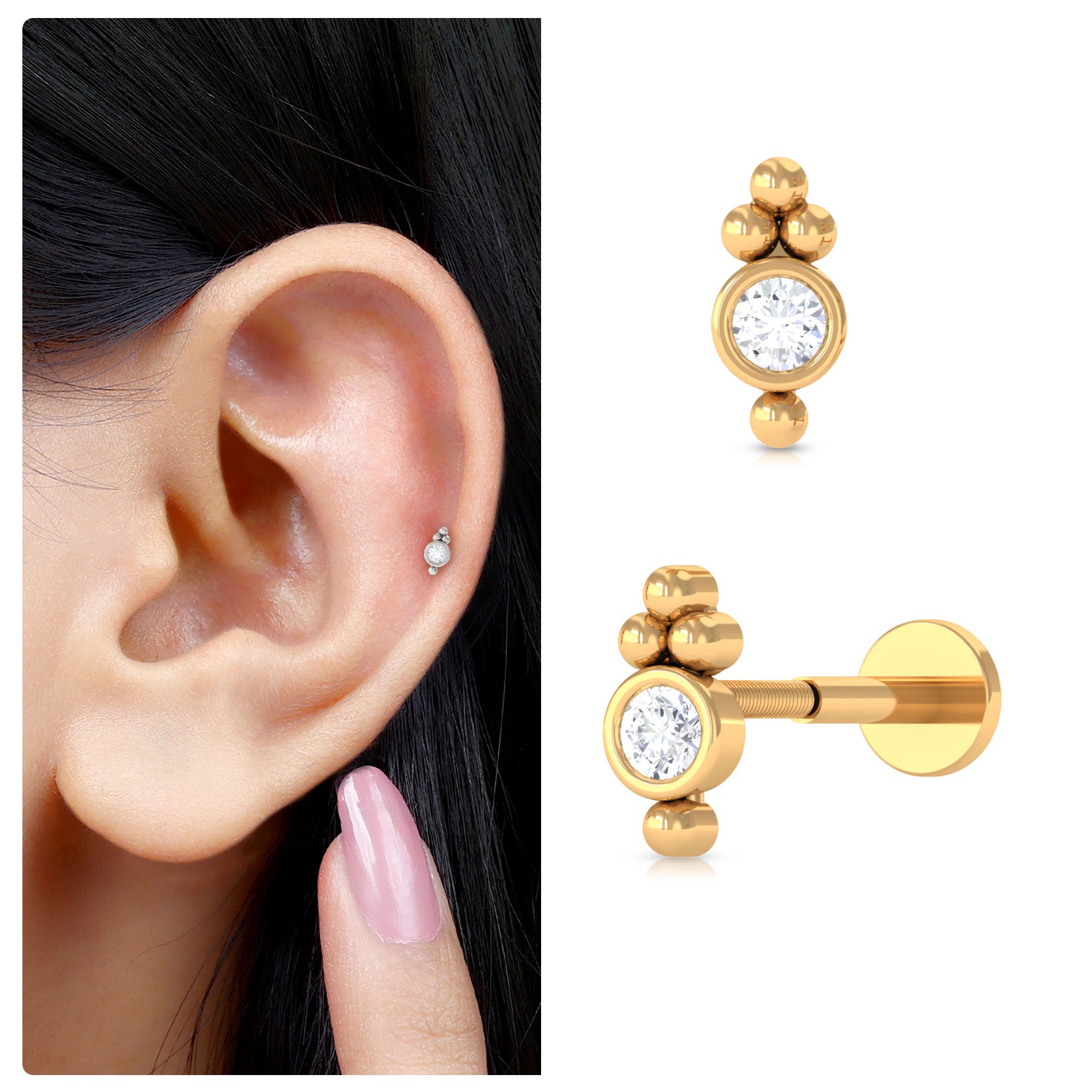 Cartilage Earrings | Helix Earrings | Tragus Earrings | Nose Piercing Jewelry | Diamond Ear Piercing Jewelry | Moissanite Ear Piercing Jewelry | Pearl Ear Piercing Jewelry
