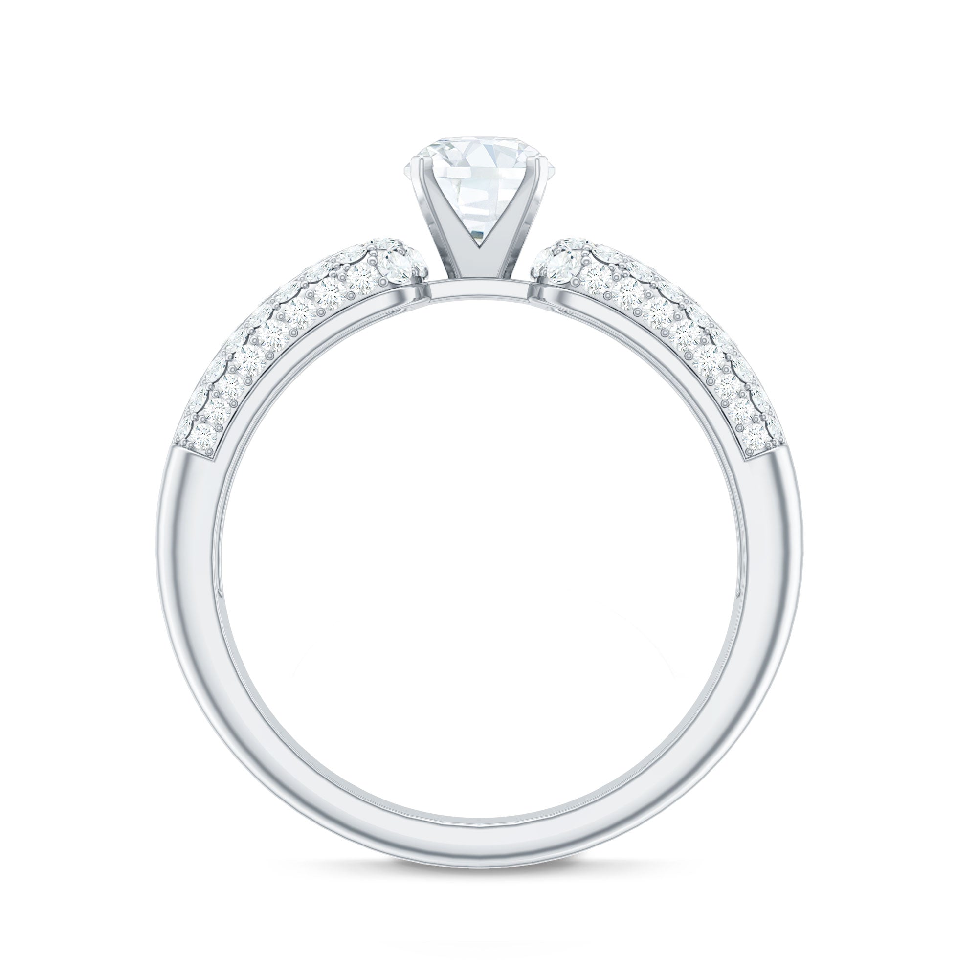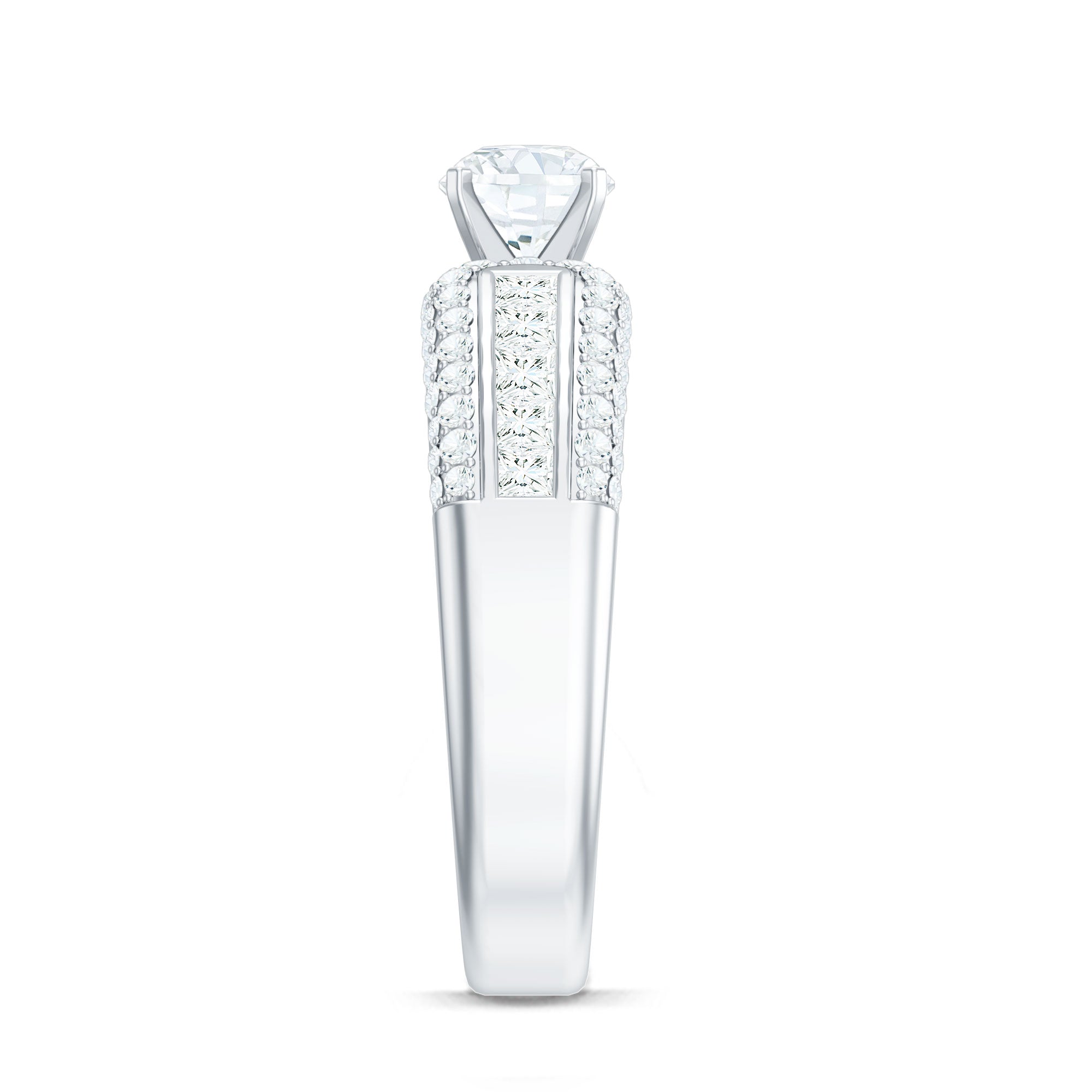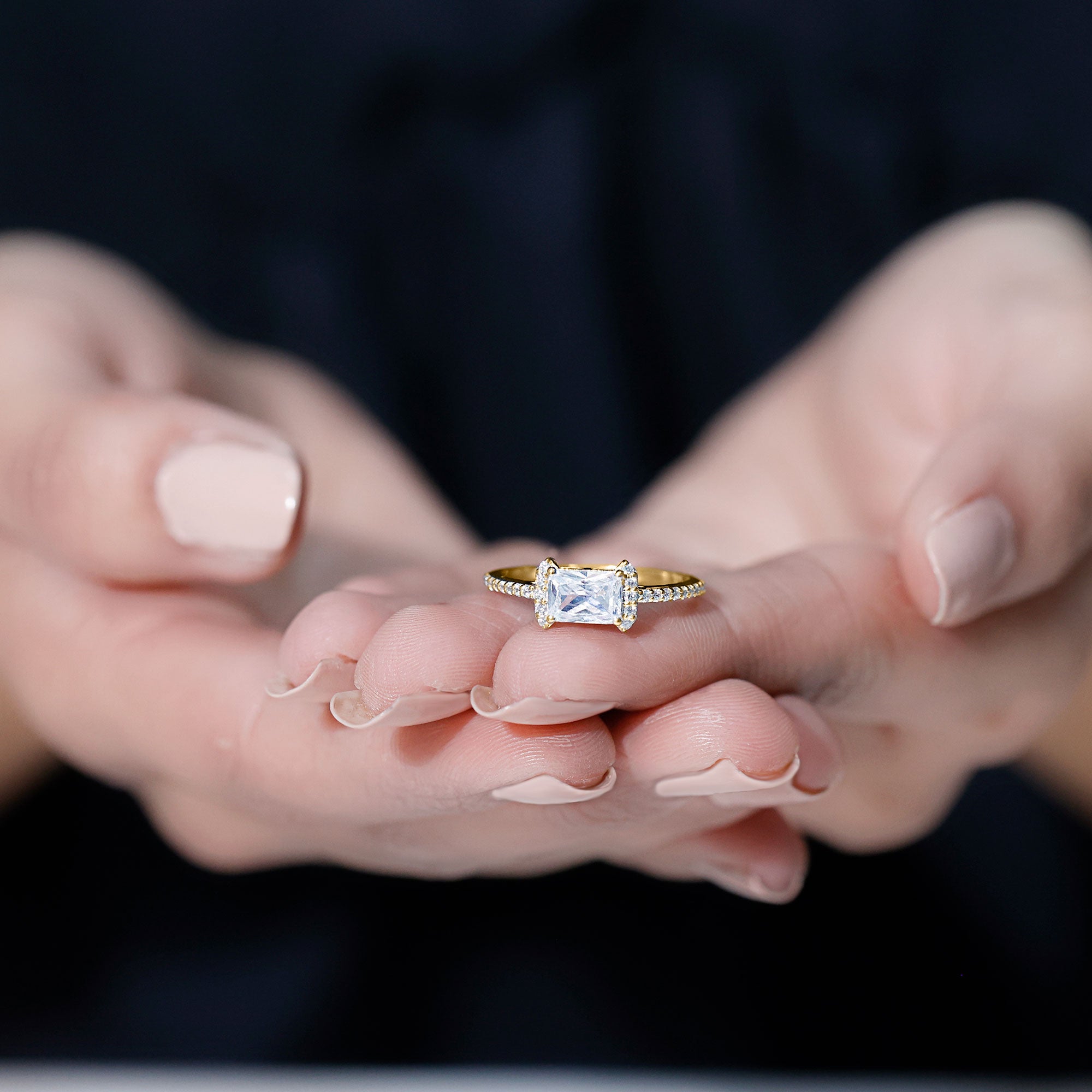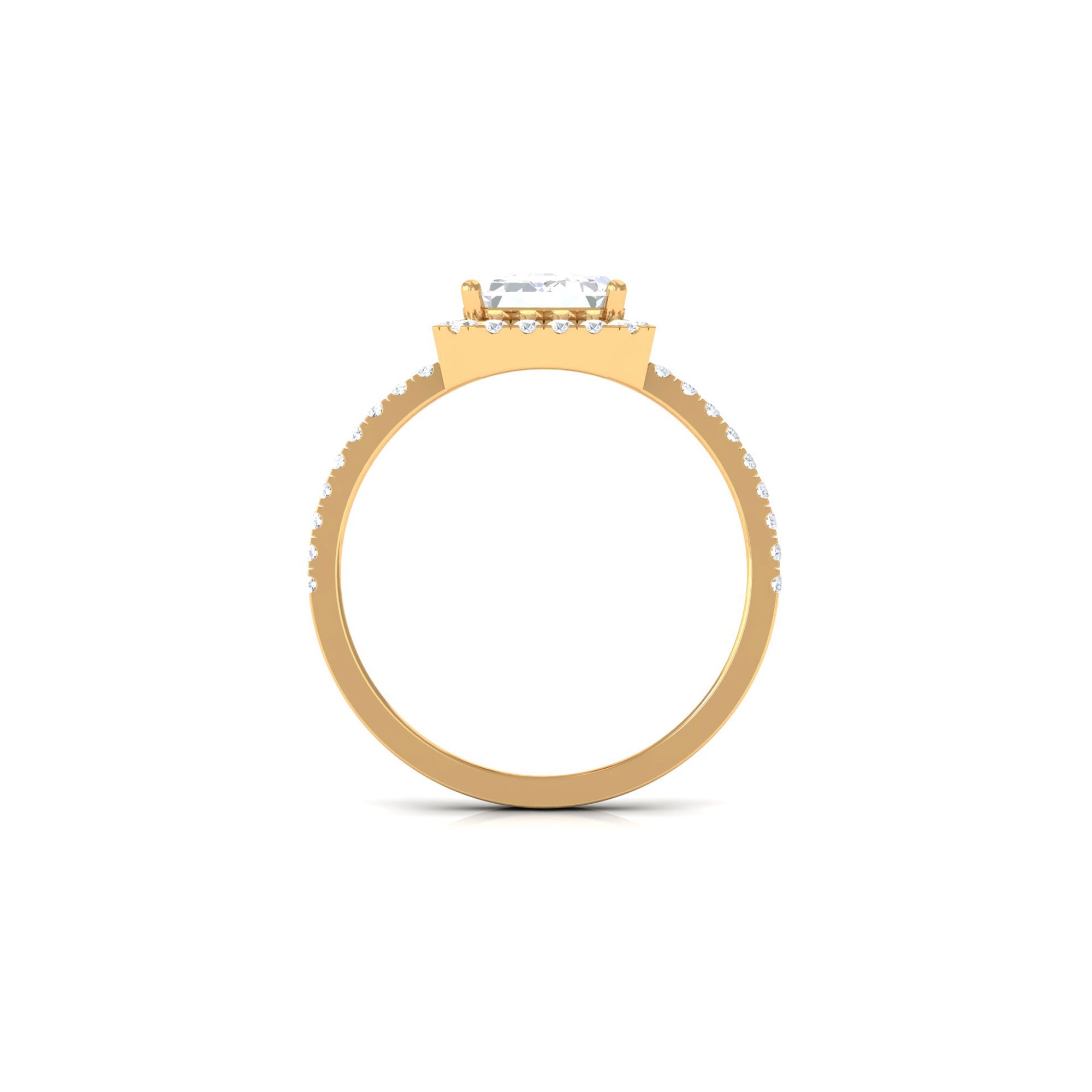 Standing out for its glitz and glam, a Halo encircles the Center Stone with a row of shimmering Cubic Zirconia. As an added advantage, the extra layer of sparkles here deceives the eye by making the center stone appear larger in size. So, if she is all about the bling, a Halo Style Cubic Zirconia Engagement Ring for Women seems like the perfect pick.