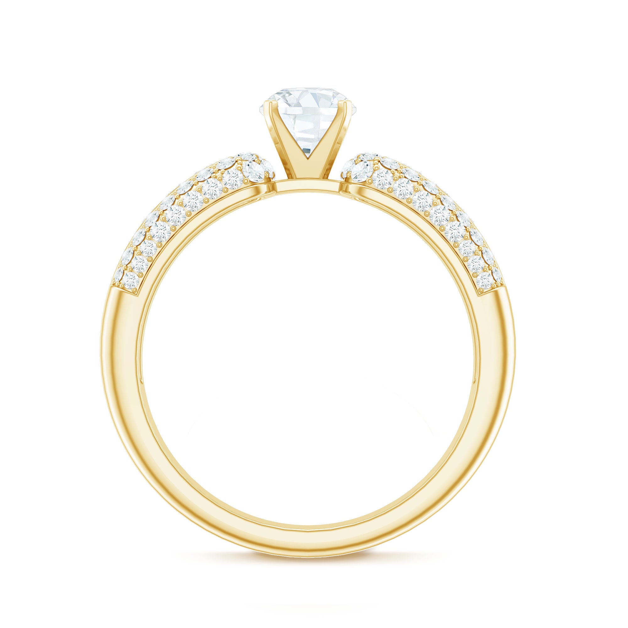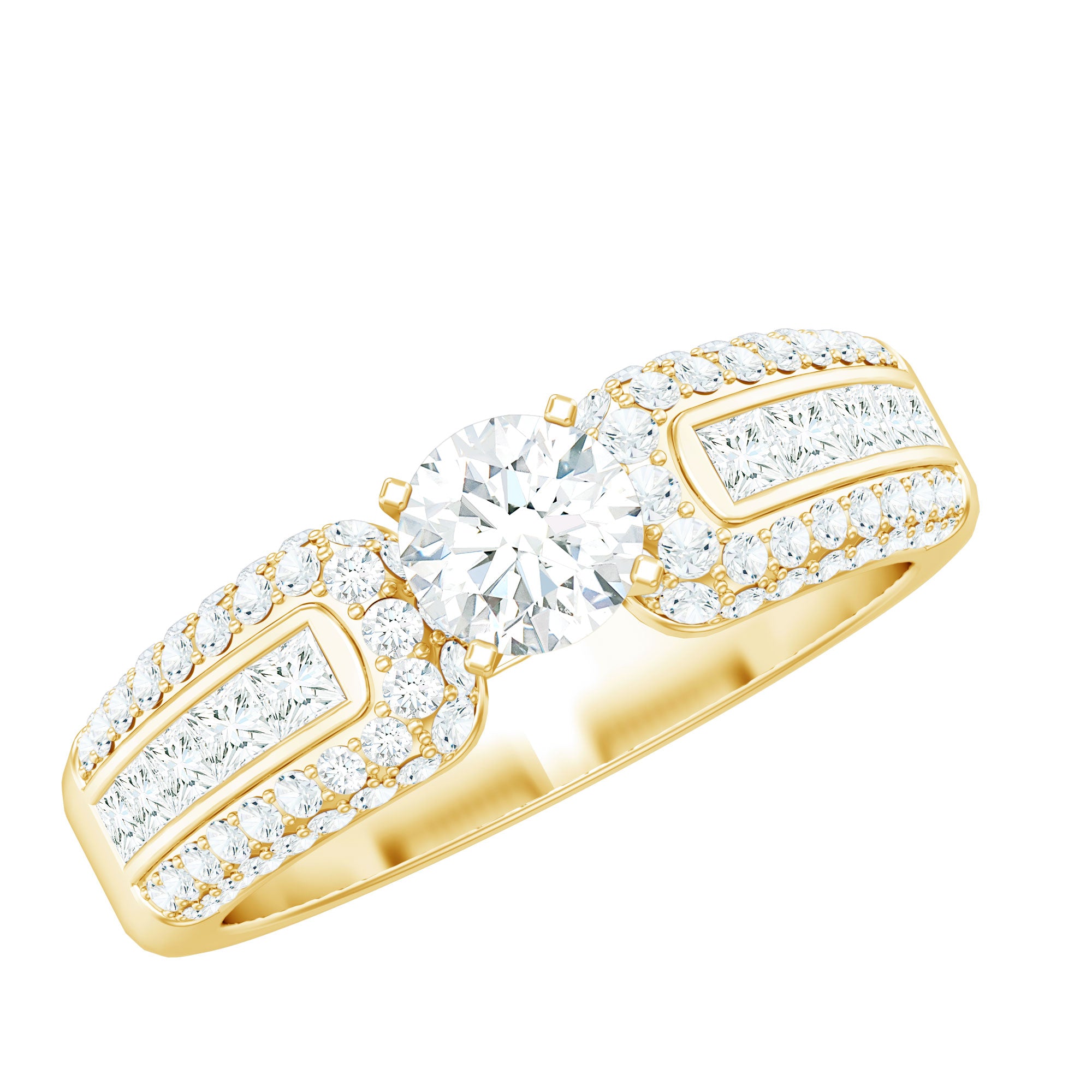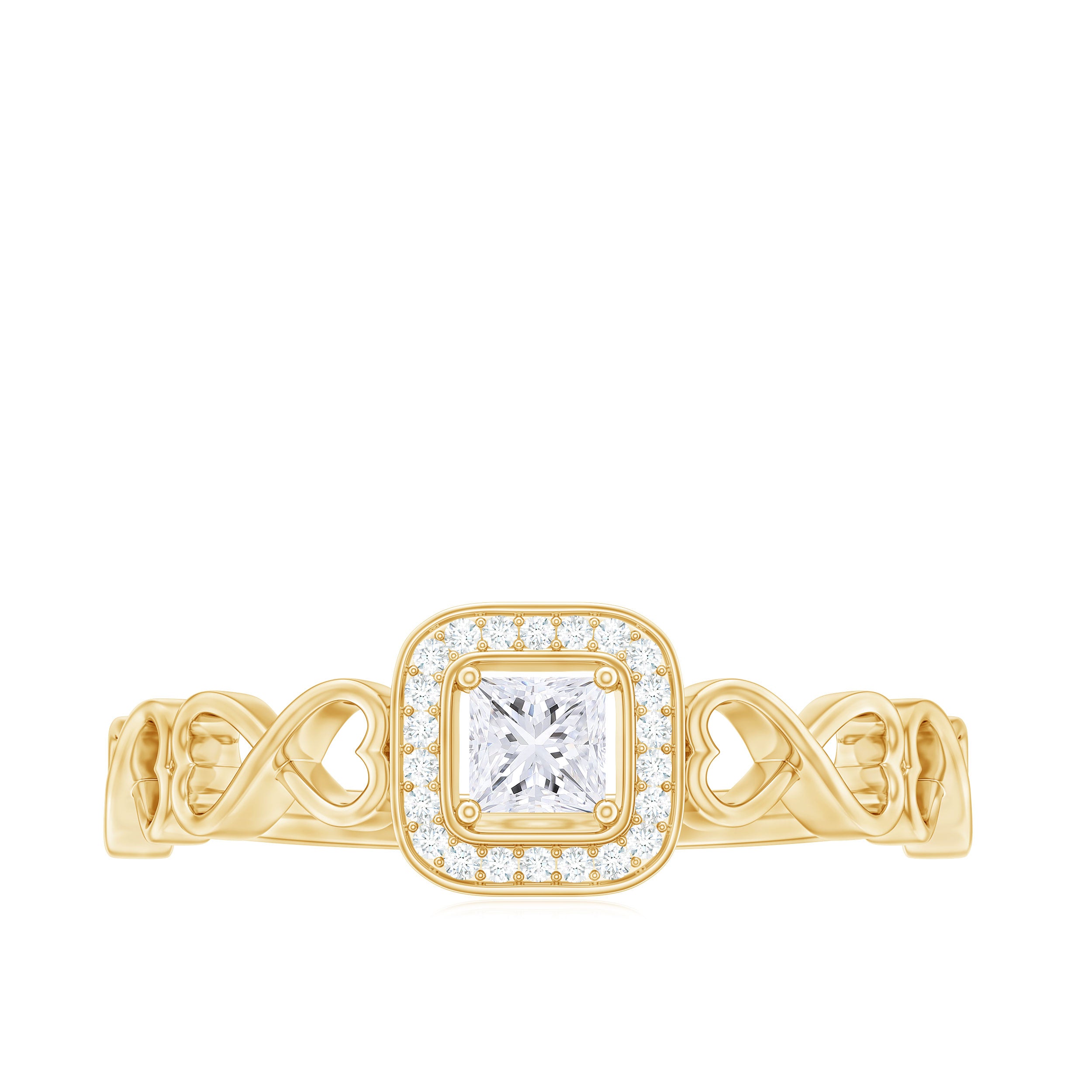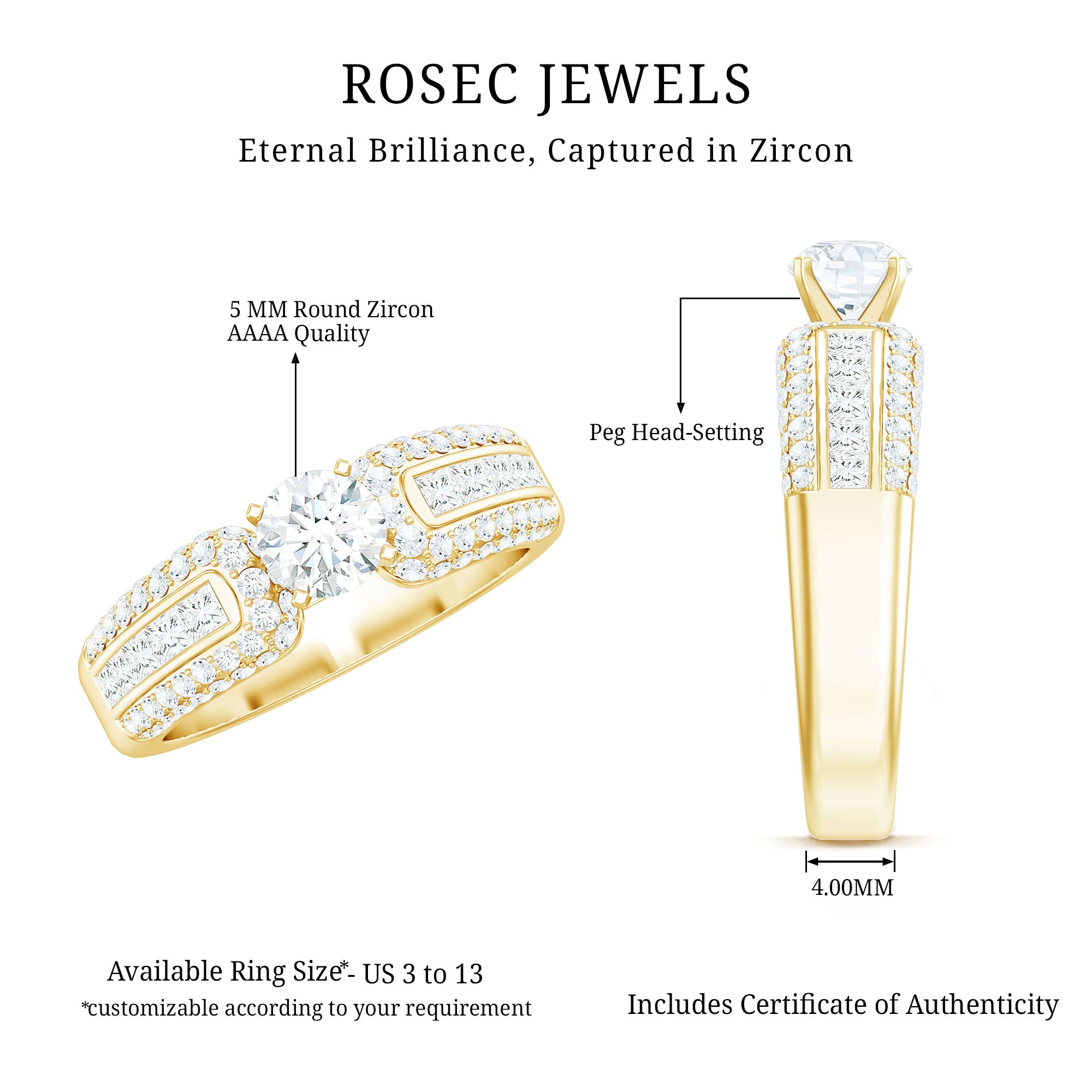 Just like the name suggests, this ring style draws inspiration from the old-world designs of Victorian, Edwardian, and Art Deco Eras that complement the sparkling center stone of CZ steal the limelight. You’re most likely to witness ornately crafted filigree and milgrain detailing, abstract geometrical patterns, retro floral motifs, and antique engravings. So, if you have been on the lookout for Gold Cubic Zirconia Engagement Rings that speak to your old school love, look no further!