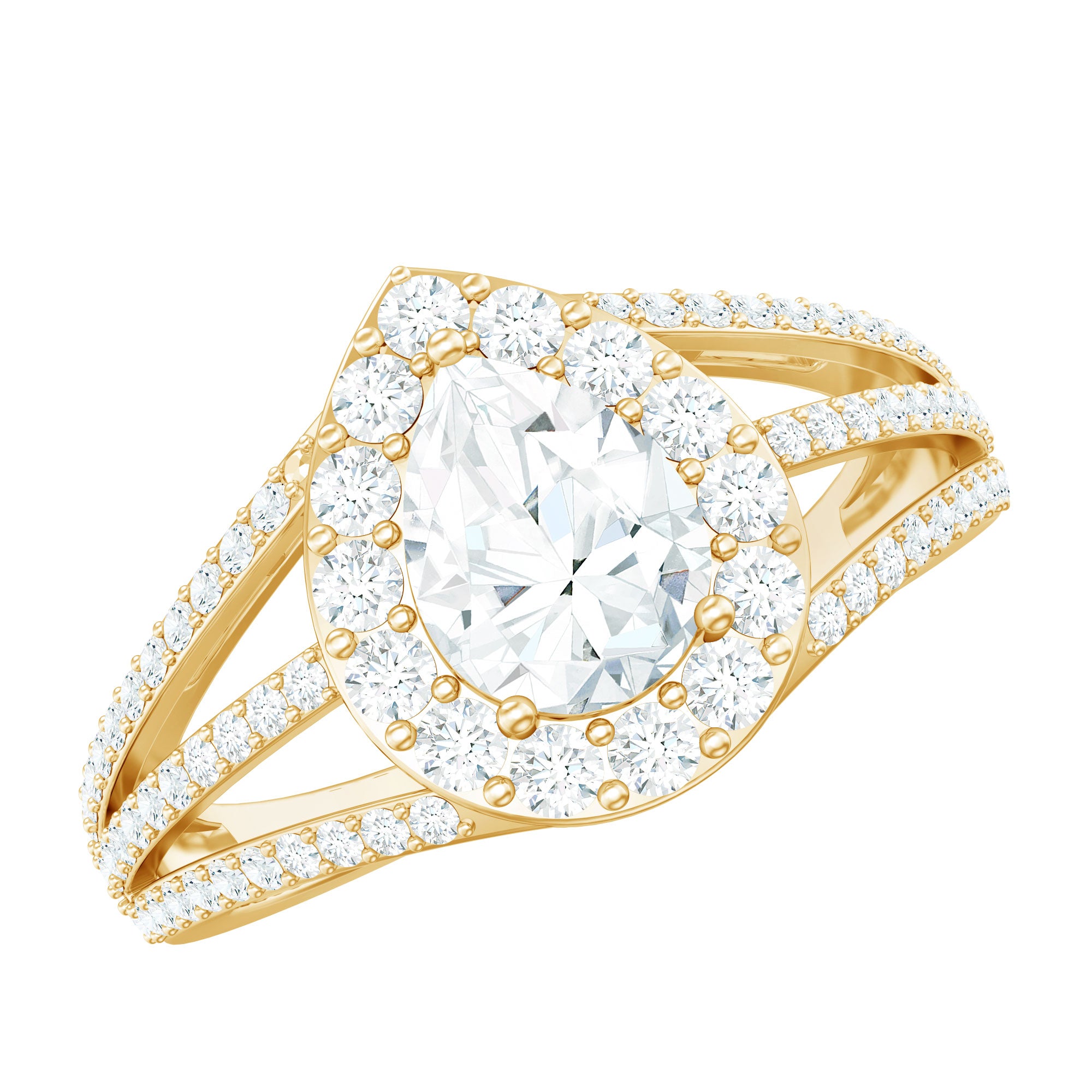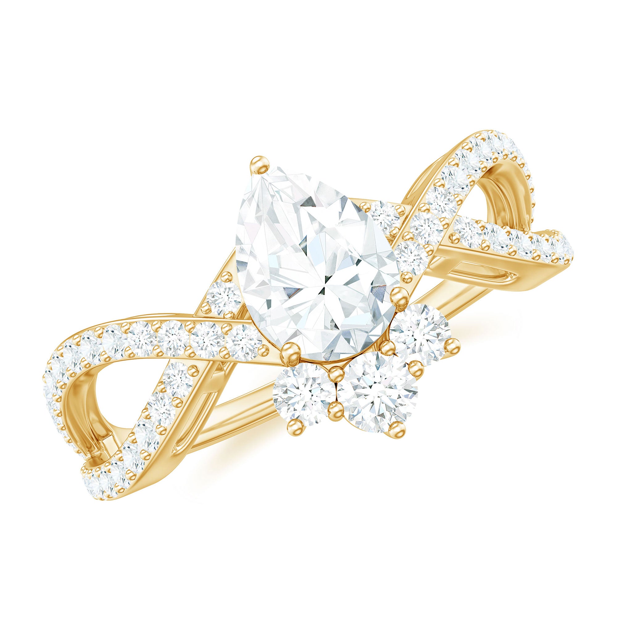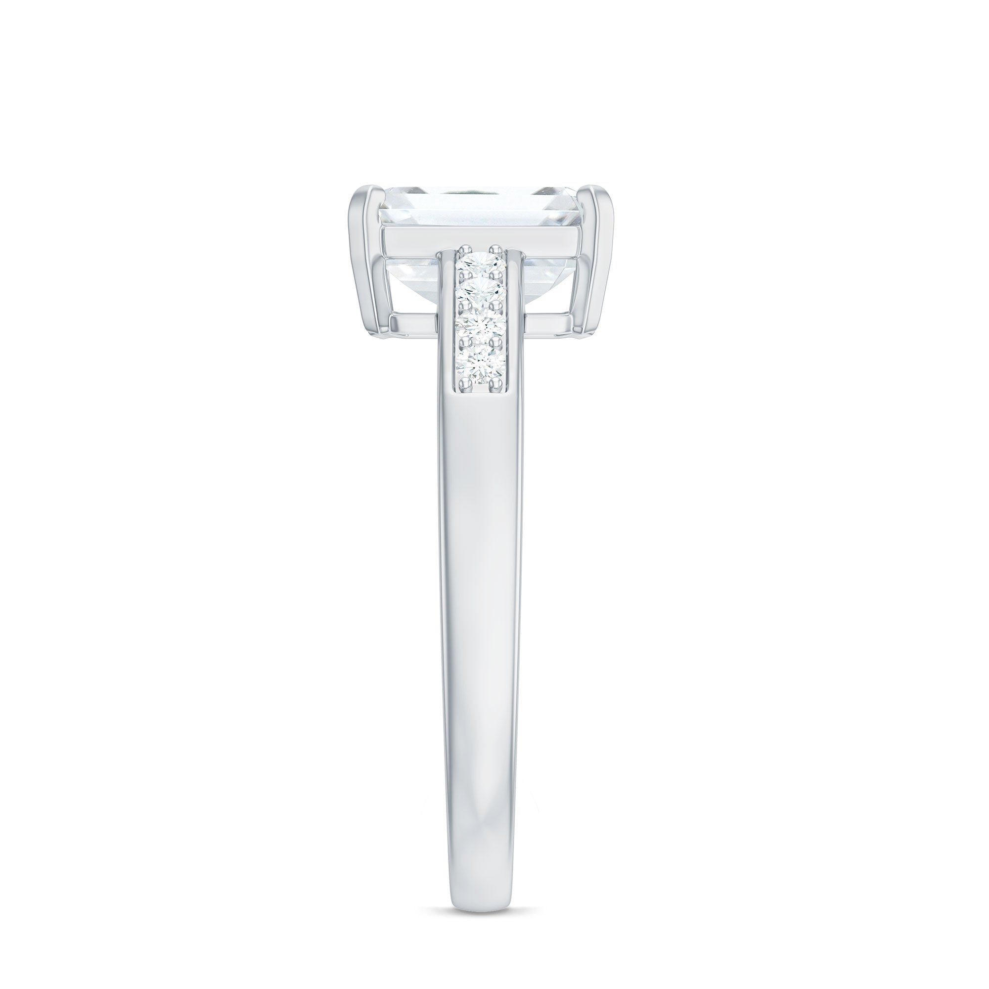 Unconventional and uniquely flashy, this ring style is encased with three stones of Cubic Zirconia arranged uniformly in a row. If you fancy more sparkles in your betrothal ring, a three stone ring is the way forward (since three stones means triple the sparkles). While a Round or Oval Cubic Zirconia Engagement Rings are the most classic options in this ring style, those adorned with Pear, Princess, Cushion, and Emerald Cut are also soaring in popularity. Behind its eye-striking aesthetics, it speaks to each couple uniquely since each of the three stones here sheds light on the couple’s past, present, and future respectively.