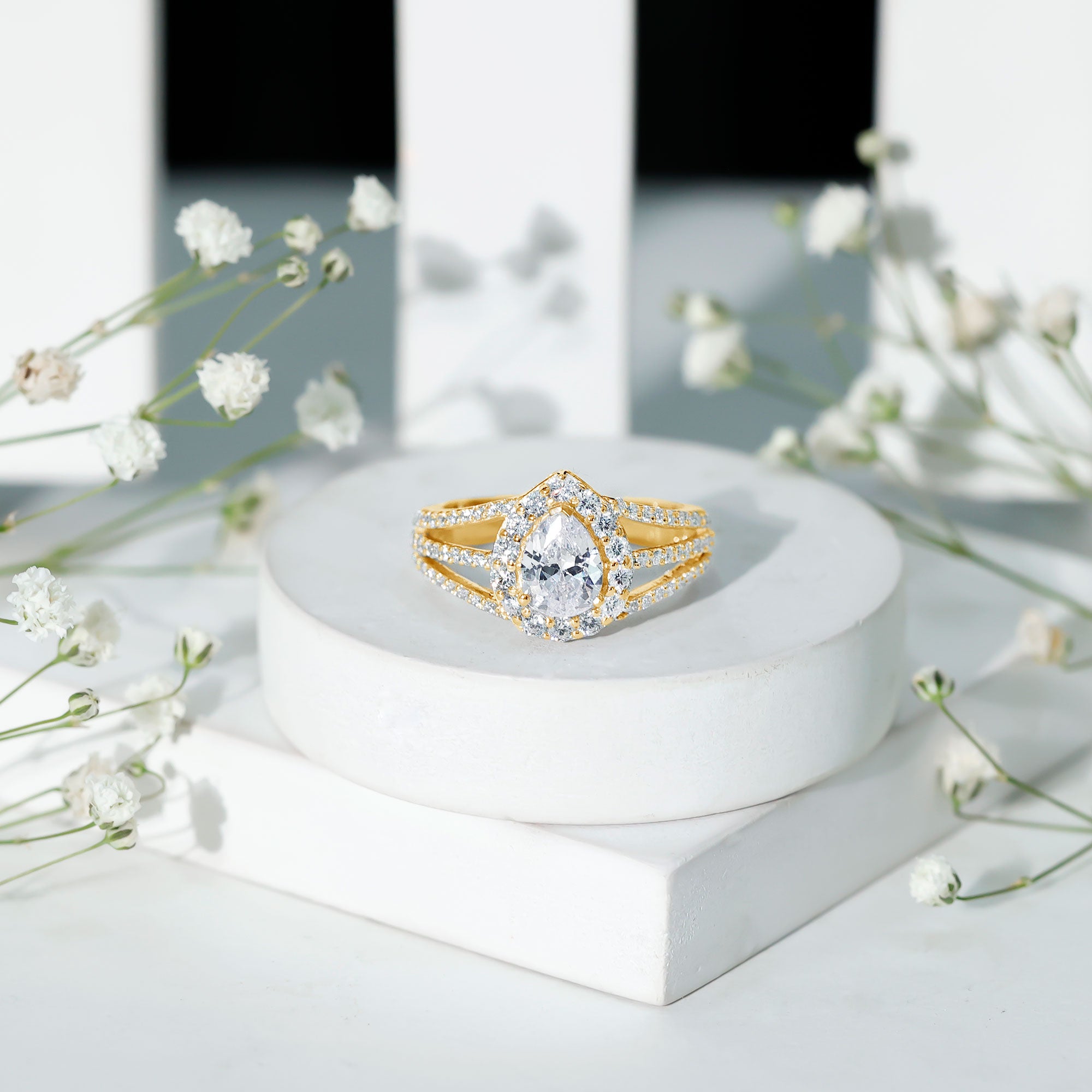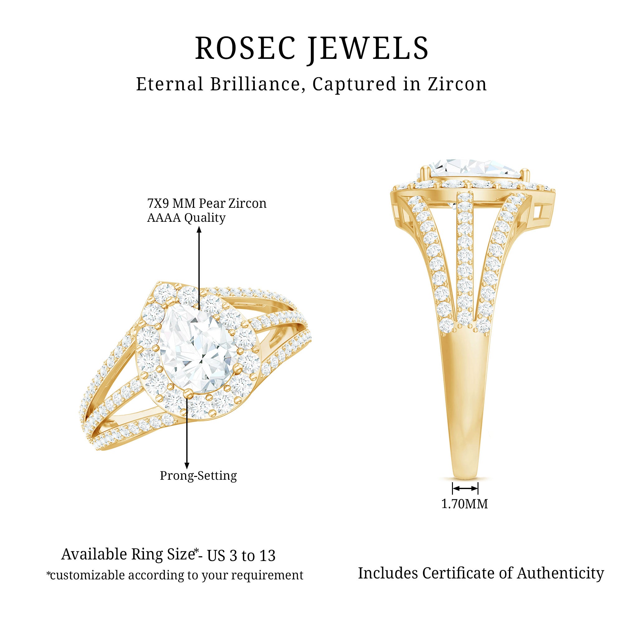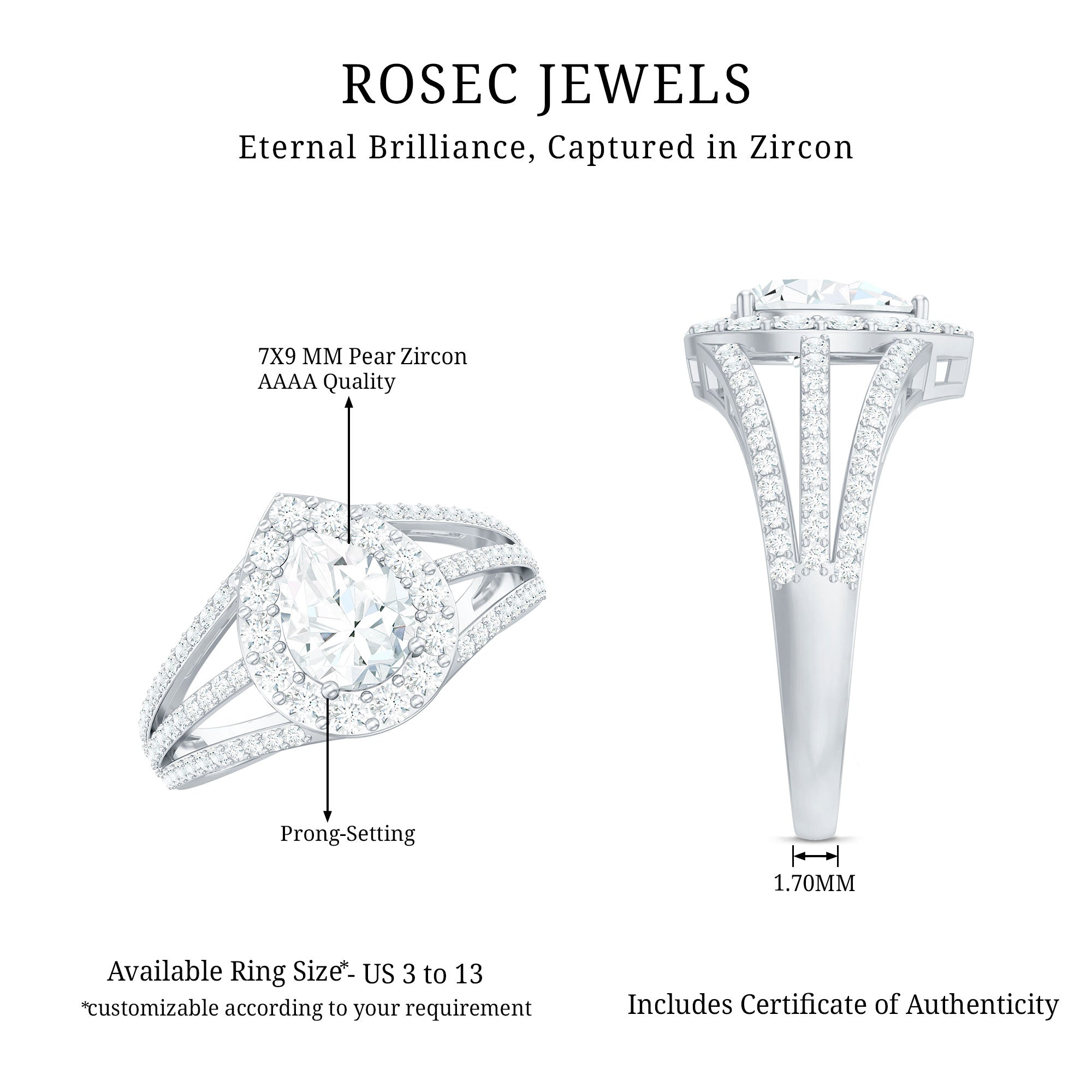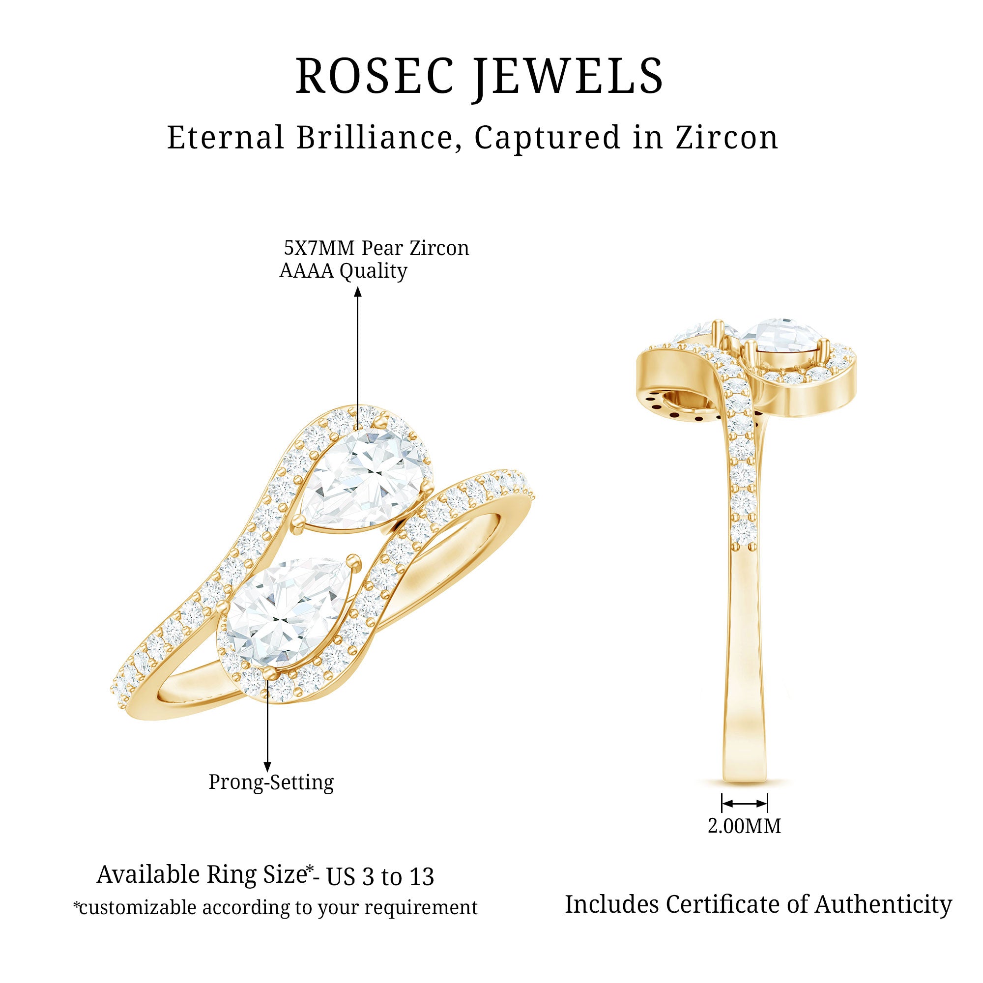 A Solitaire Ring is encased with the Single Centerpiece of Cubic Zirconia that takes all the center stage owing to its enormous size of 6 MM or more. Hailed as a timeless classic, a Solitaire Style Zirconia Engagement Ring is easily the go-to choice for all the conventional couples out there. Not just that, it pleases many aesthetics owing to the many shapes it is fashioned in. While a Round CZ Ring appeals owing to its understated and minimalist look, the one adorned with fanciers cuts like Pear, Marquise, or Princess speak to the trend-savvy bride-to-be(s). On the other hand, Asscher, Emerald, and Cushion Cut CZ Engagement Ring is meant to speak to those who fancy a vintage emblem of love.