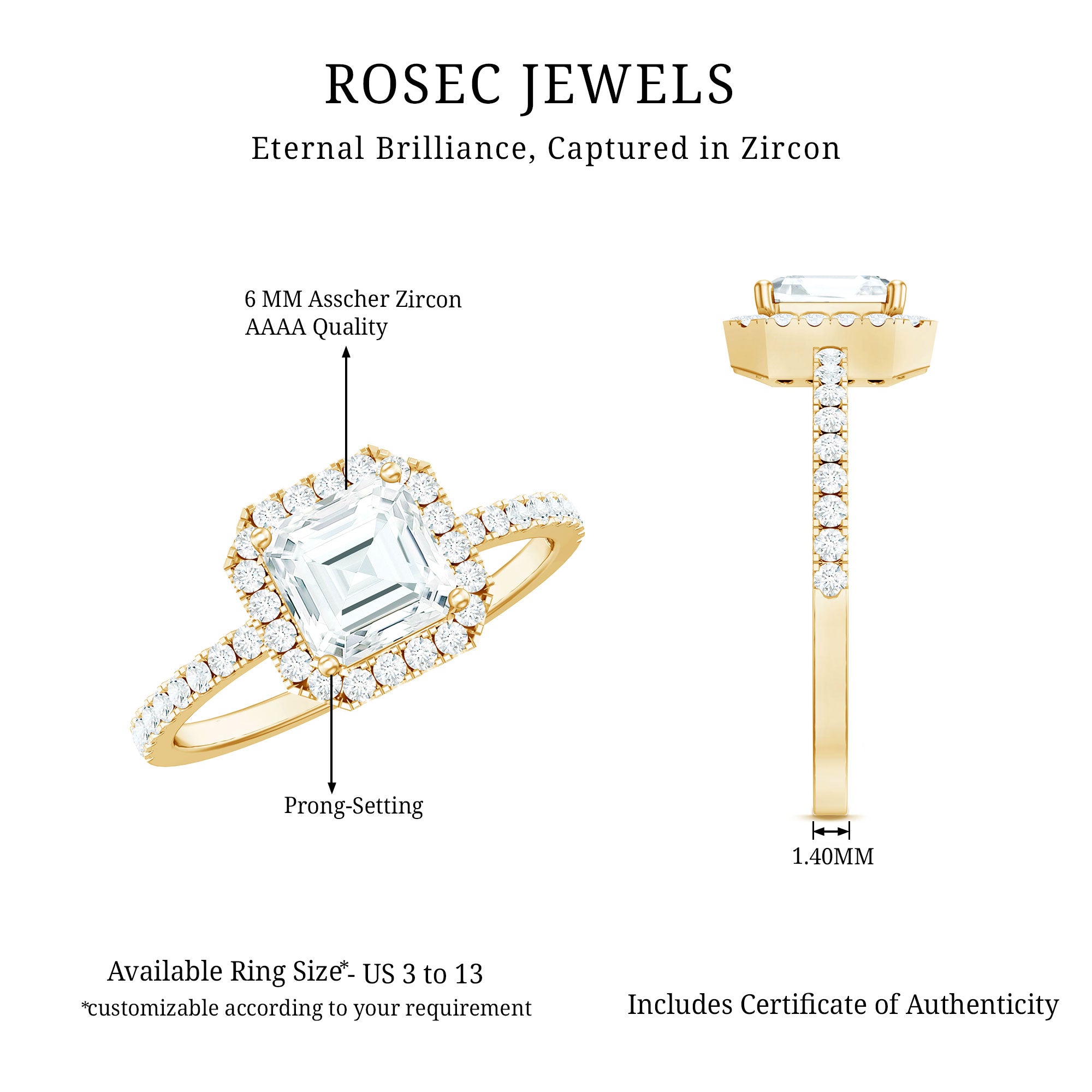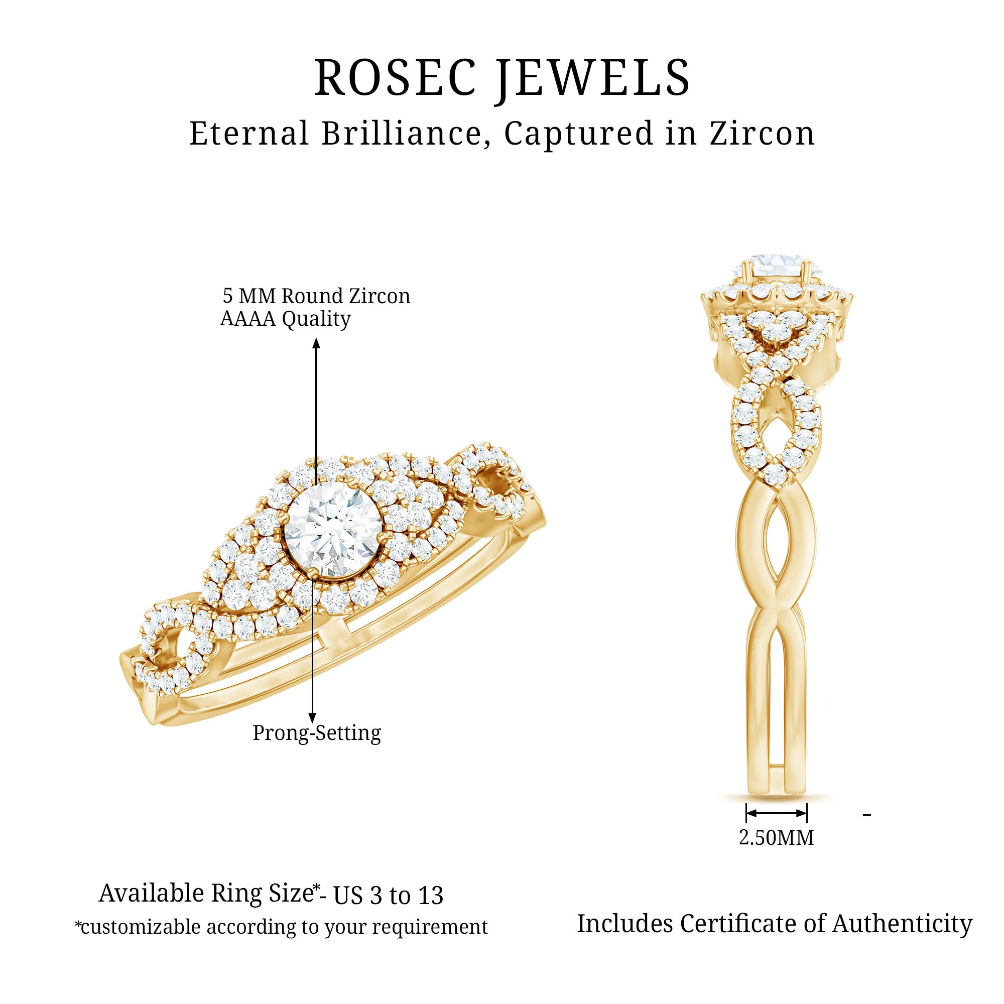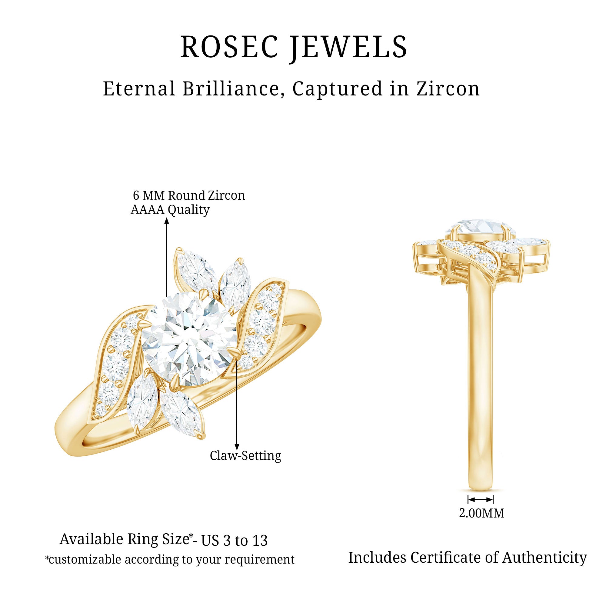 Apart from its many ring styles, a Cubic Zirconia Engagement Ring is fashioned in three tones of Gold- white, yellow, and rose. While White Gold cz engagement rings speak to those with a classic and understated sense of style, the ones fashioned in yellow gold appeal owing to their color-contrasting aesthetic and traditional vibe. On the other hand, a Cz ring fashioned in rose gold looks incredibly feminine.